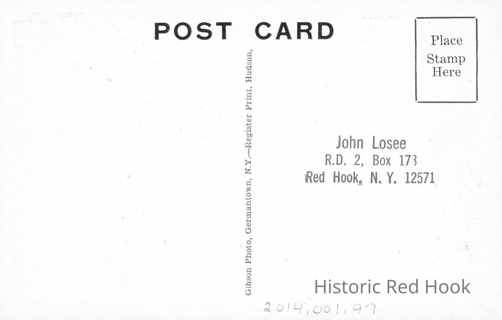 Back is stamped with identifying address: