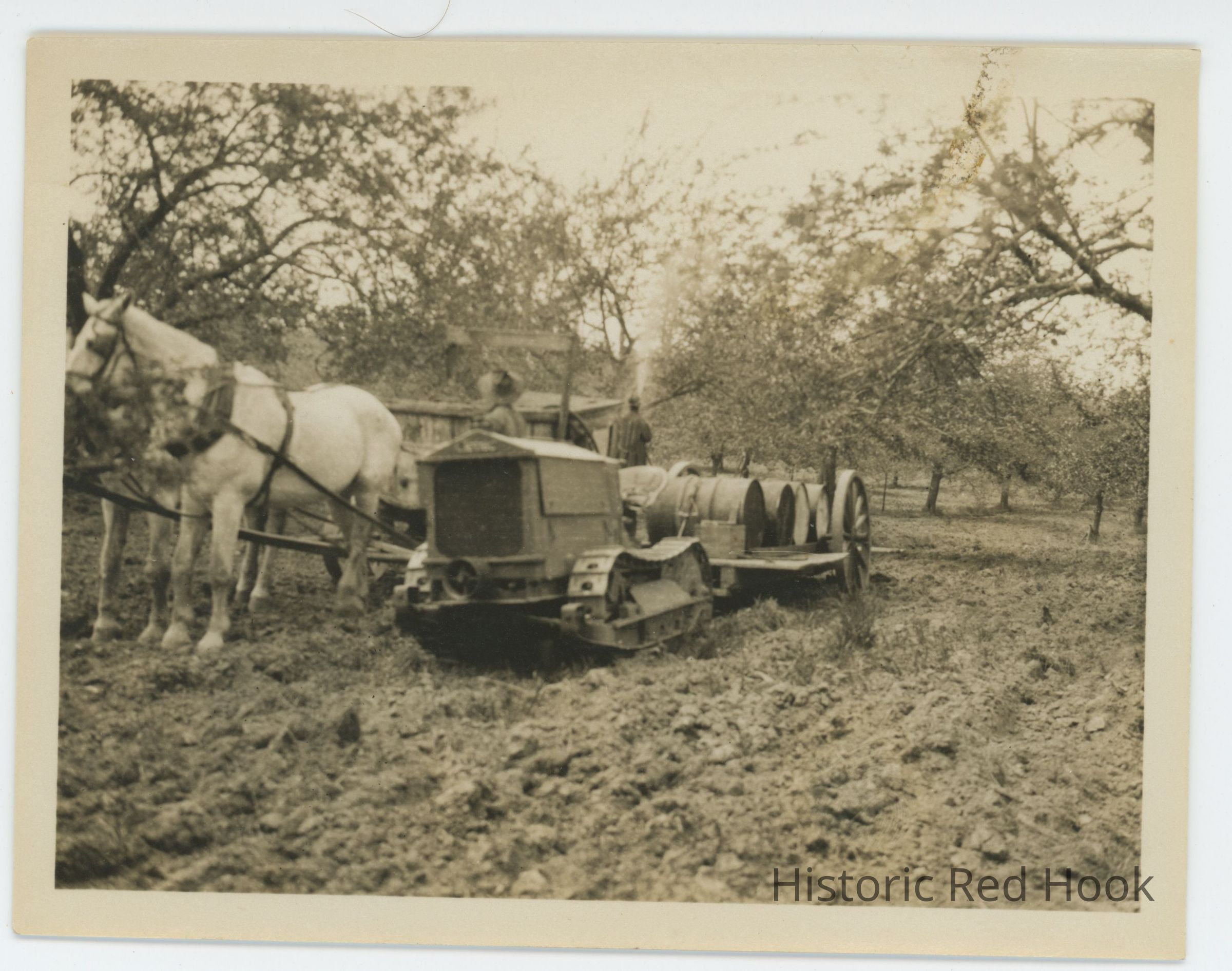 Horses and tractor in Mead orchards, c 1925Entry/Object ID