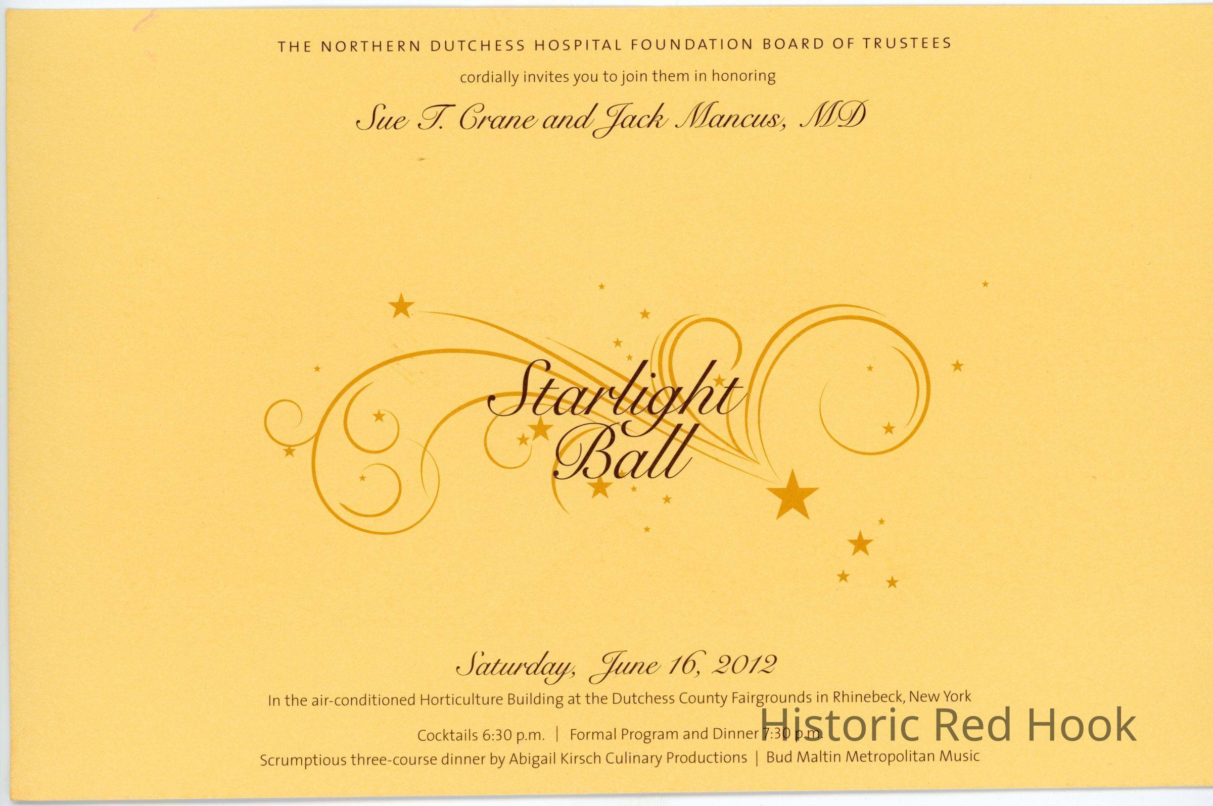 Northern Dutchess Hospital Starlight Ball honoring Sue Crane, June 16, 2012 (Sue was a member of the Board of Directors 20+ years and 2 years Board Chair during which time NDH affiliated with Vassar Hospital and Health Quest was founded. Also a member of the NDH Foundation.)Collection