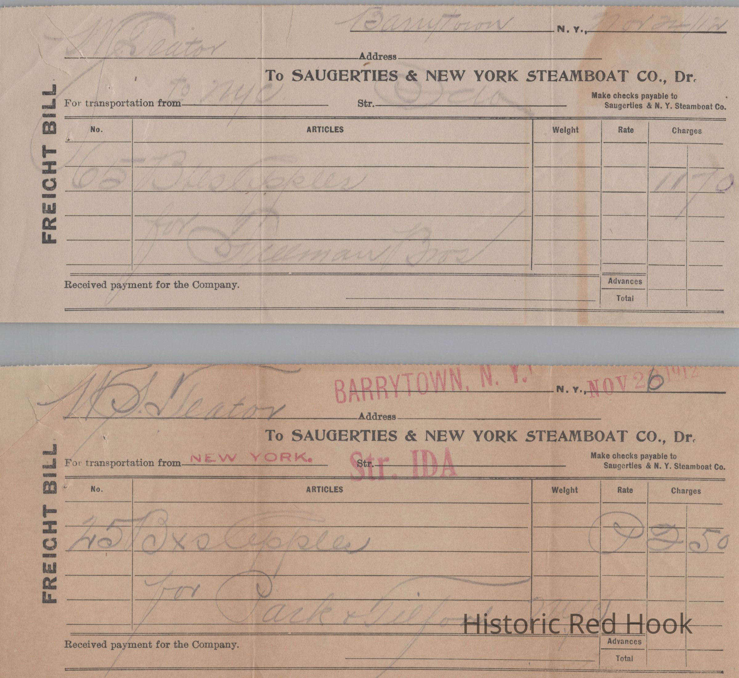Teator Collection 1912 invoice from the Saugerties & New York Steamboat Co., Dr. (2 invoices).Relationships