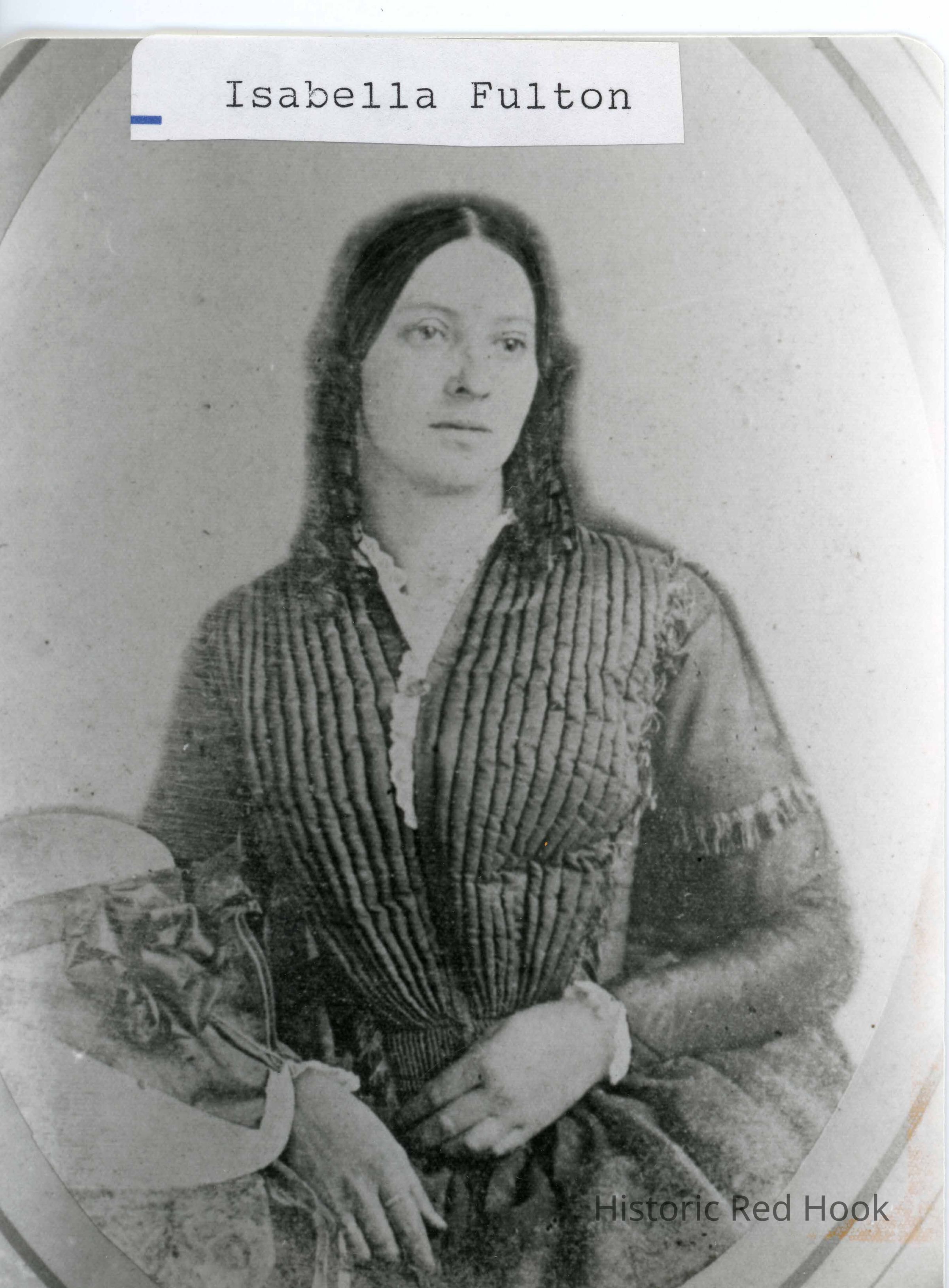 Formal portrait of a woman seated with a hat on the table nearby identified as Isabella FultonPhotograph Details