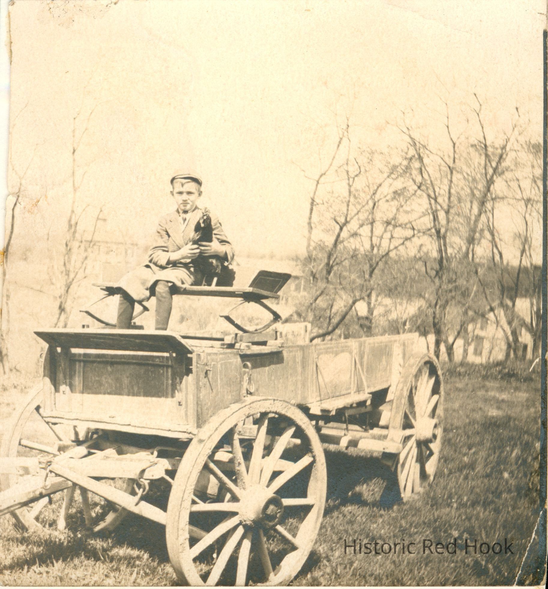 An informal outdoor photograph of James K. Losee and his rooster in Upper Red Hook, New York ca 1907.Photograph Details