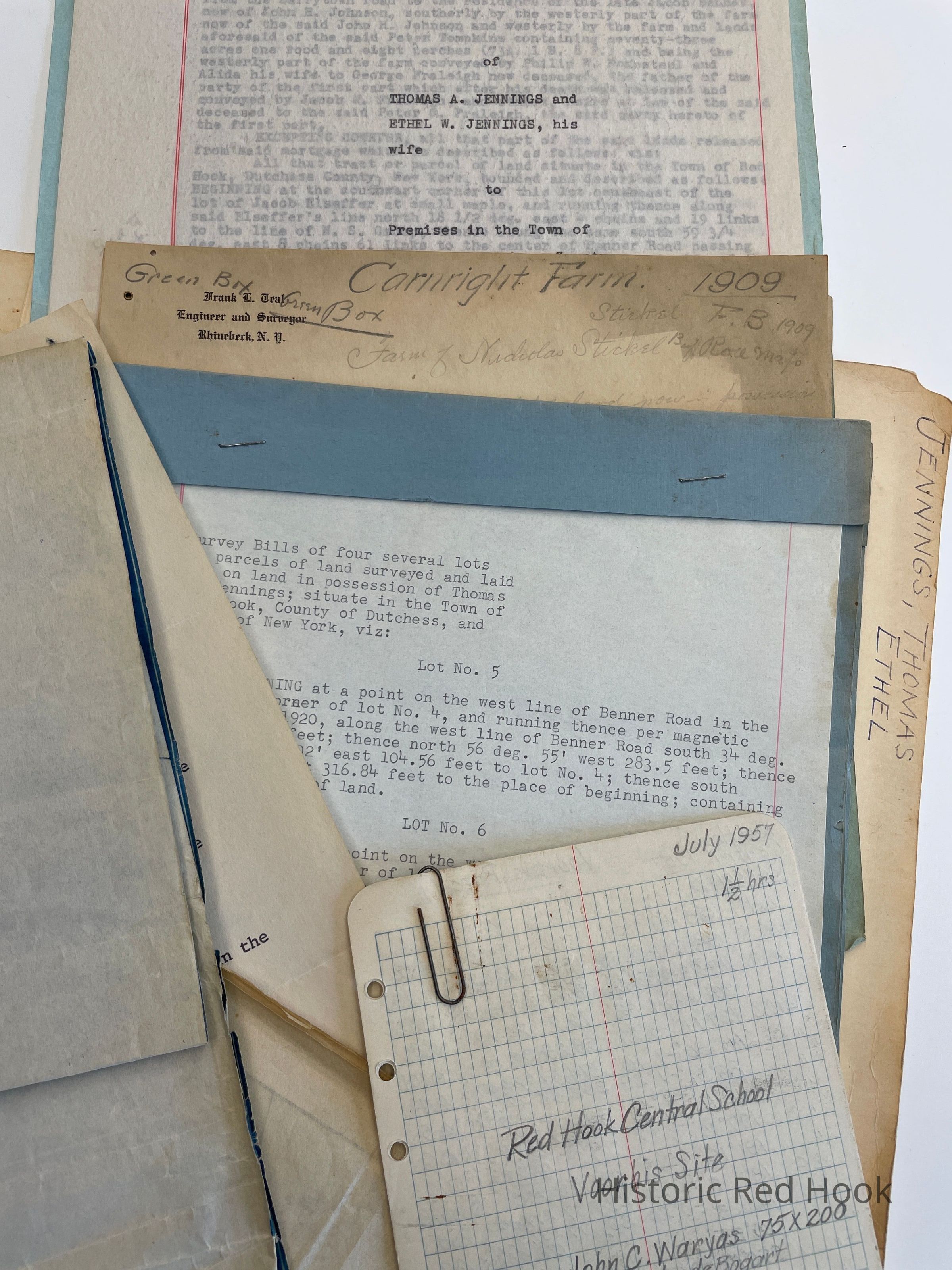 Field Notes: July 1957 Red Hook Central School, Vorhis Site- John C. Waryas, Bernice VanDeBogart, Mrs. Earl (Leola) Moore