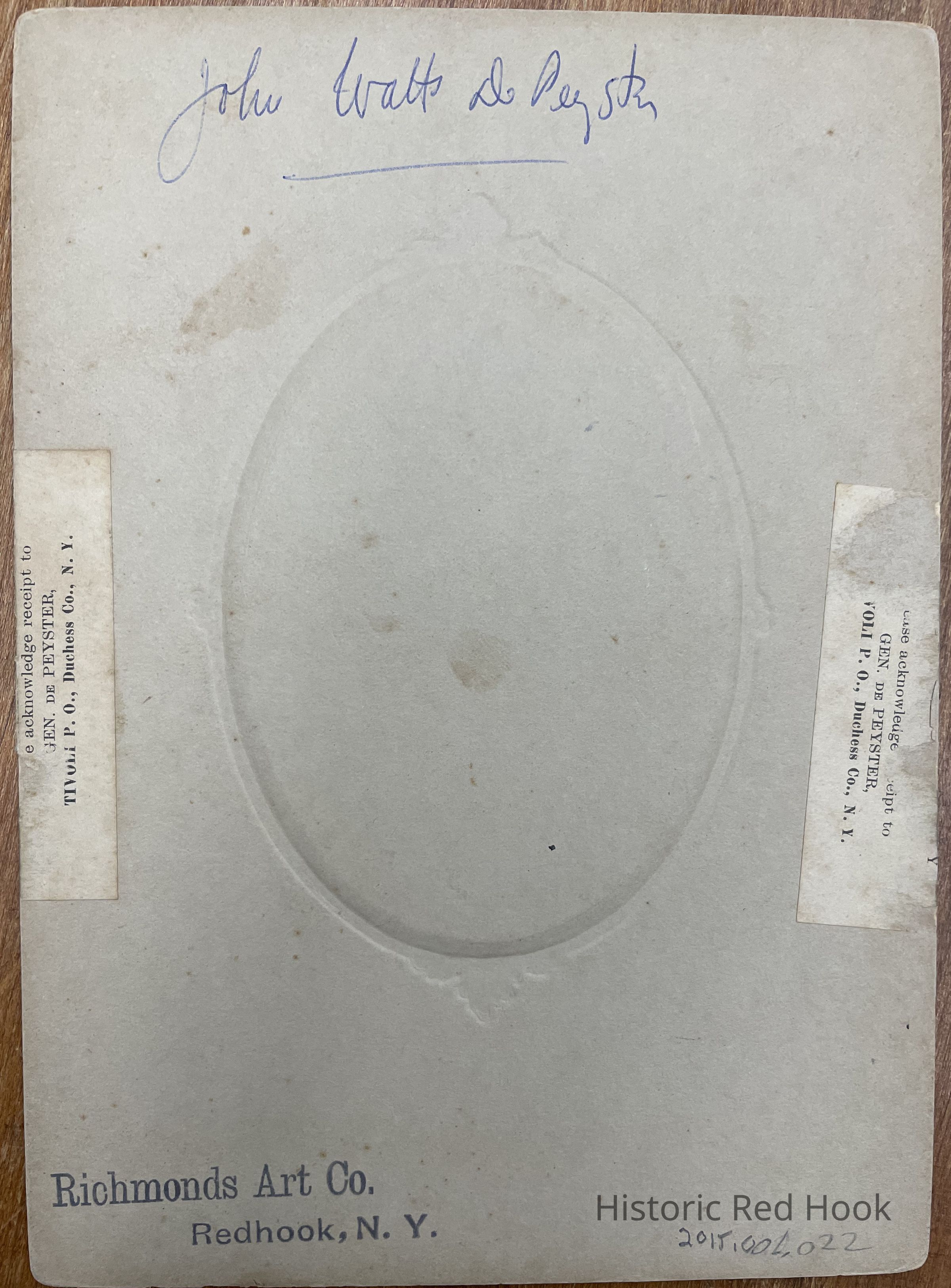 Portrait photograph of John Watts De Peyster. By Richmond Arts Co., Red Hook N.Y.Photograph Details