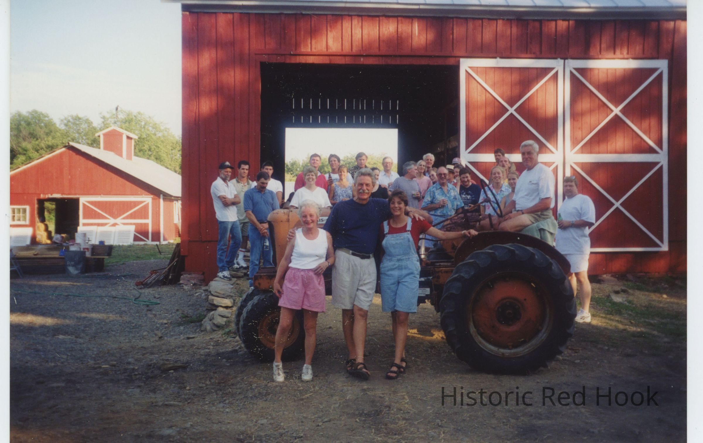 Klose family celebrating new barn, summer 2000, after the original barns burned in December 1999.Photograph Details