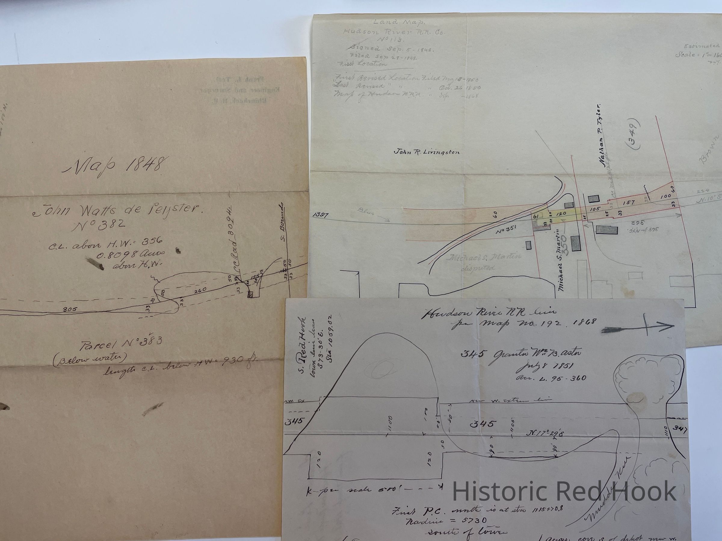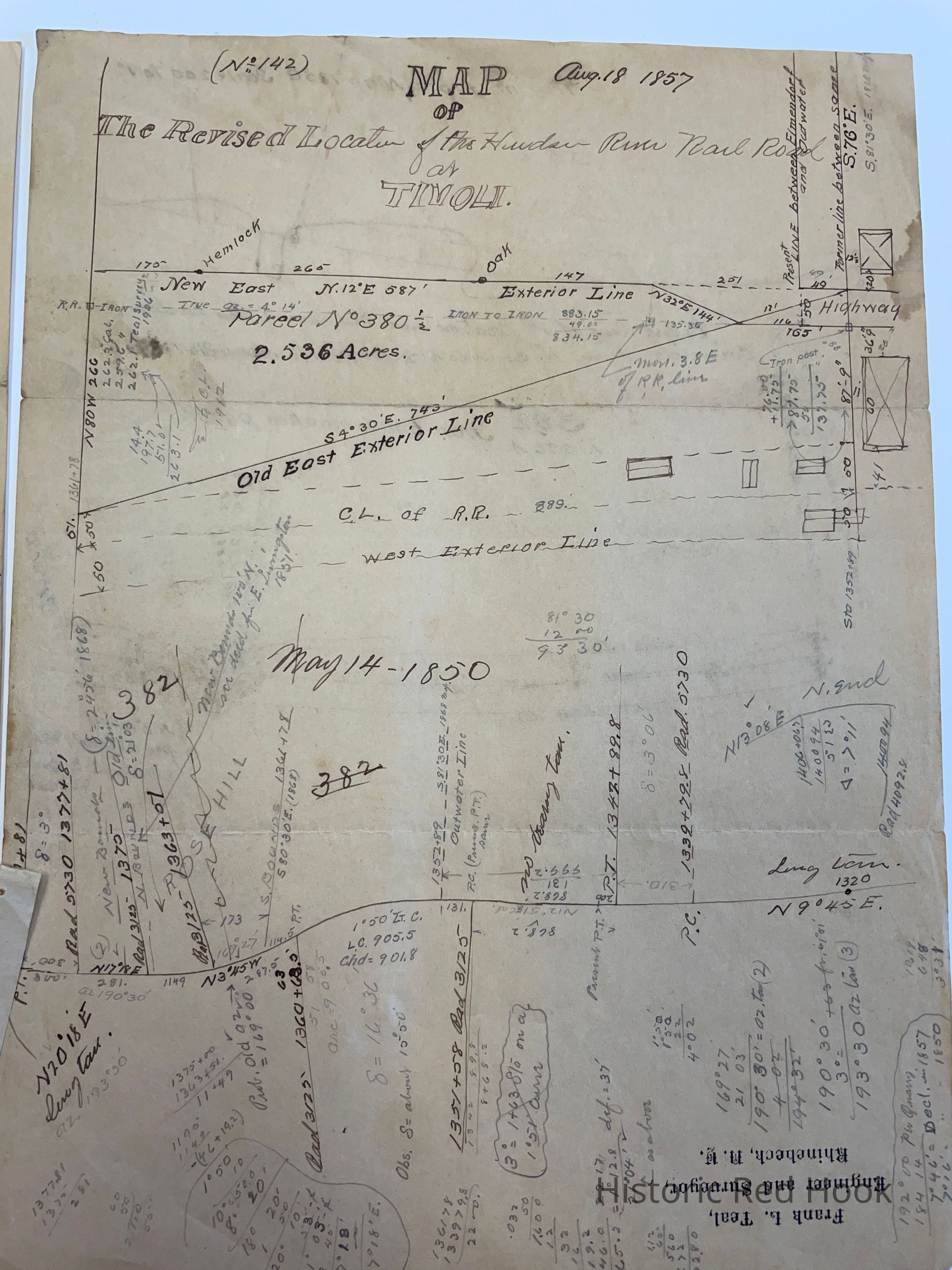 Map: Hand traced of Hudson River RR Co. No. 113 5 Sep 1848. Names are: John R. Livingston, Michael Martin, Nathan P. Tyler
