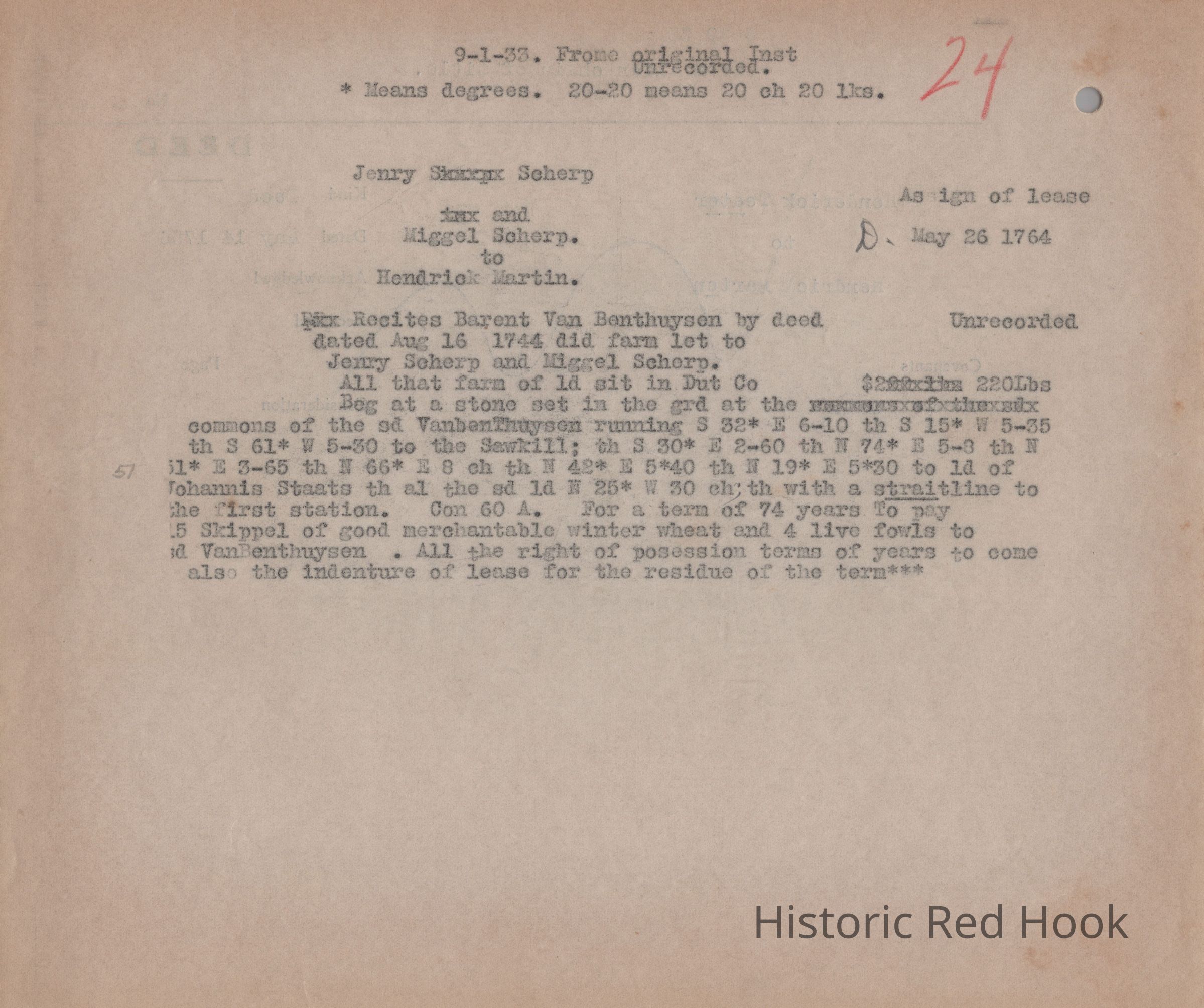Transcription of Deed from Henry Scherp and Miguel Scherp to Hendrick Martin dated May 26, 1764Relationships