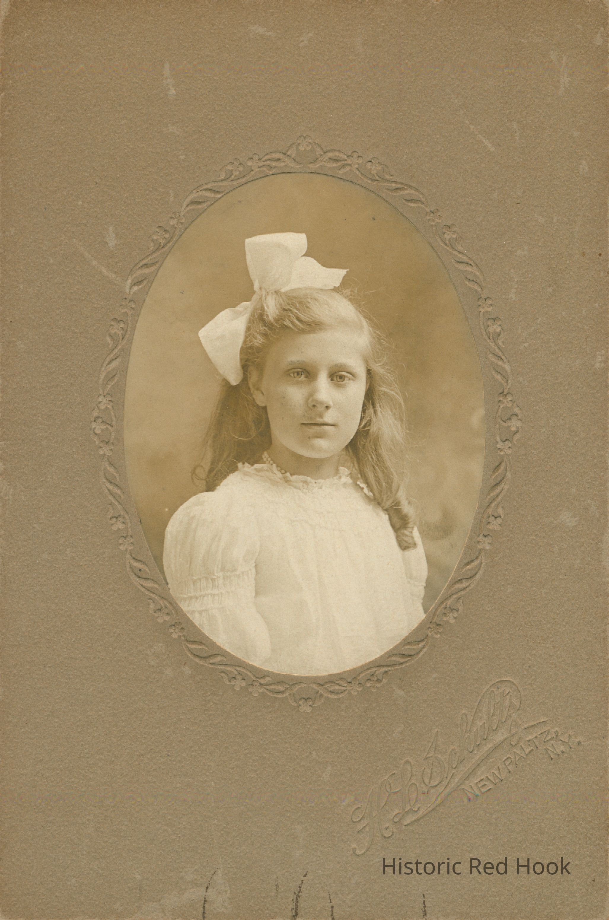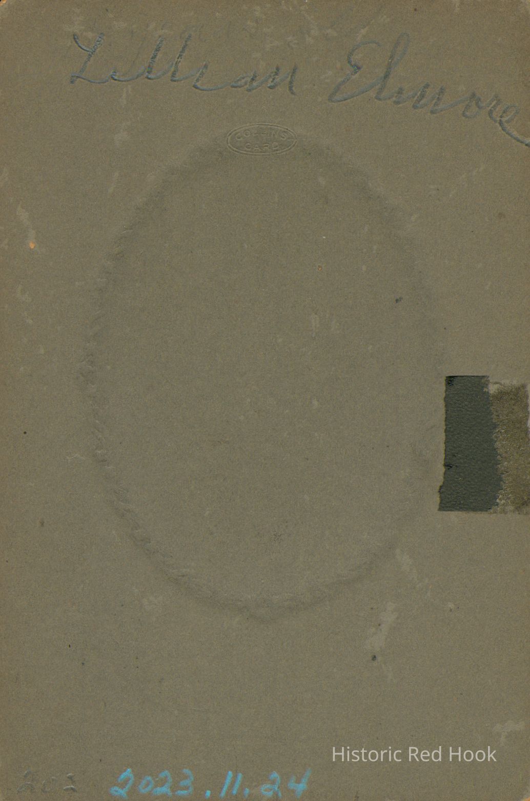 Oval portrait, mounted in cardboard, of Lillian Elmore as a girl