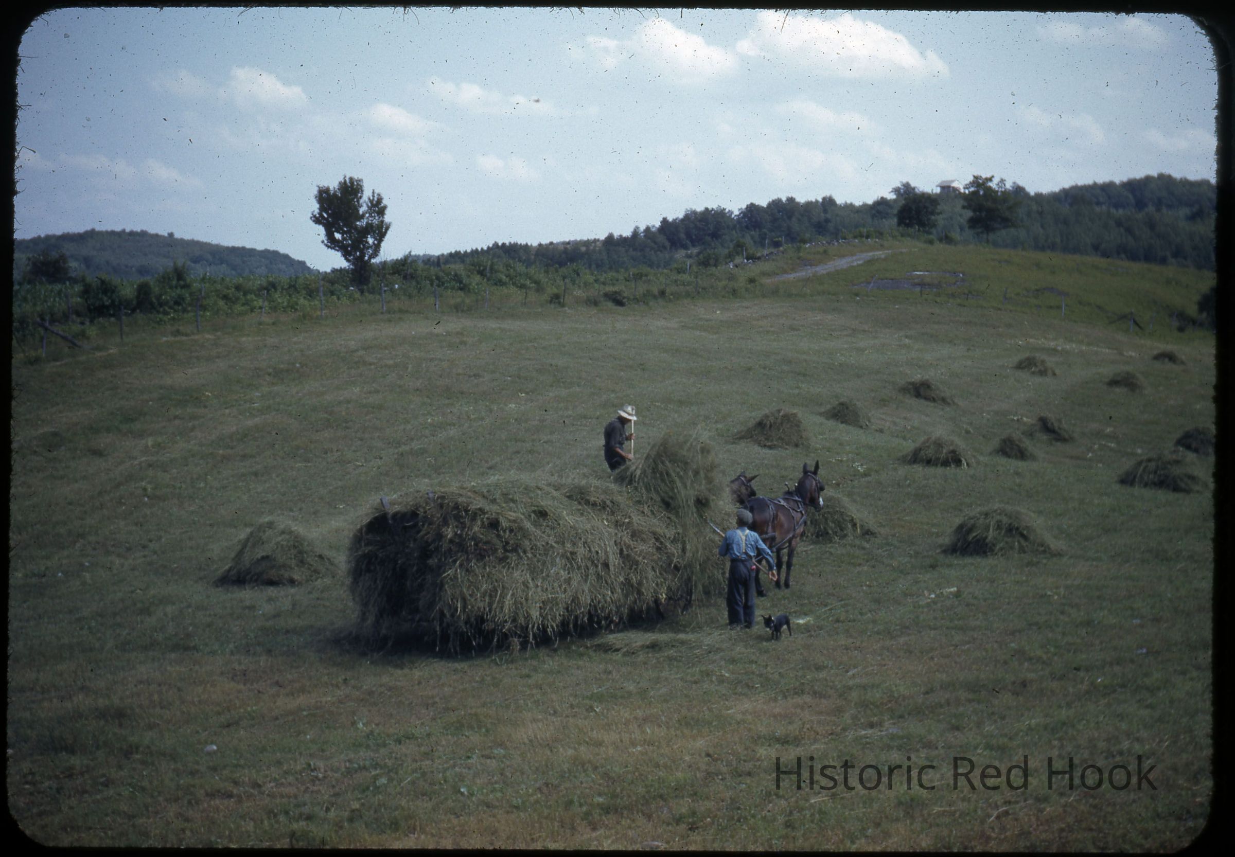 Written on slide frame: 'Loading hay by Hand' 7/9/42