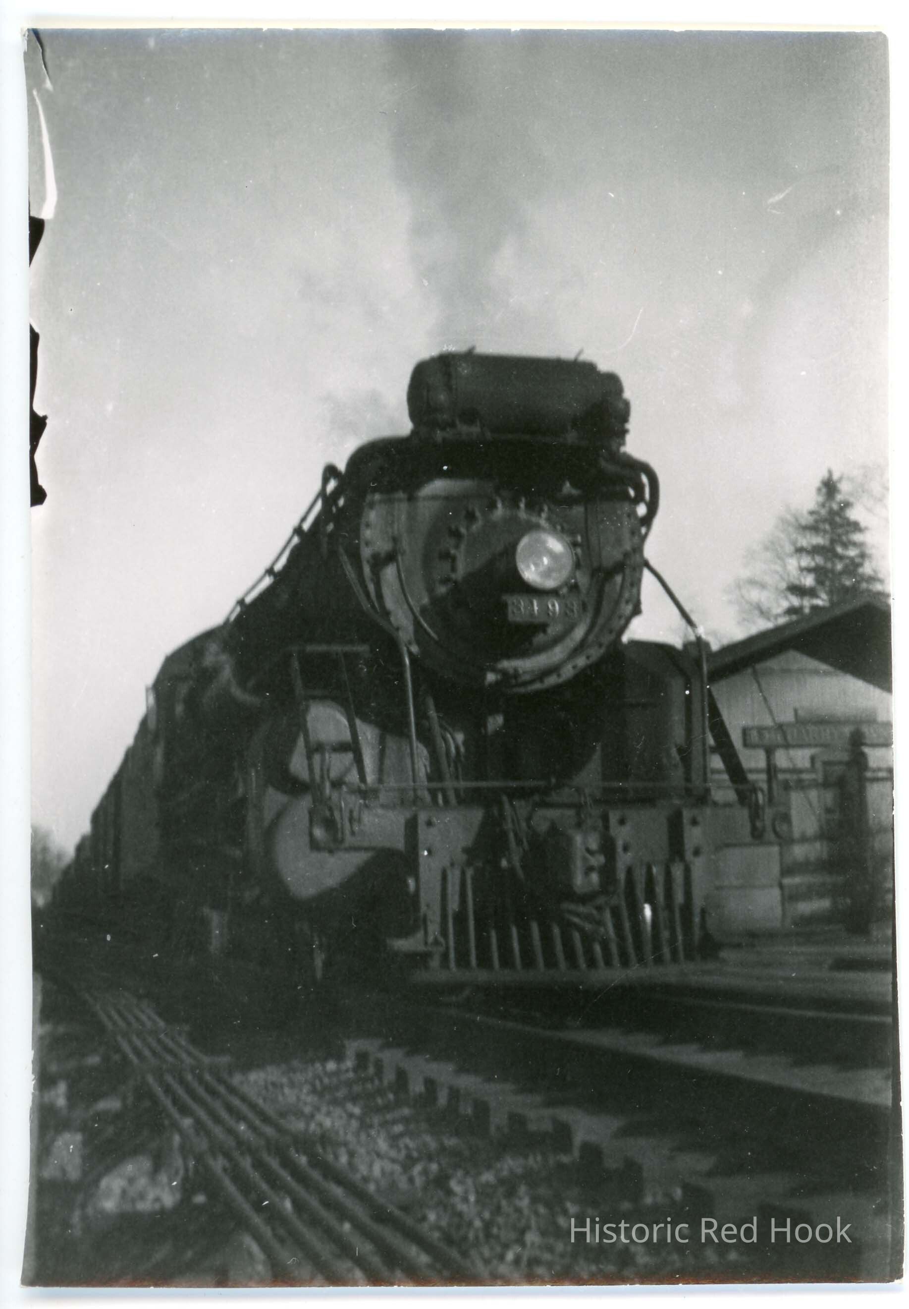 Photo of locomotive in station - written on back - Barrytown Station, 1934 Mikado engine