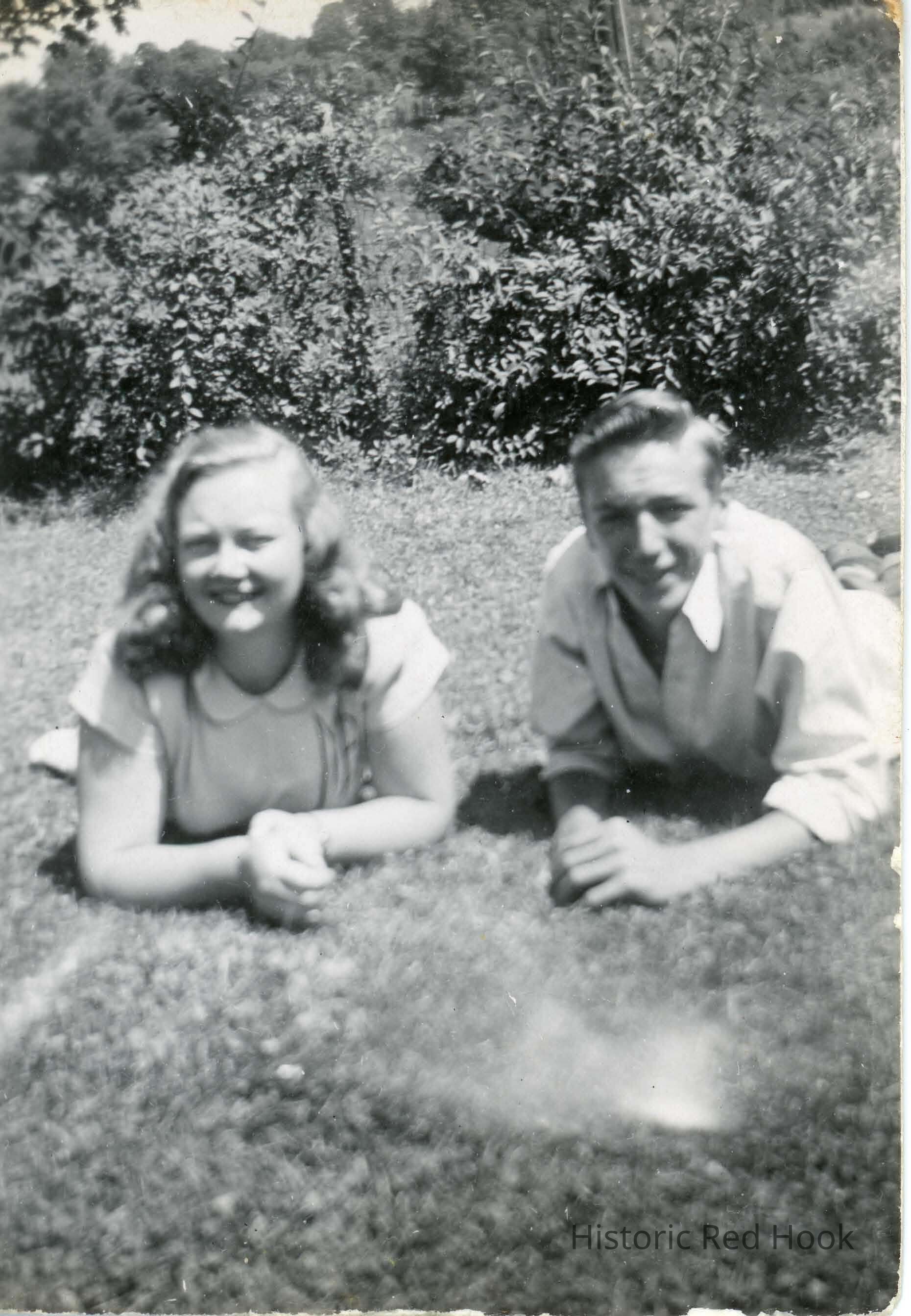 Margaret Riddleburgh Doty and 'Walter' on the lawn summer of 47