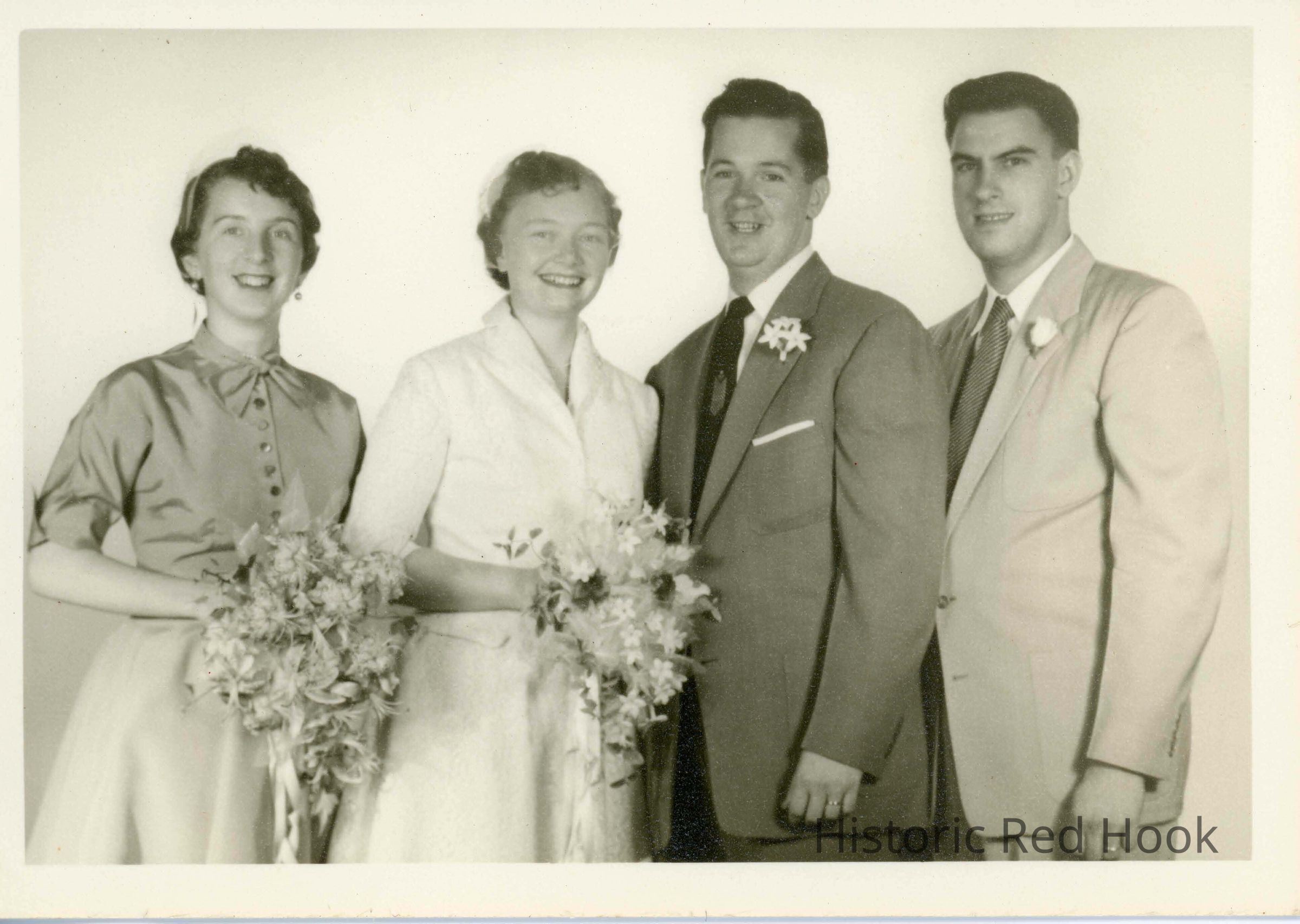 Margaret Riddleburgh and Bill Doty on their wedding day with best man and maid of honor, Sept 11, 1954Photograph Details