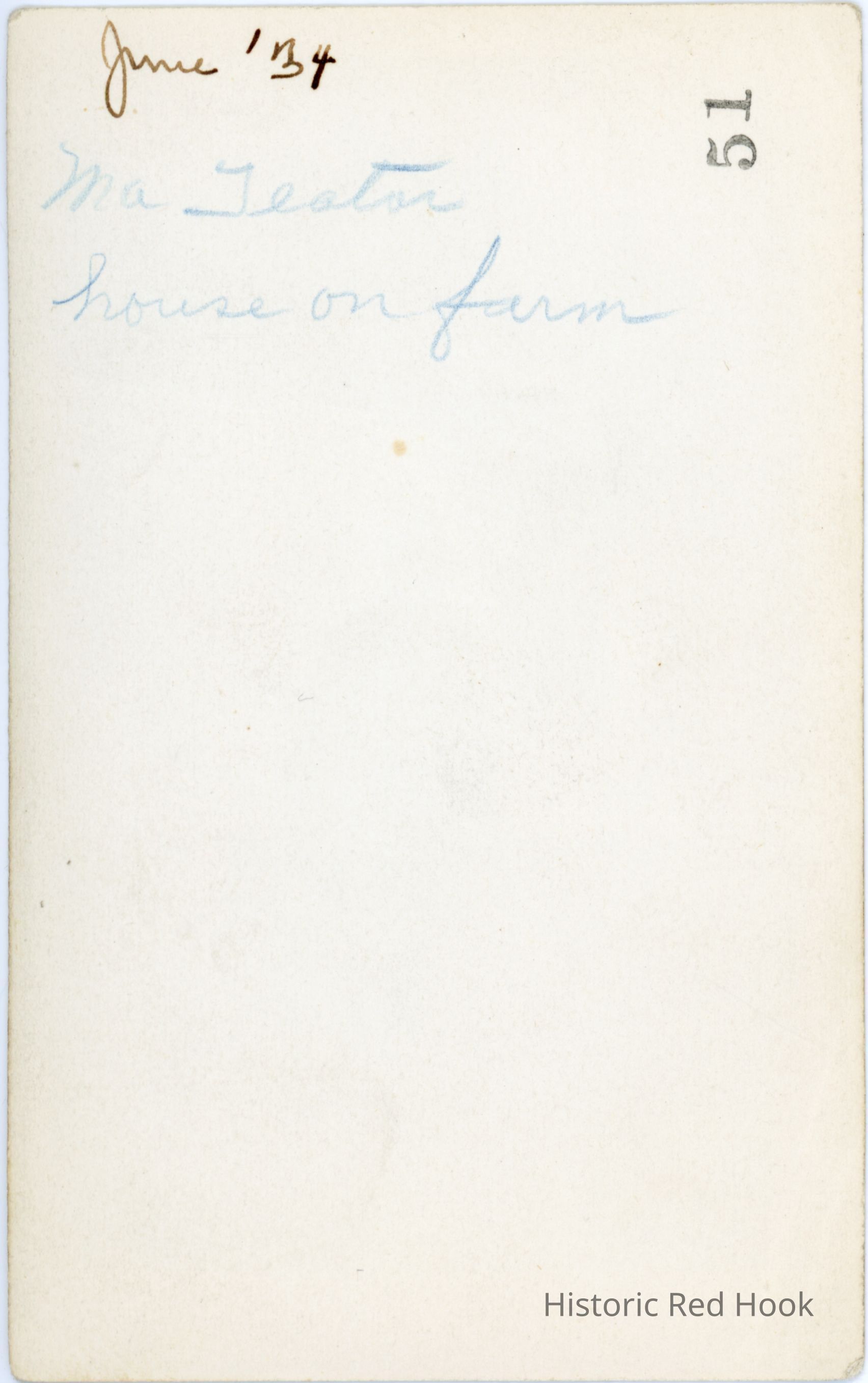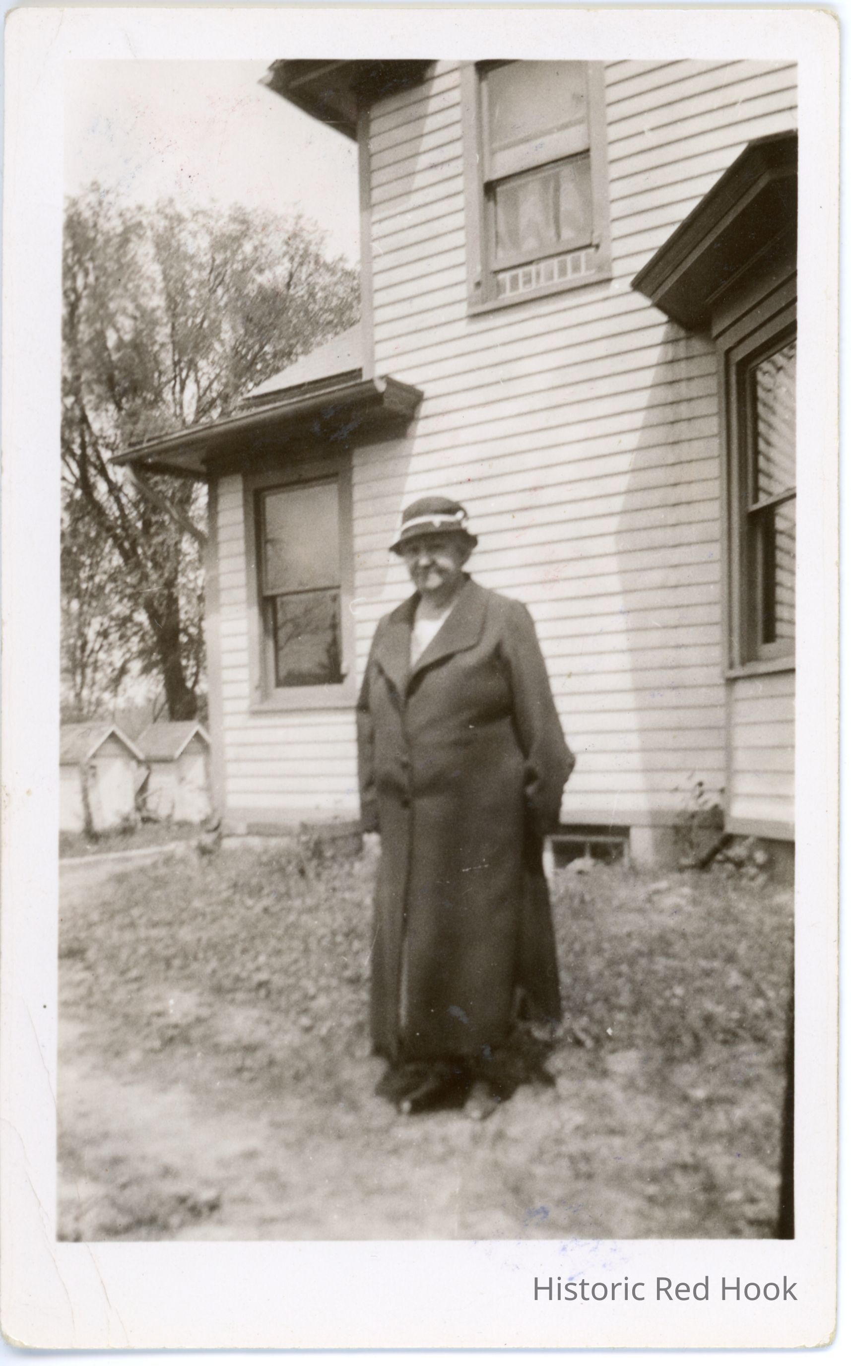 Photo of 'Ma' Teator (Olive Sagendorf?) standing in front of house on Teator farm, marked June 1934 on back.Photograph Details