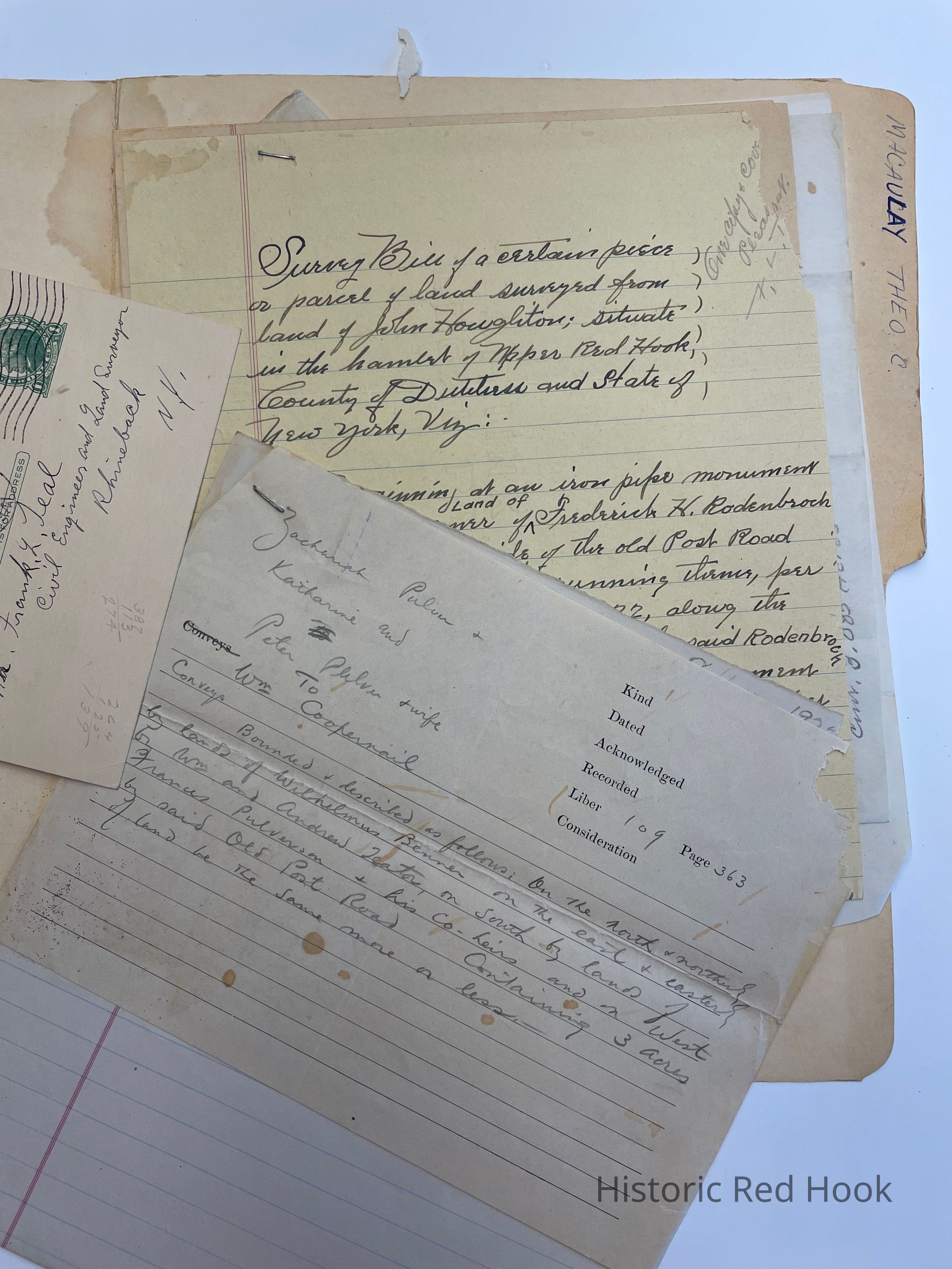 Survey: For Mrs. Frederick H. Rodenbroch 26 July 1949 Parcel from land of John Houghton in Upper Red Hook 0.39 acre