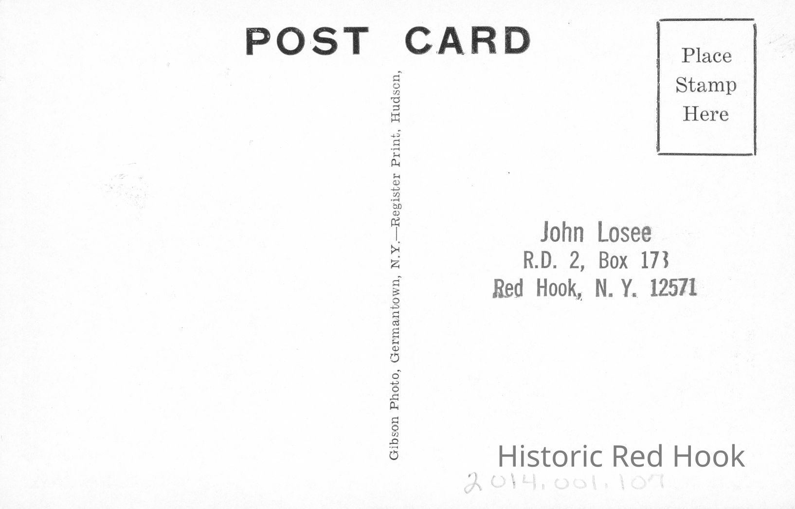 Back is stamped with identifying address: