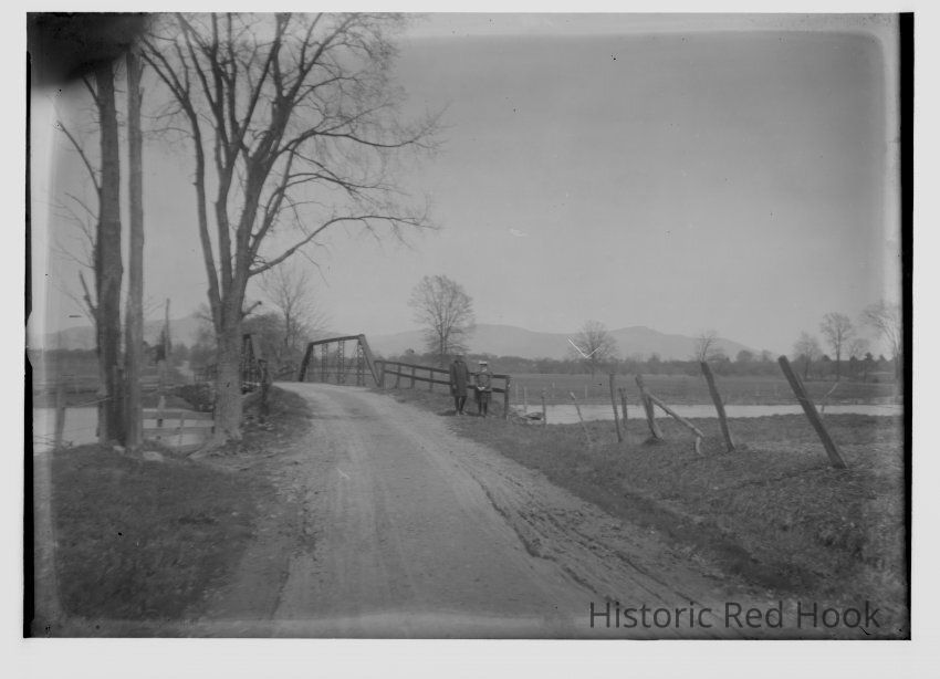 Unidentified man and girl (Marion Teator?) standing on a bridgeCollection