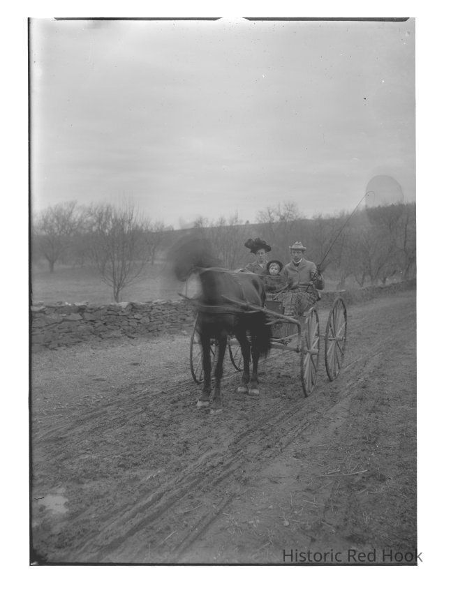 Man, woman and child in horse-drawn buggyEntry/Object ID