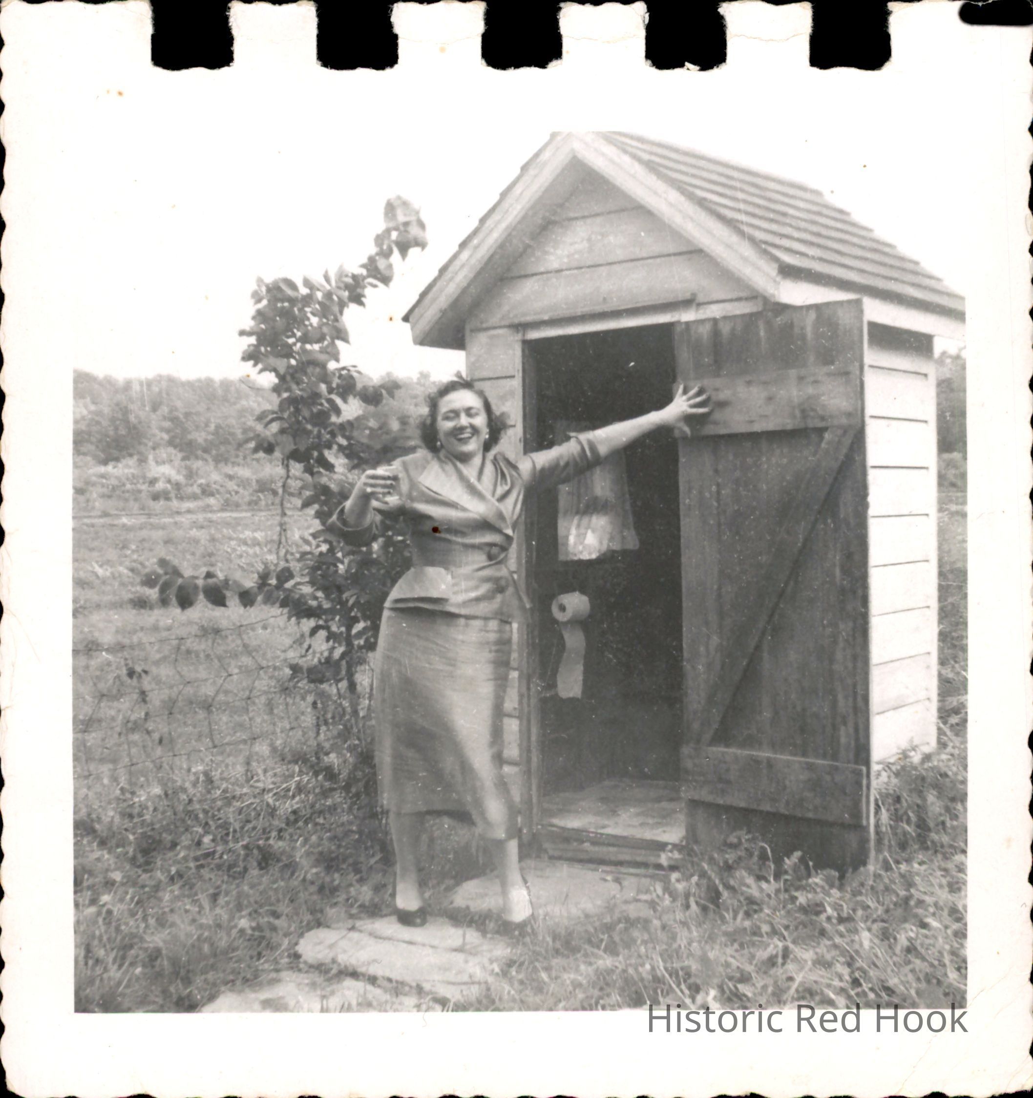 Margaret Riddleburgh Doty in front of out houseEntry/Object ID