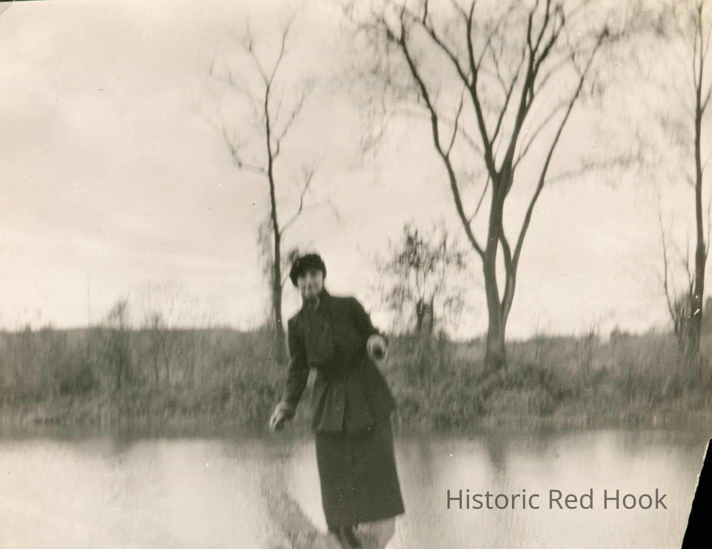 Informal photograph of Marion Teator taken at a pond ca 1918.