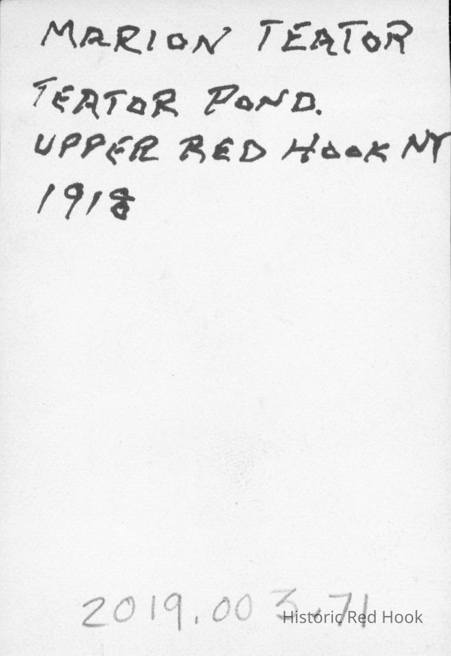 Informal photograph of Marion Teator taken at Teator Pond, Upper Red Hook, New York ca 1918.