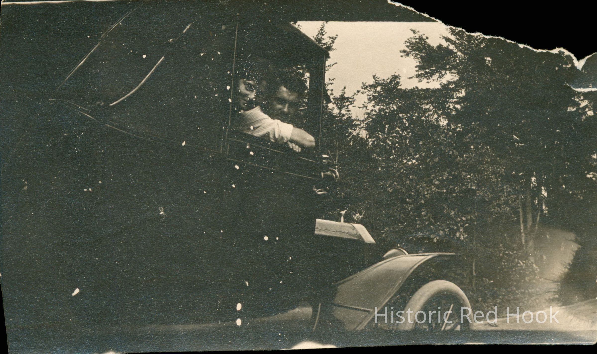 Informal Photograph taken of Marion Teator and Jim Losee in an automobile ca1918.