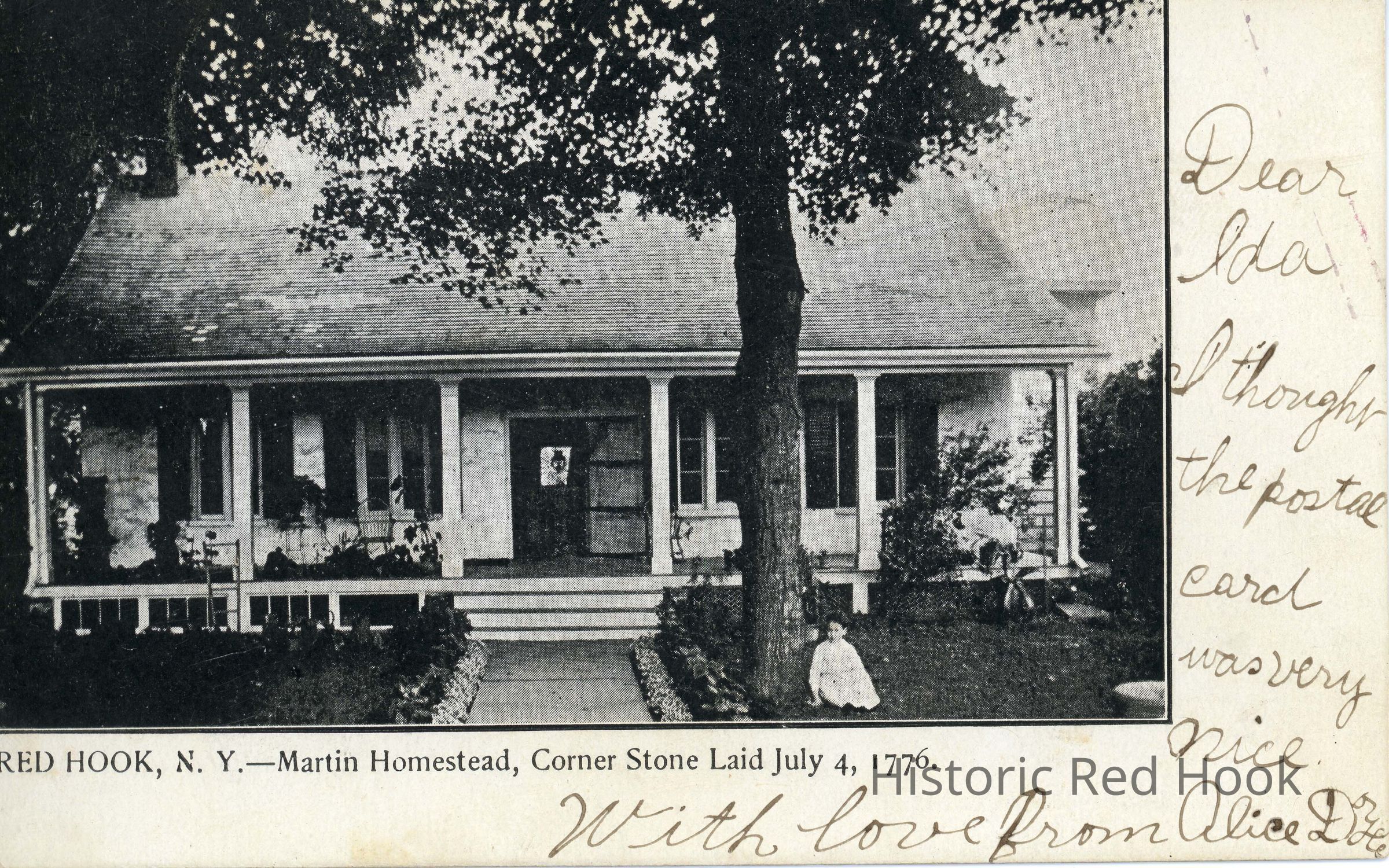 Postcard "Red Hook, N.Y. - Martin Homestead, Corner Stone Laid July 4, 1776