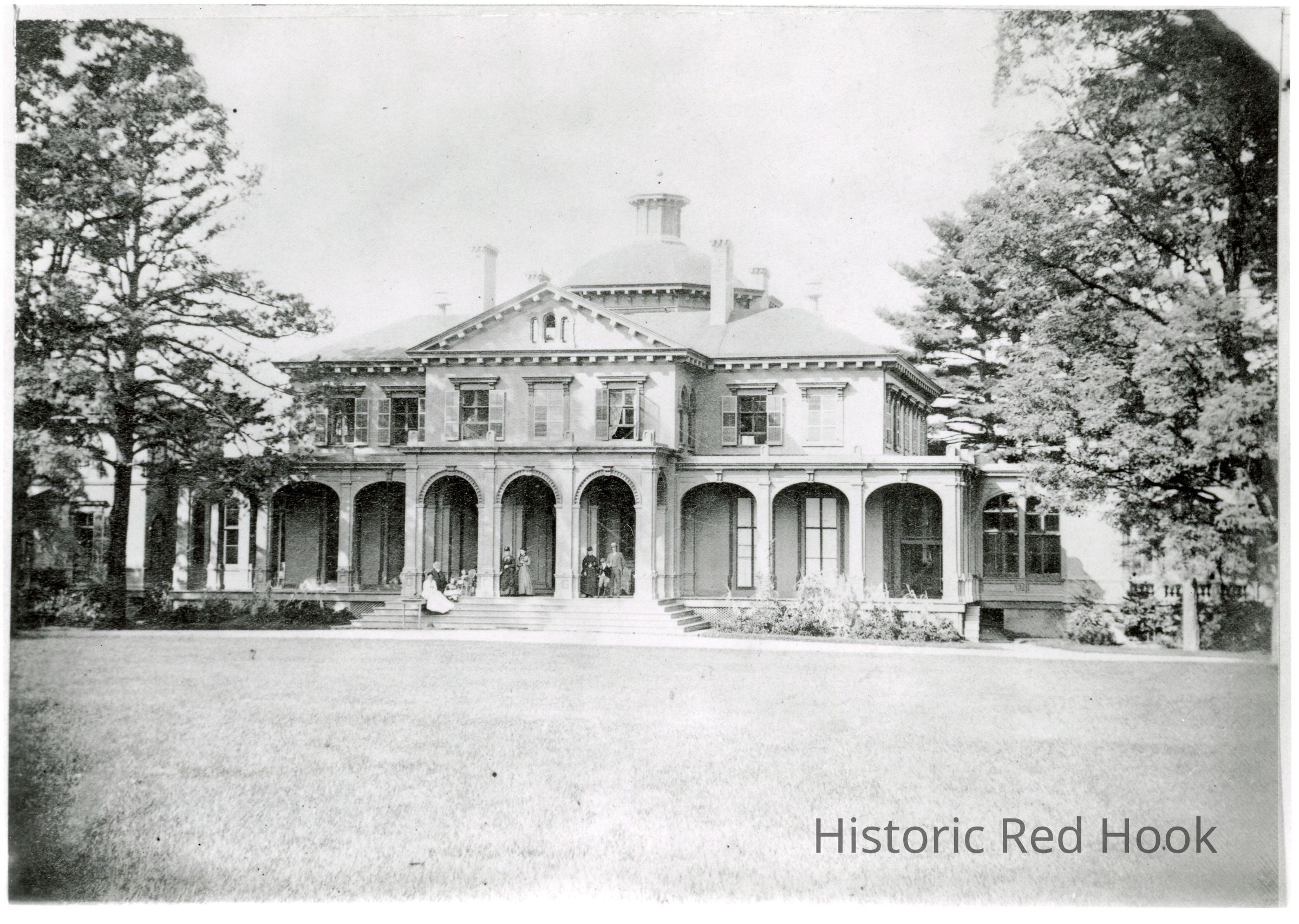 Massena, Barrytown. Caption on 'A Brief History of Red Hook' reads: Central portion of original mansion destroyed by fire 1885.