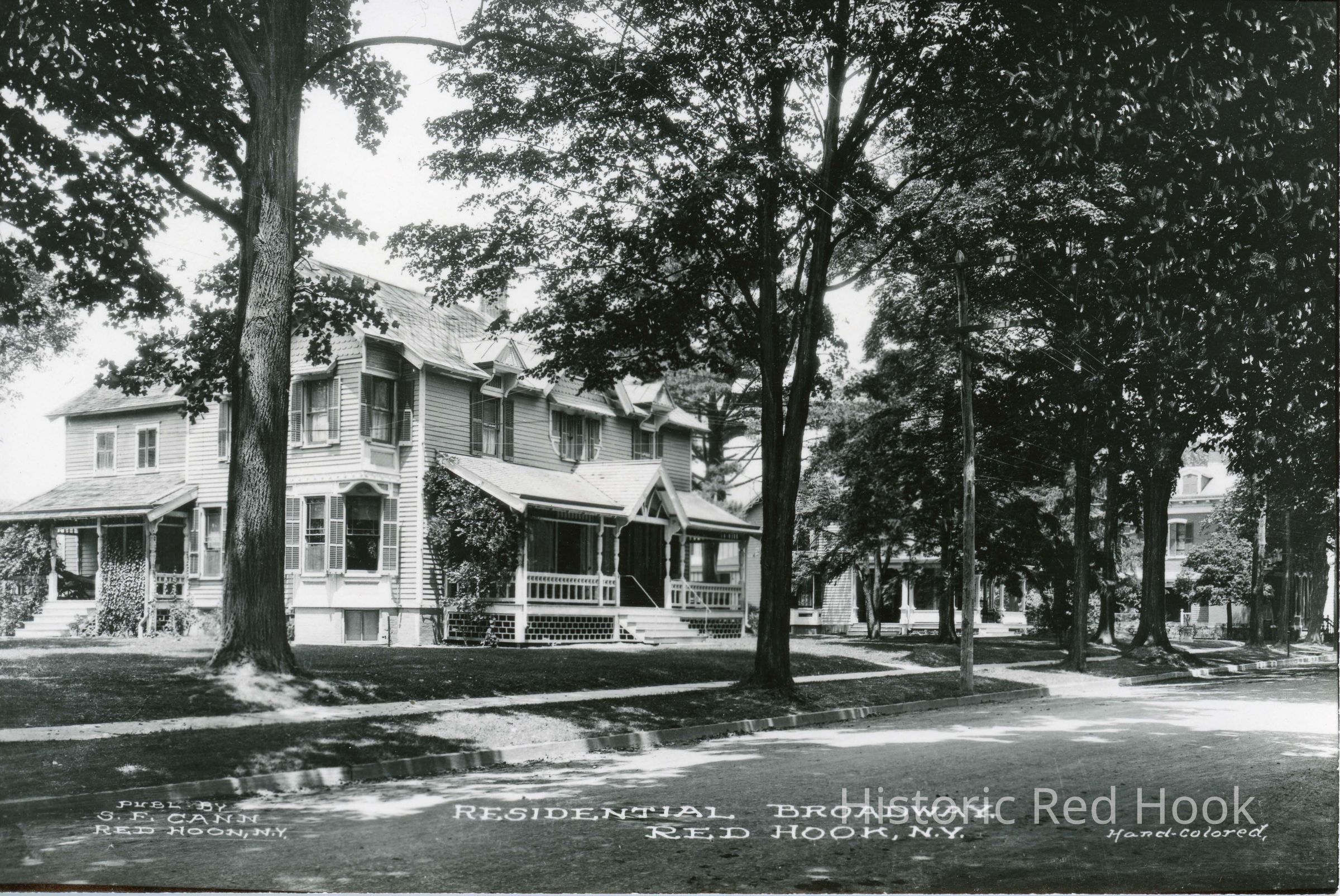 Former Zipser, Massonneau residence on South Broadway. Copy of Post Card -Written on front" Residential Broadway Red Hook, N.Y., Publ by G. F. Cann, Red Hook, NY hand-colored'Subject Place