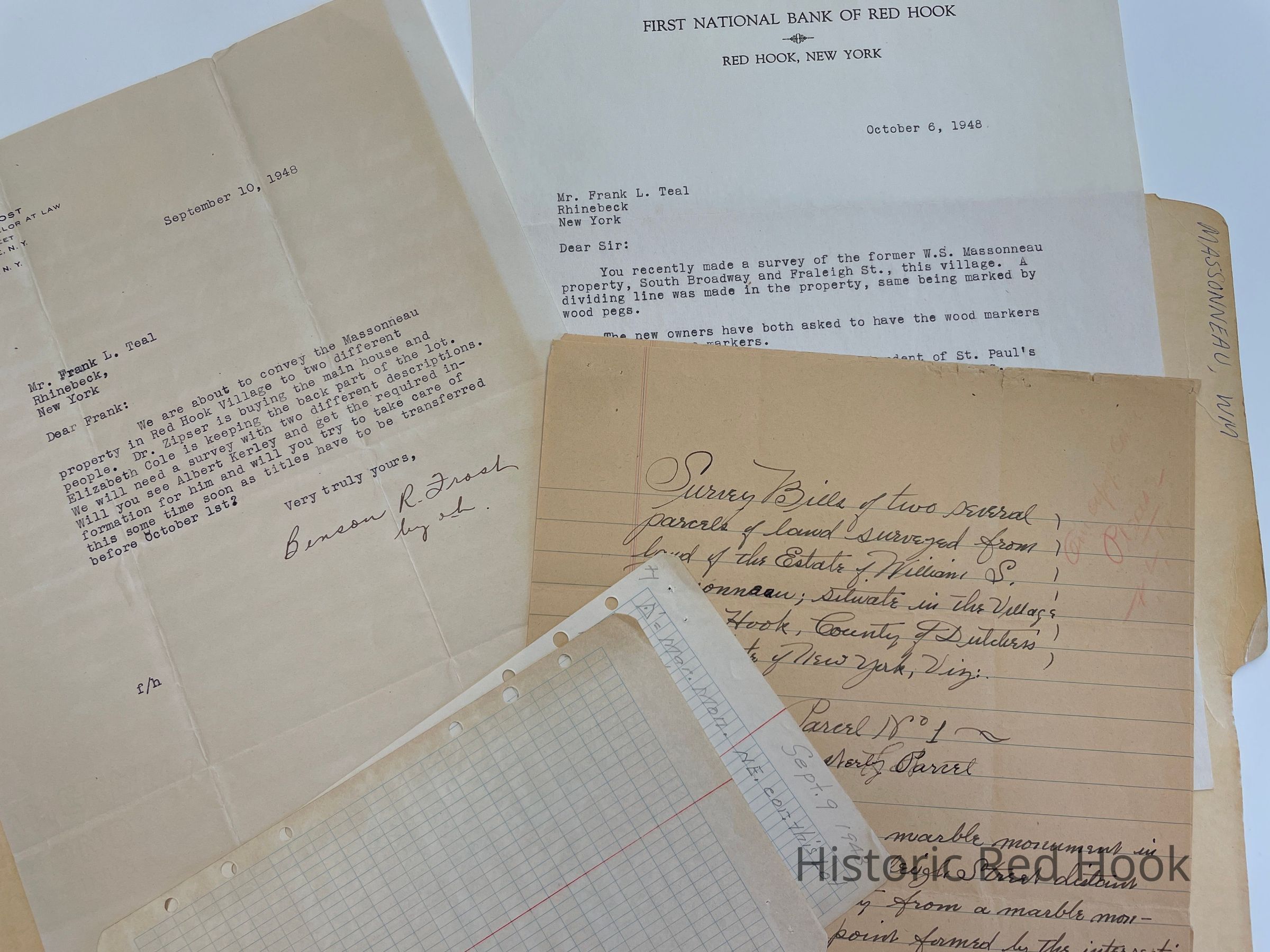 Survey: For Estate of William S. Massonneau 9 Sep 1948 2 Parcels. 1st Lot- 0.257 acre 2nd Lot- 0.785 AcreCollection
