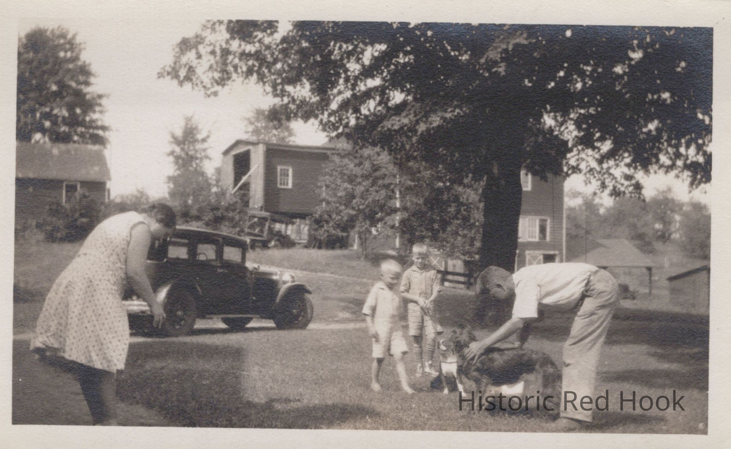 Gordon and Fay Mead with their sons,Gordon and Sidney and two dogs outside their home,August 1929