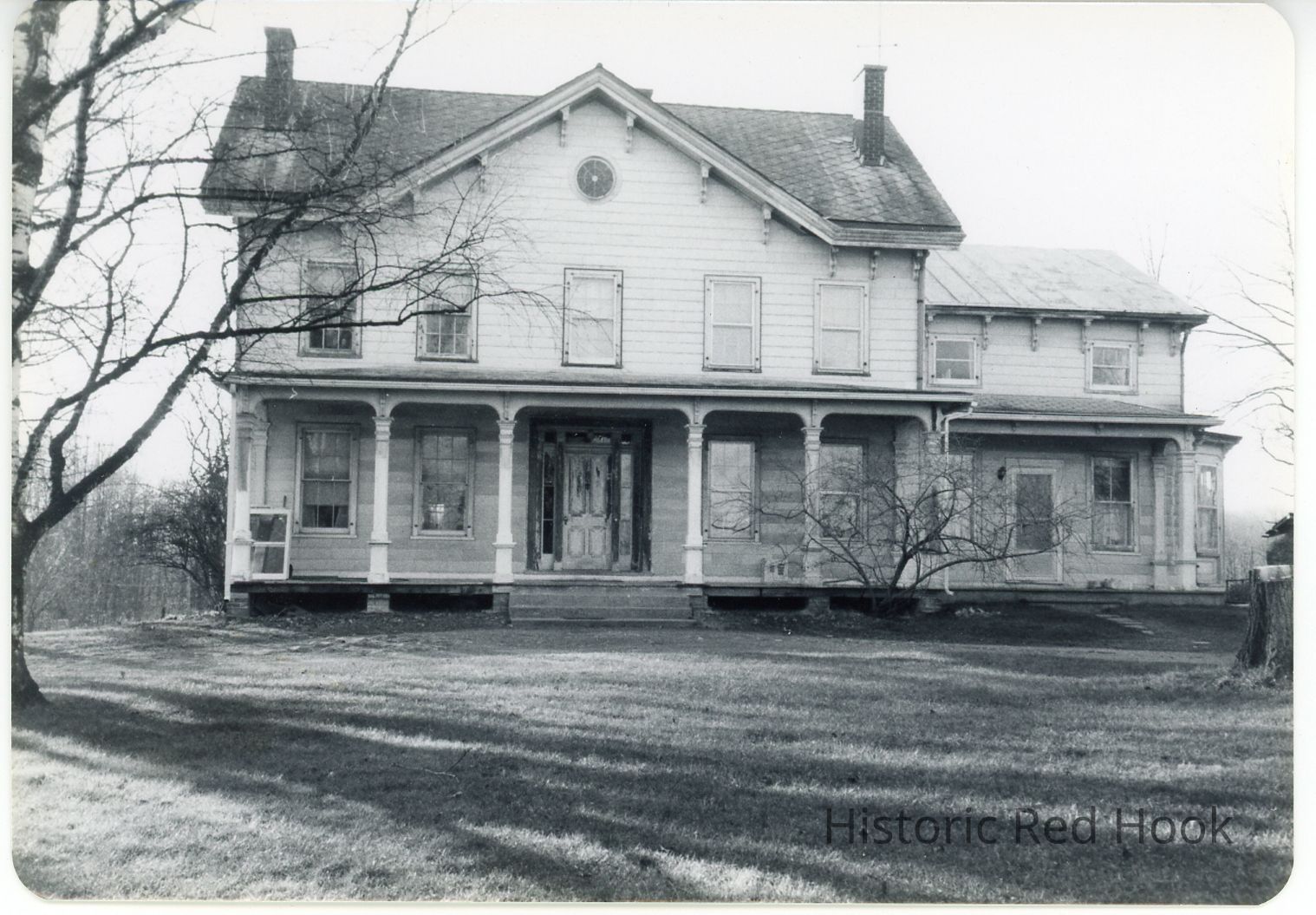 Black and white view of Mead farmhouse, mid-1970s.