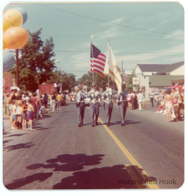 Memorial Day parade, South Broadway looking north, 1971. Melley's 'Five and Dime" on the right, by this time auto parts store before new controversial building. Original color Kodak print.Collection