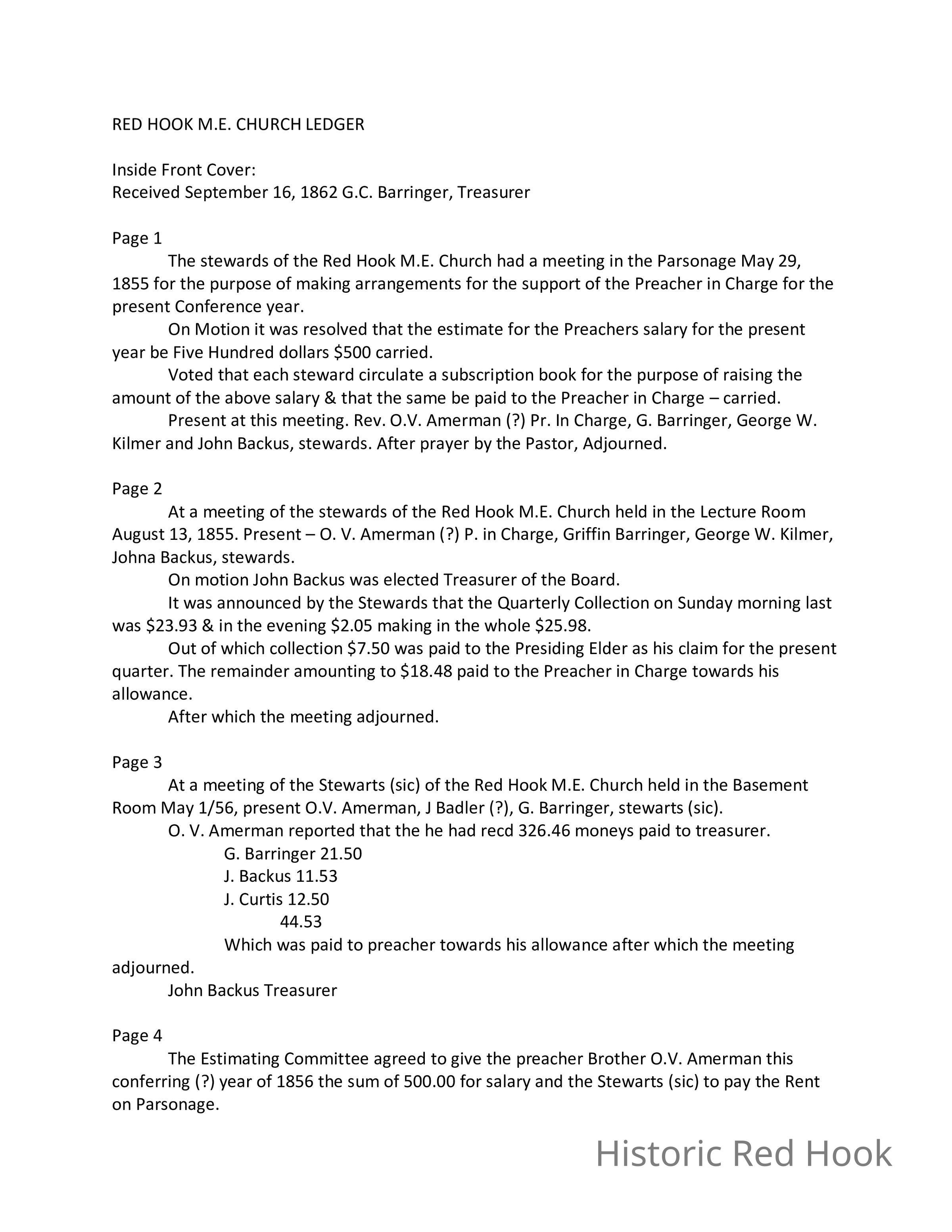Methodist Church Stewards Book, 1855-1877. Transcription only. Original ledger was borrowed and returned.Relationships