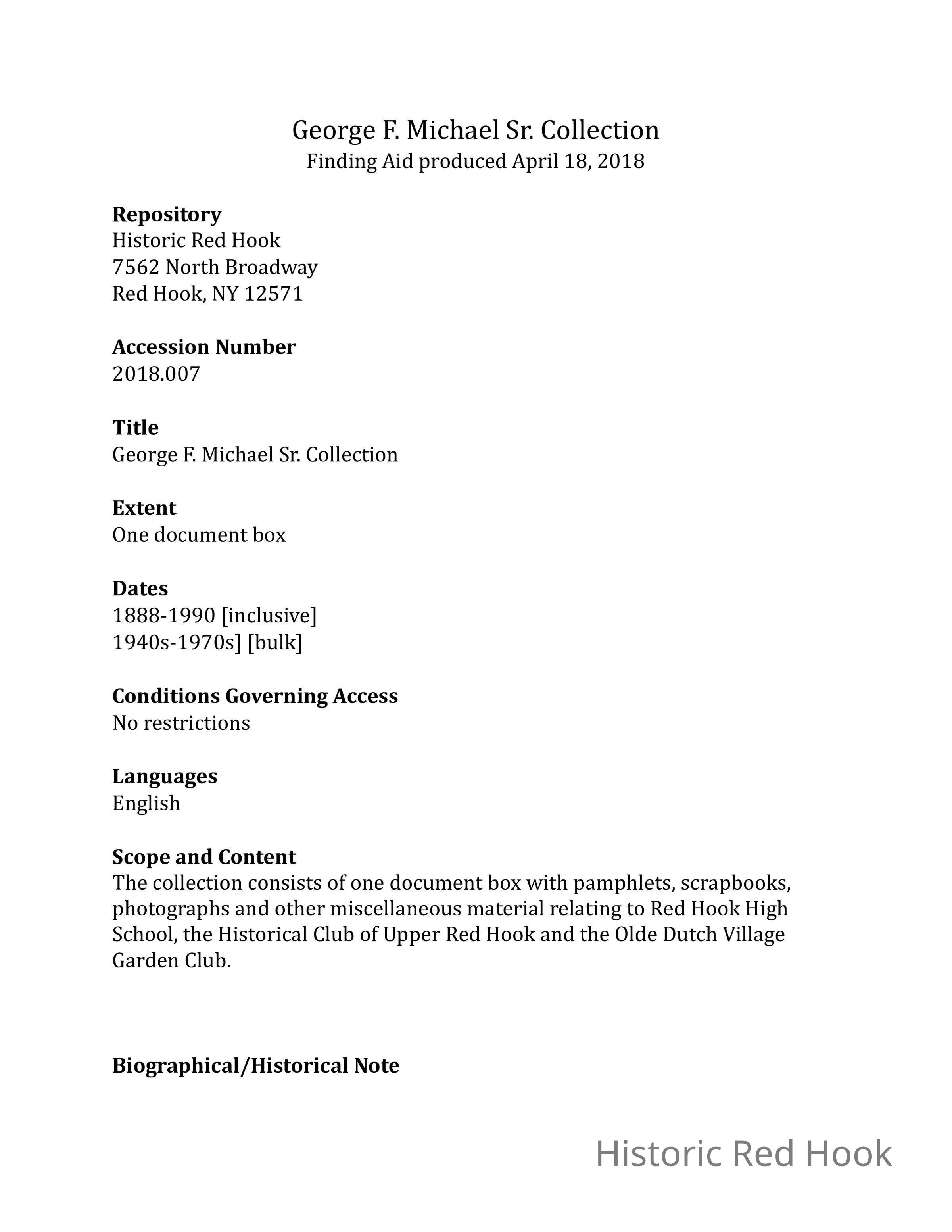 George F. Michael Sr. CollectionRelationships