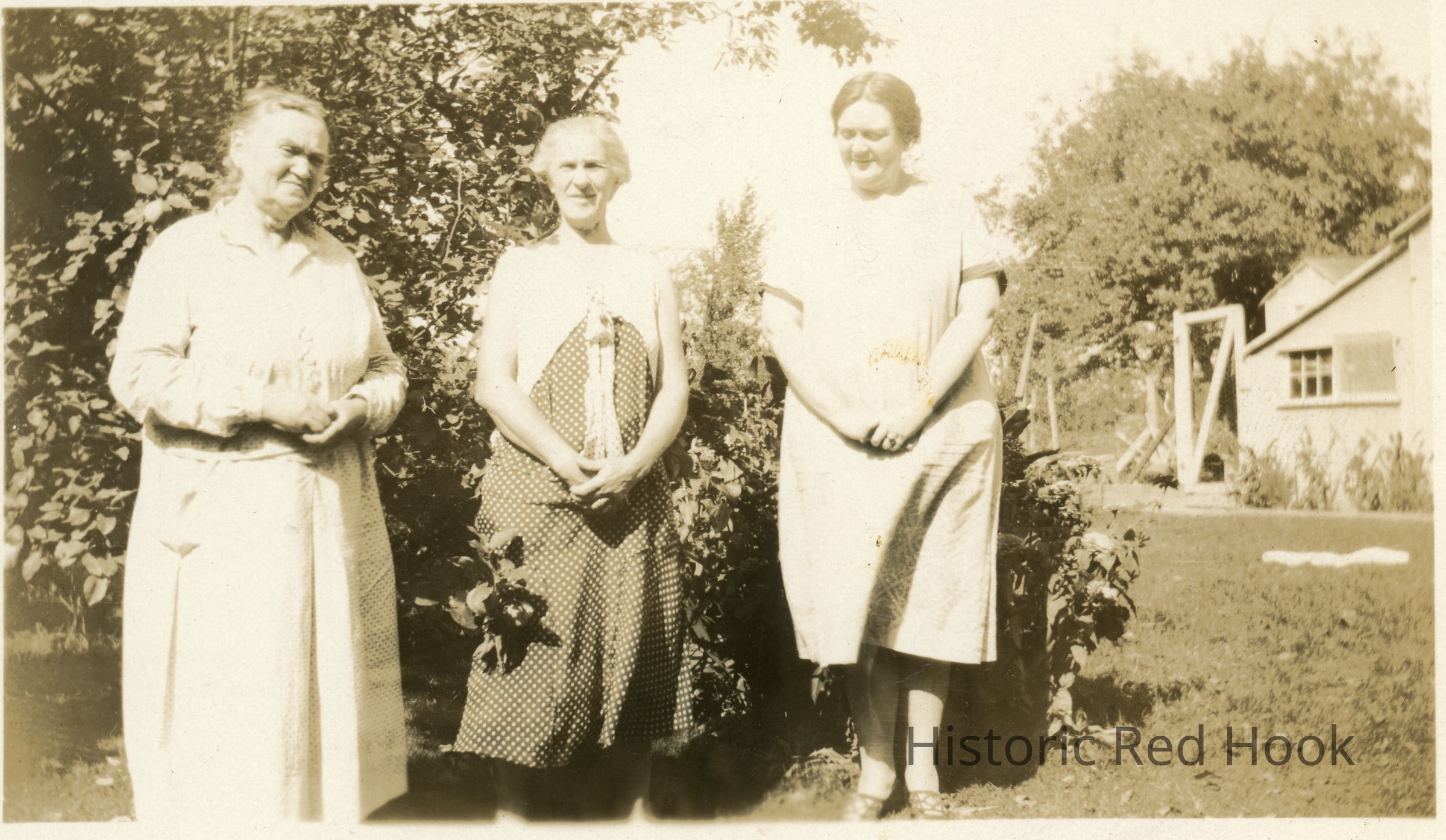Minkler Farm, three women standing outside. Mrs. Minkler on the left, Florence Minkler on the right.Photograph Details