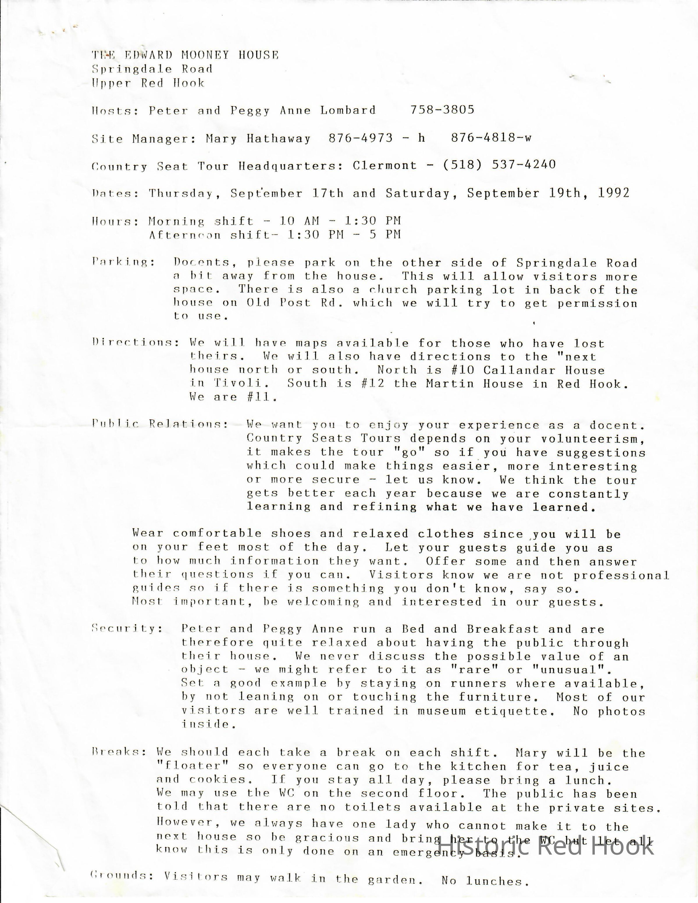 Brief history of the house written up for an open house in 1992. Also notes for setting up the open house.Relationships