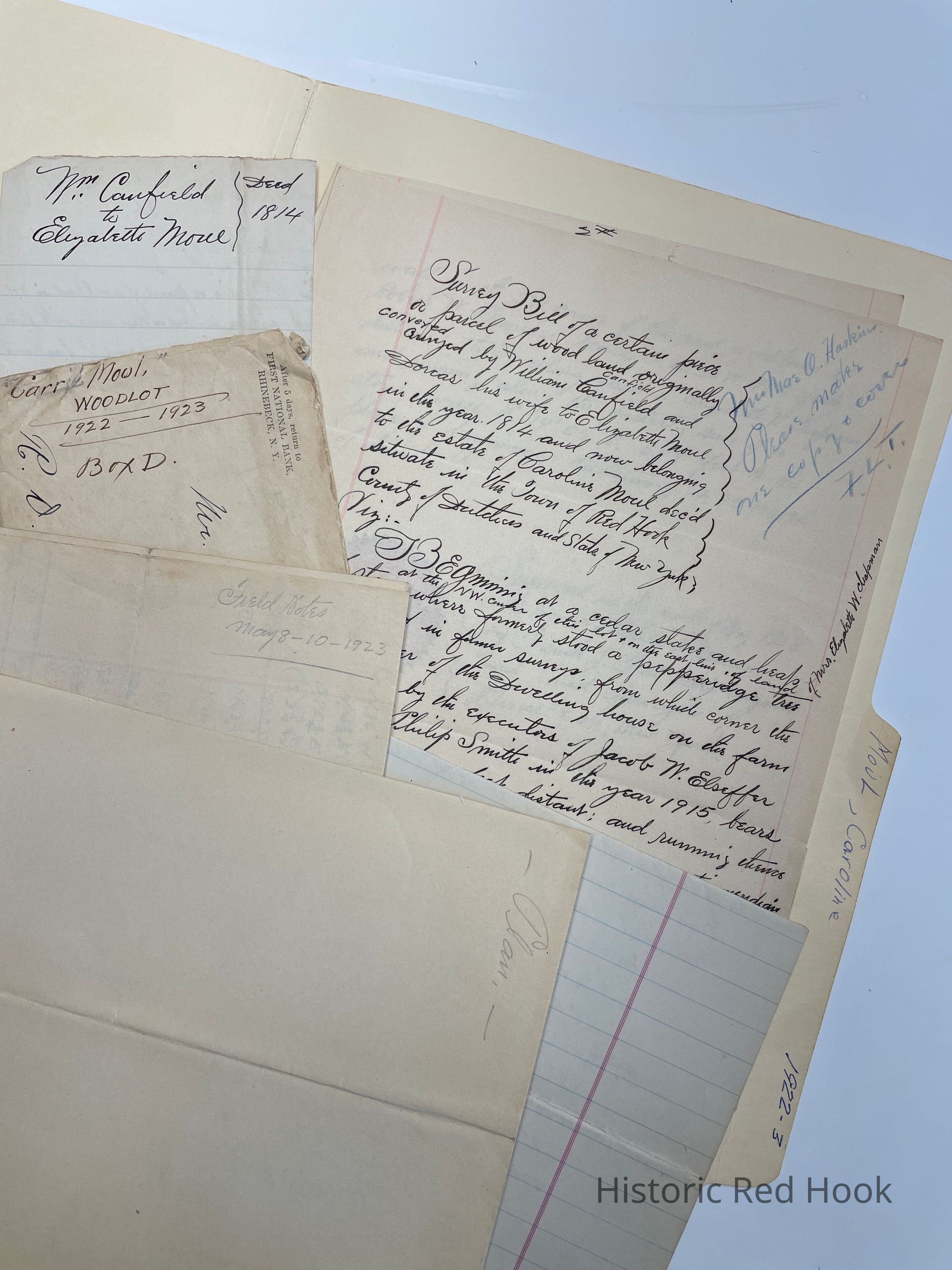 Field Notes- 7 May 1923 “Peter Moul Woodlot, late property of Caroline Moul, Dec’d.