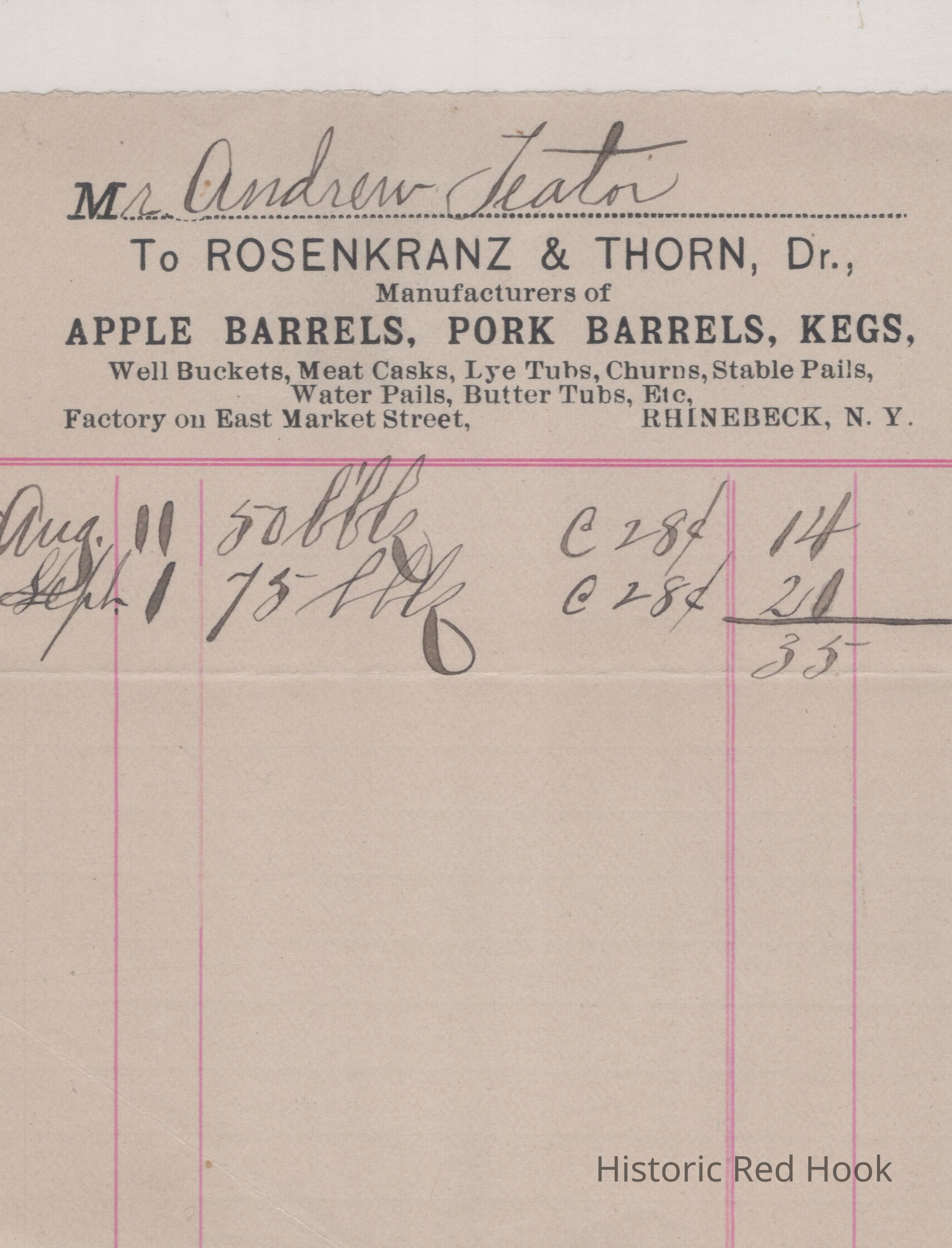 Receipt for $35 from Rosenkranz & Thorn, Dr., Rhinebeck, New York for Mr. Andrew Teator.Relationships