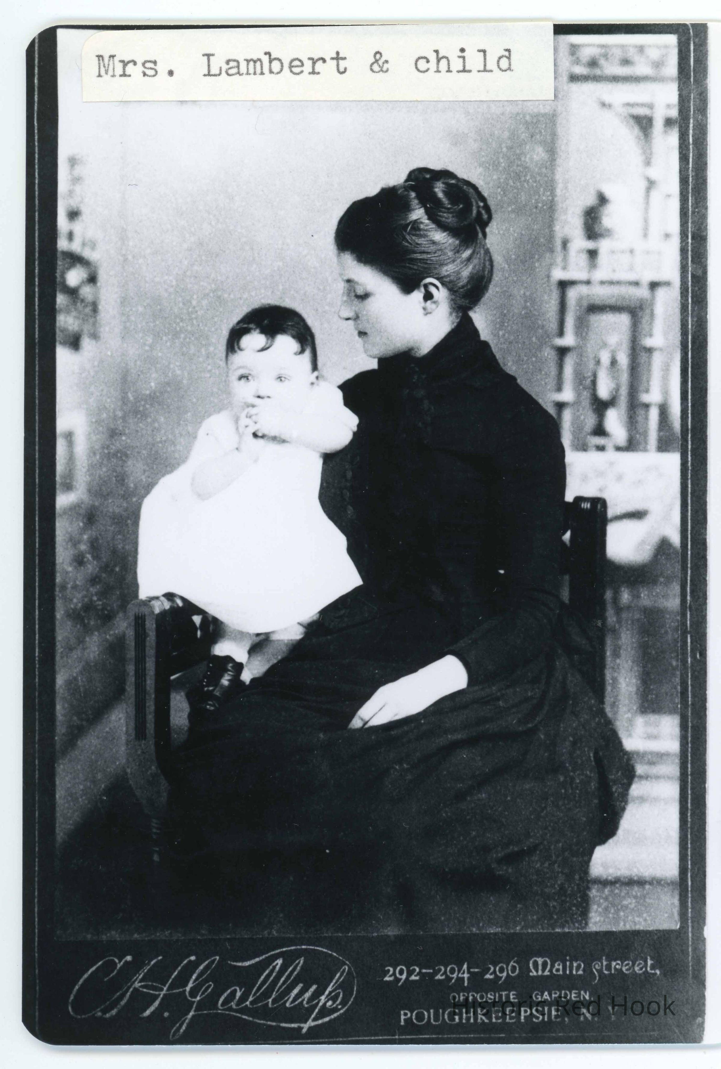 Formal portrait of a young woman seated holding a baby taken at the C. H. Gallup Studio located at 292-294-296 Main Street, (opposite) garden Poughkeepsie, N.Y. identified as Mrs. Lambert & child.Photograph Details
