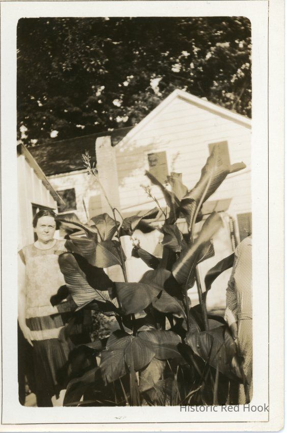 Photo of Mrs.Minkler and huge plant at Montgomery Street