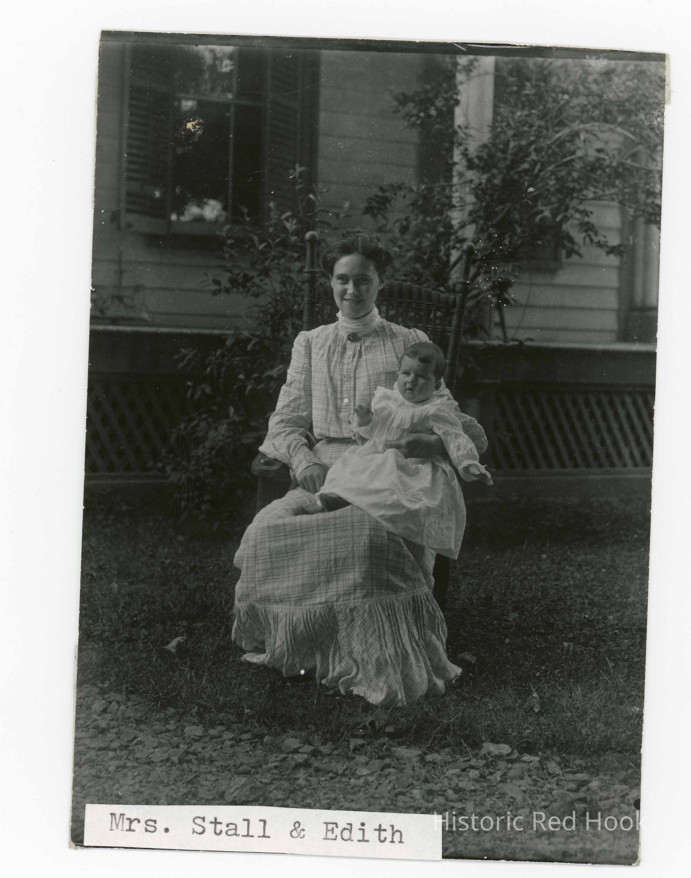 Photo of Mrs. (Jenny?) Stall and baby Edith. Image is from W.S. Teator glass plage negative #2014.008.129 (reversed).Photograph Details