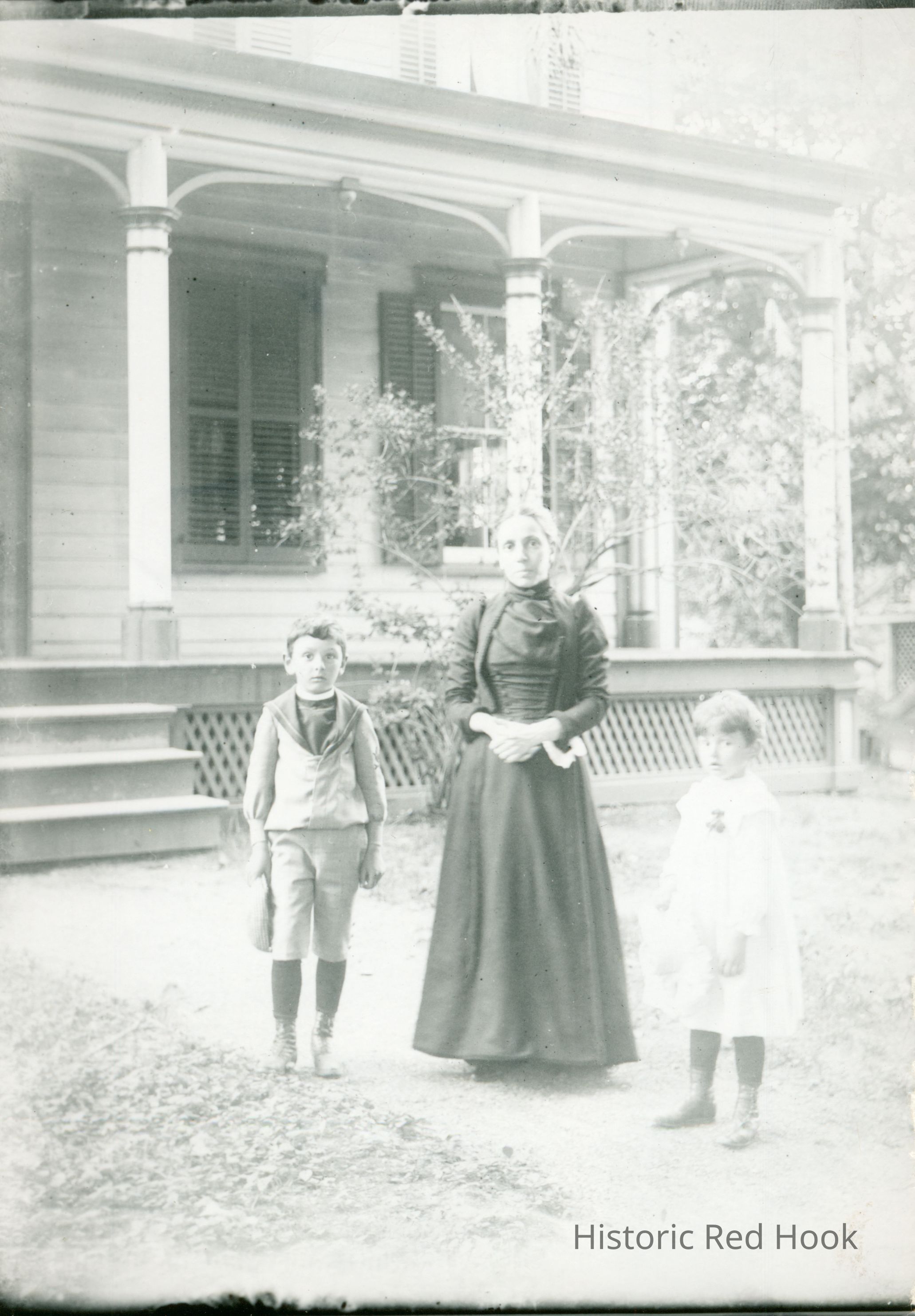 An informal outdoor photograph of Nena Teator pictured with Roscoe and Marion Teator.Photograph Details