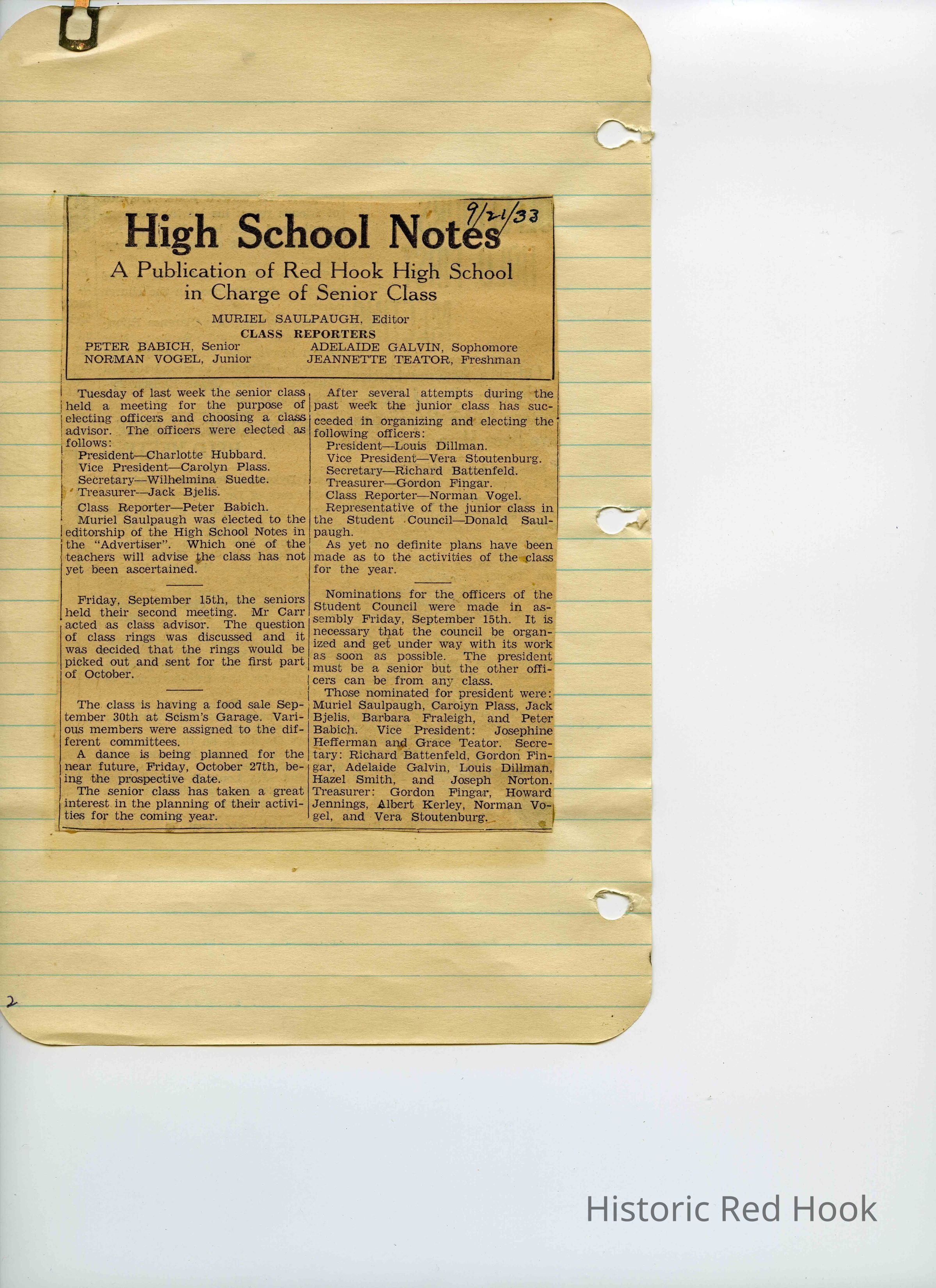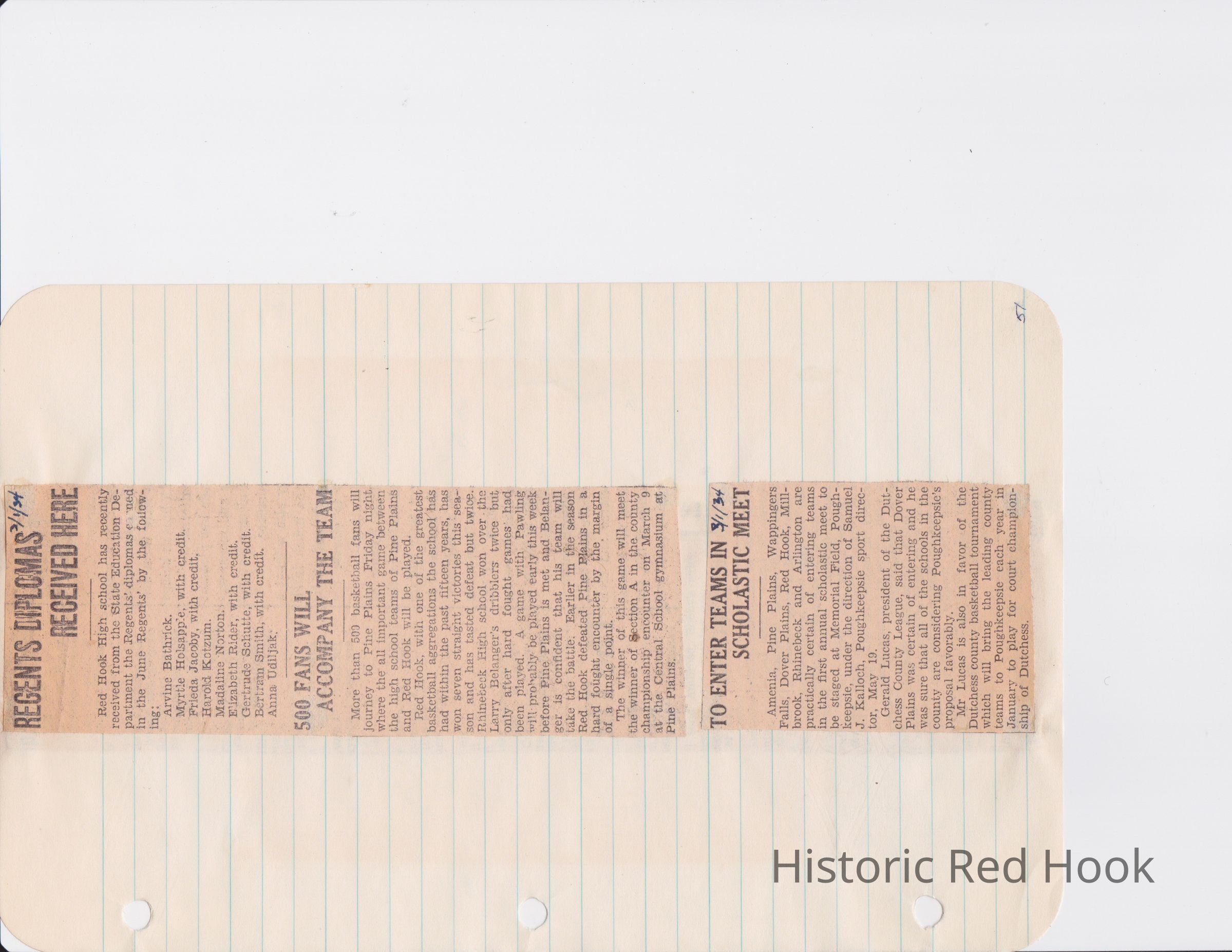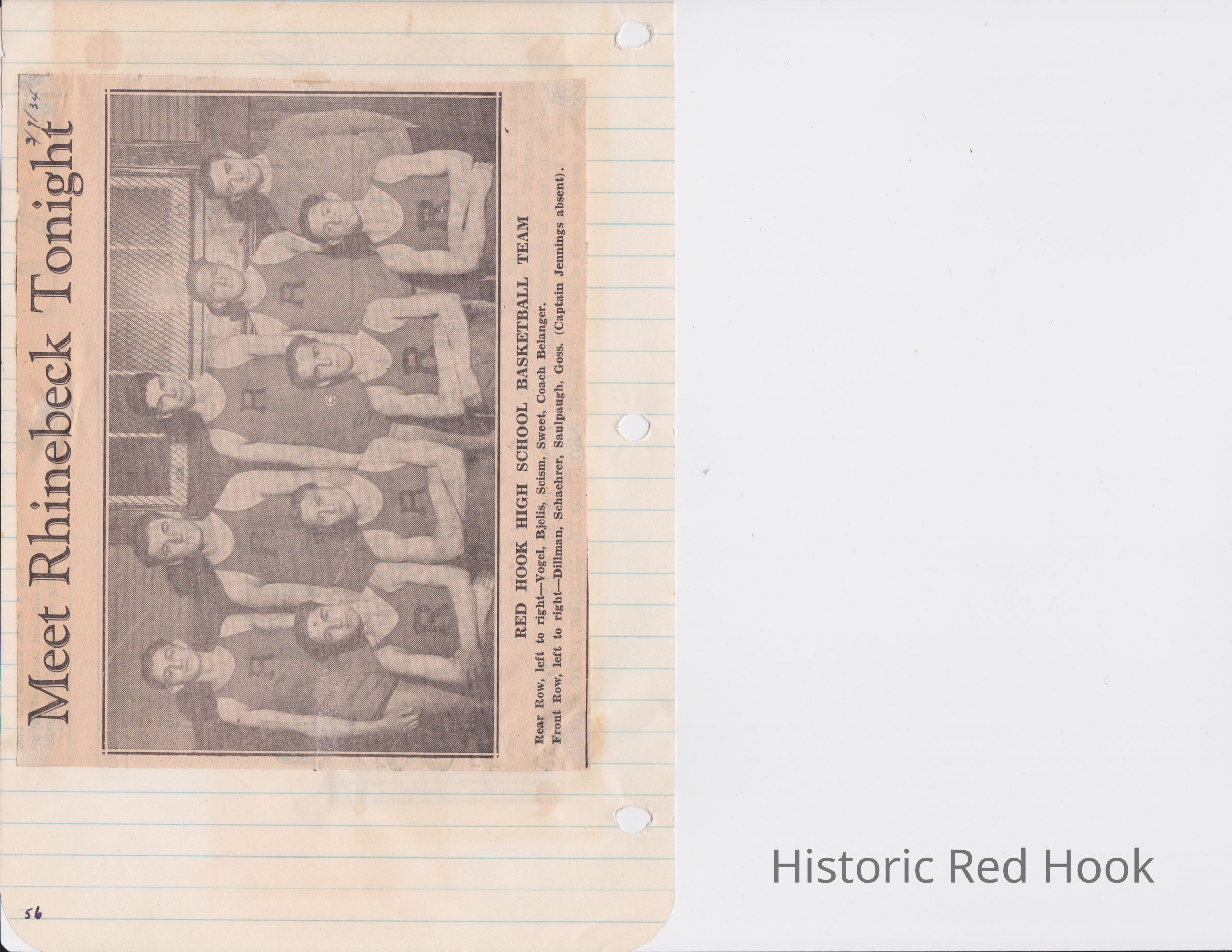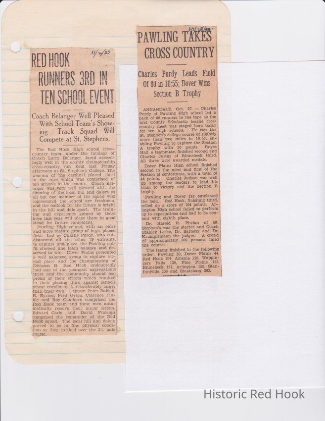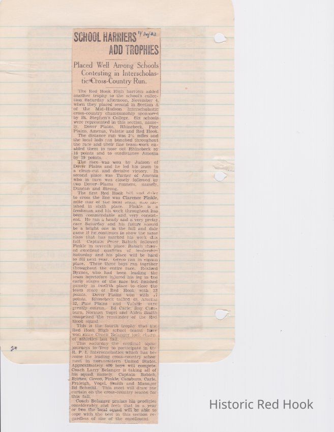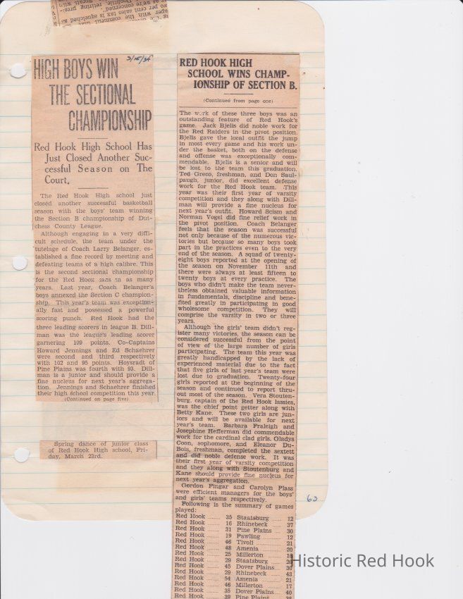 Scrapbook put together by Norman Vogel. It contains newspaper clippings about school news and sports from Red Hook High School 1933-1934. It was given to Patsy Vogel by Norman's widow, Margaret Vogel.