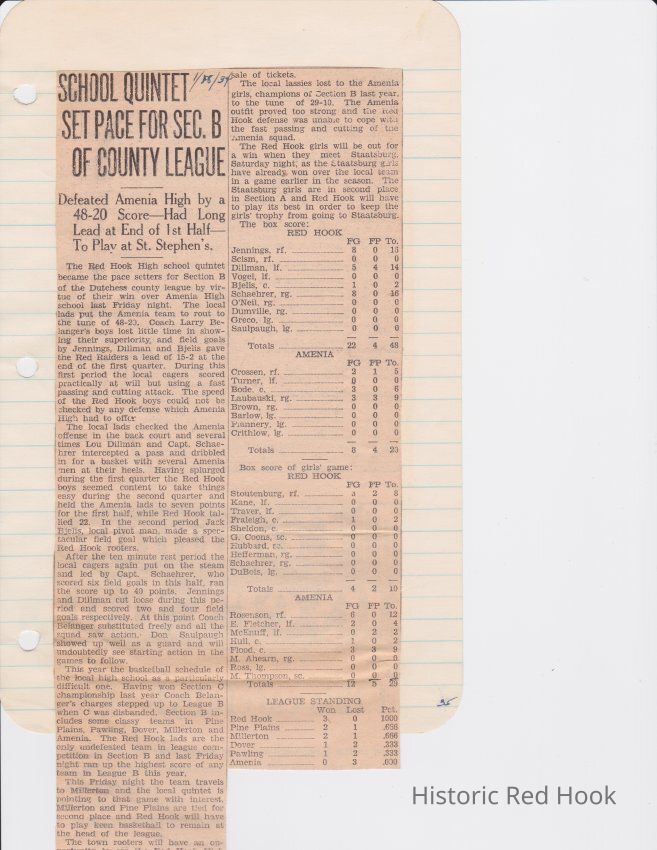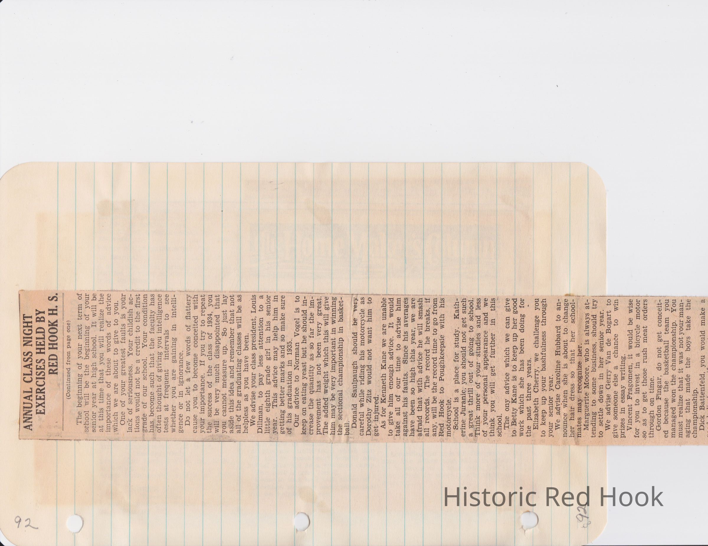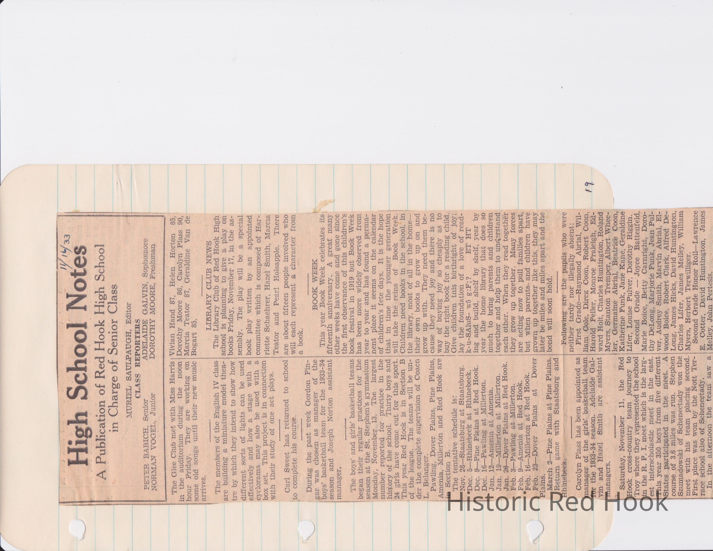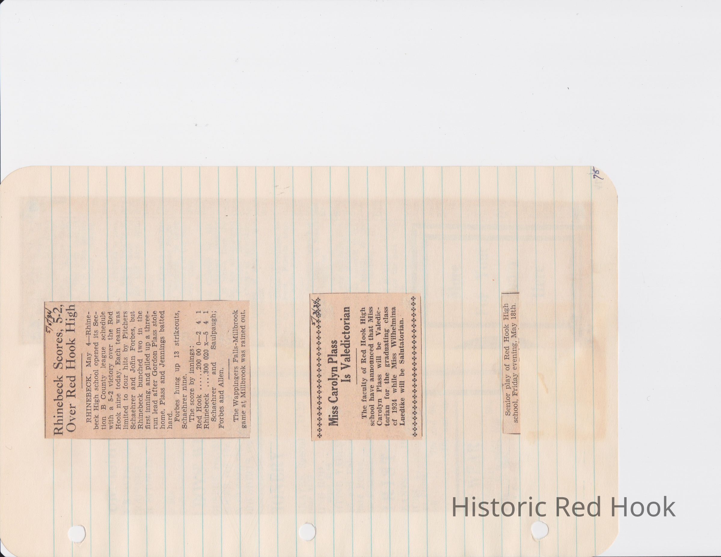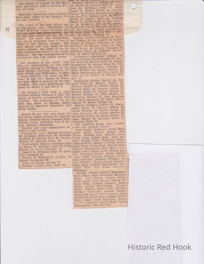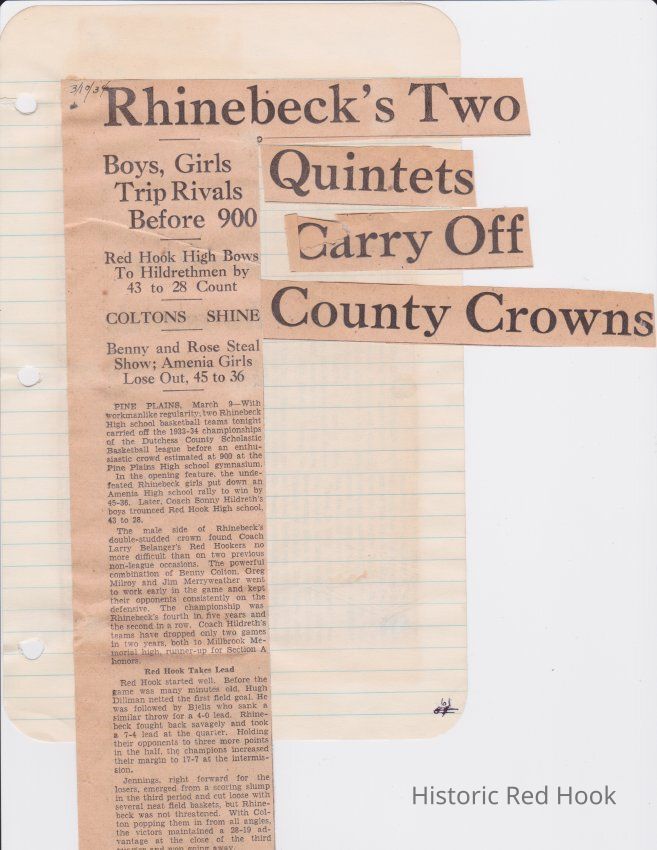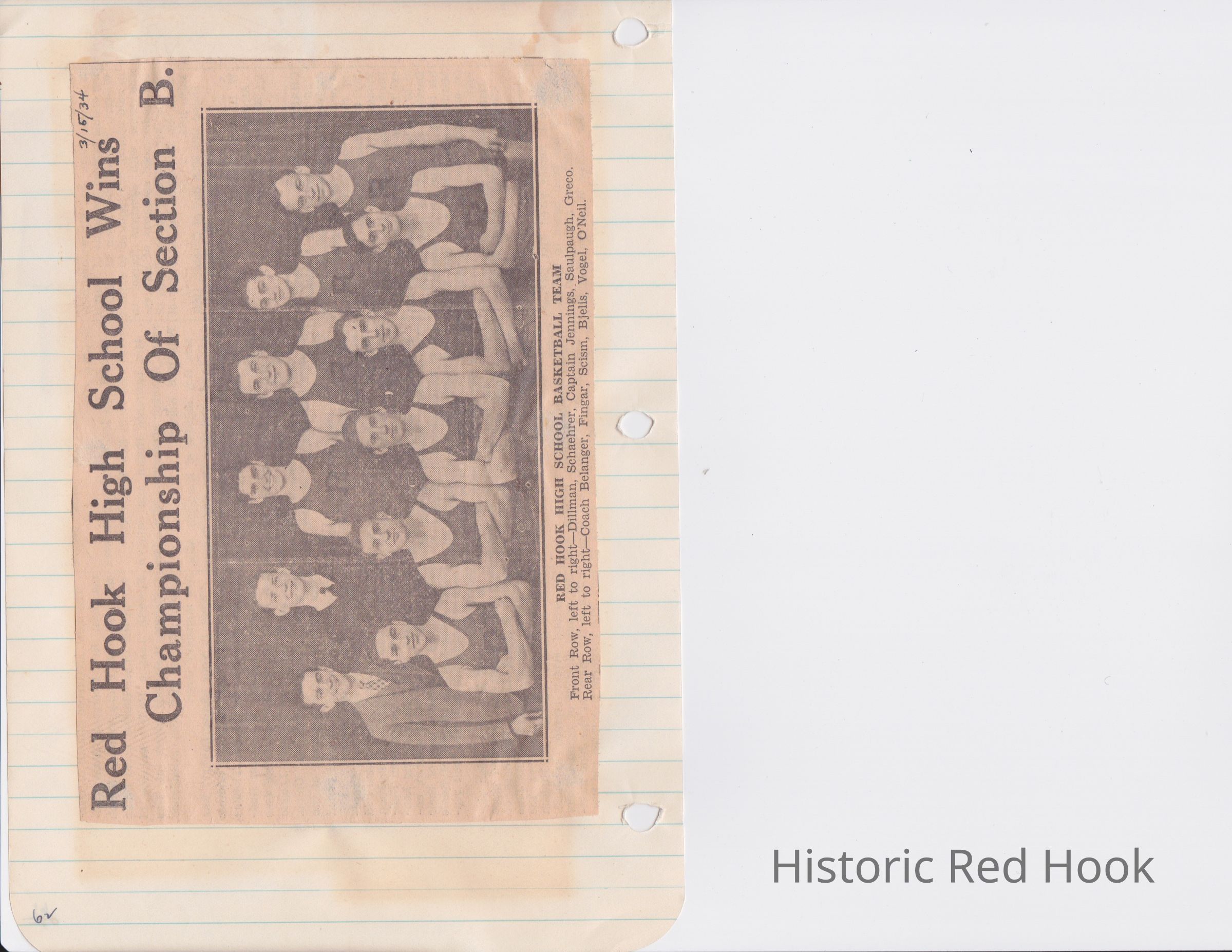 Scrapbook put together by Norman Vogel. It contains newspaper clippings about school news and sports from Red Hook High School 1933-1934. It was given to Patsy Vogel by Norman's widow, Margaret Vogel.