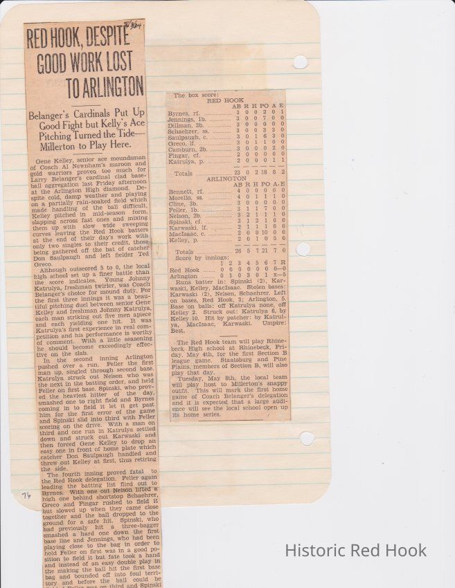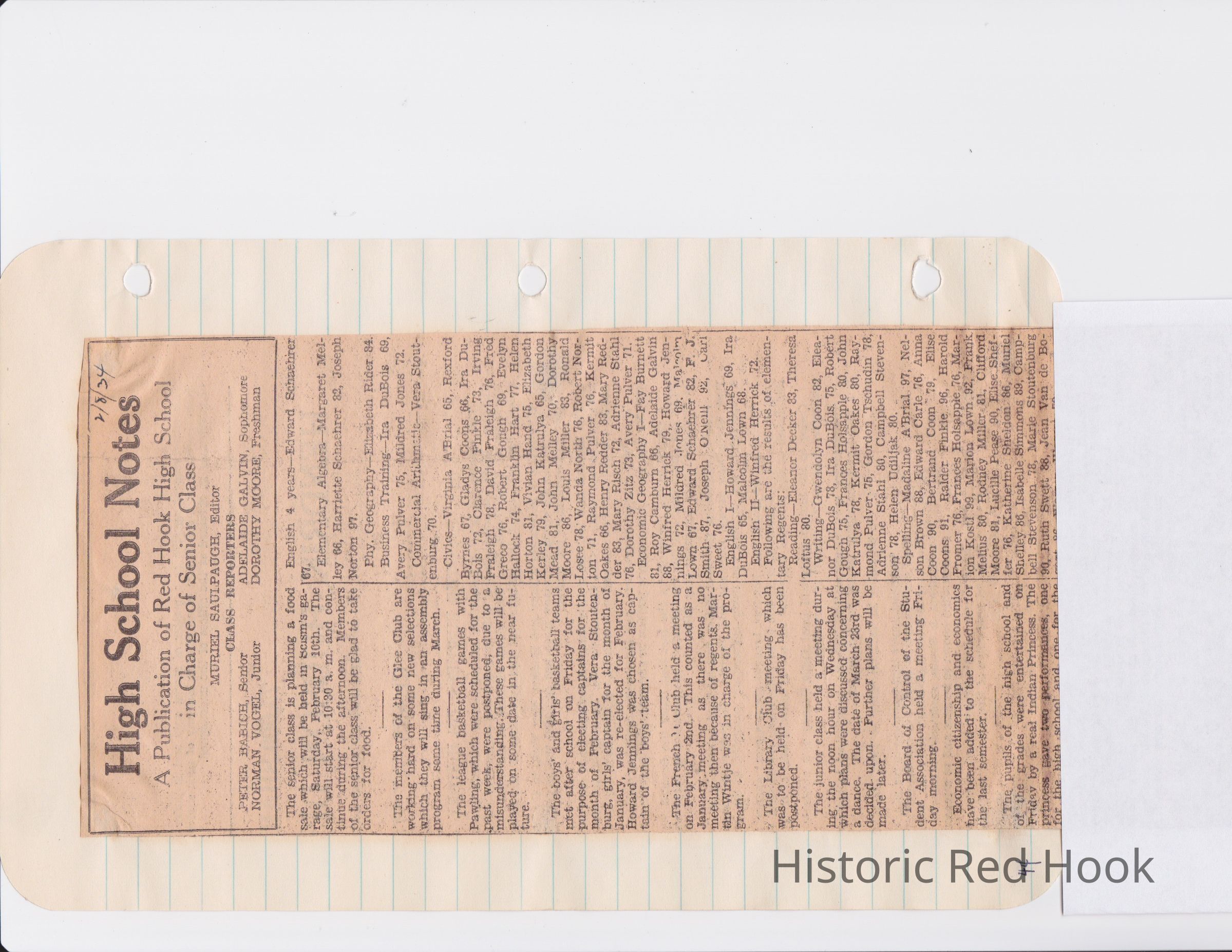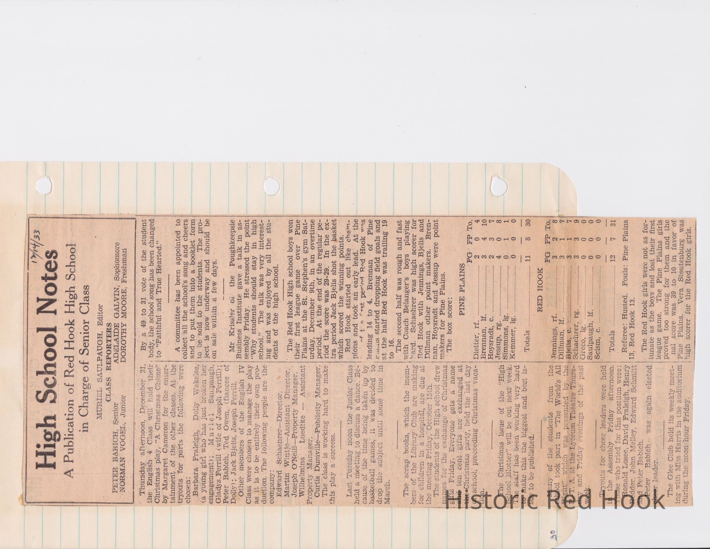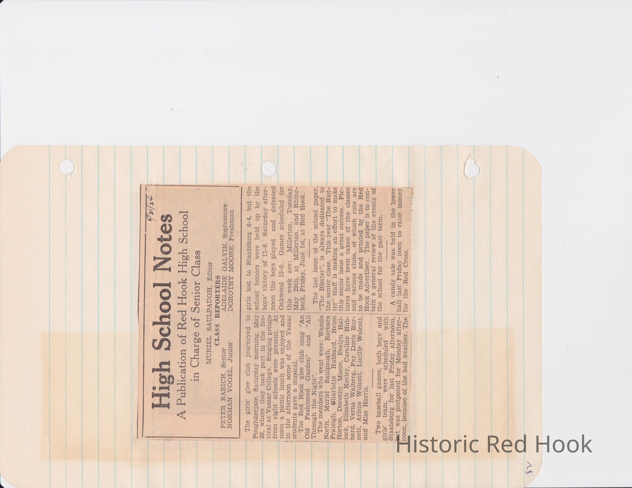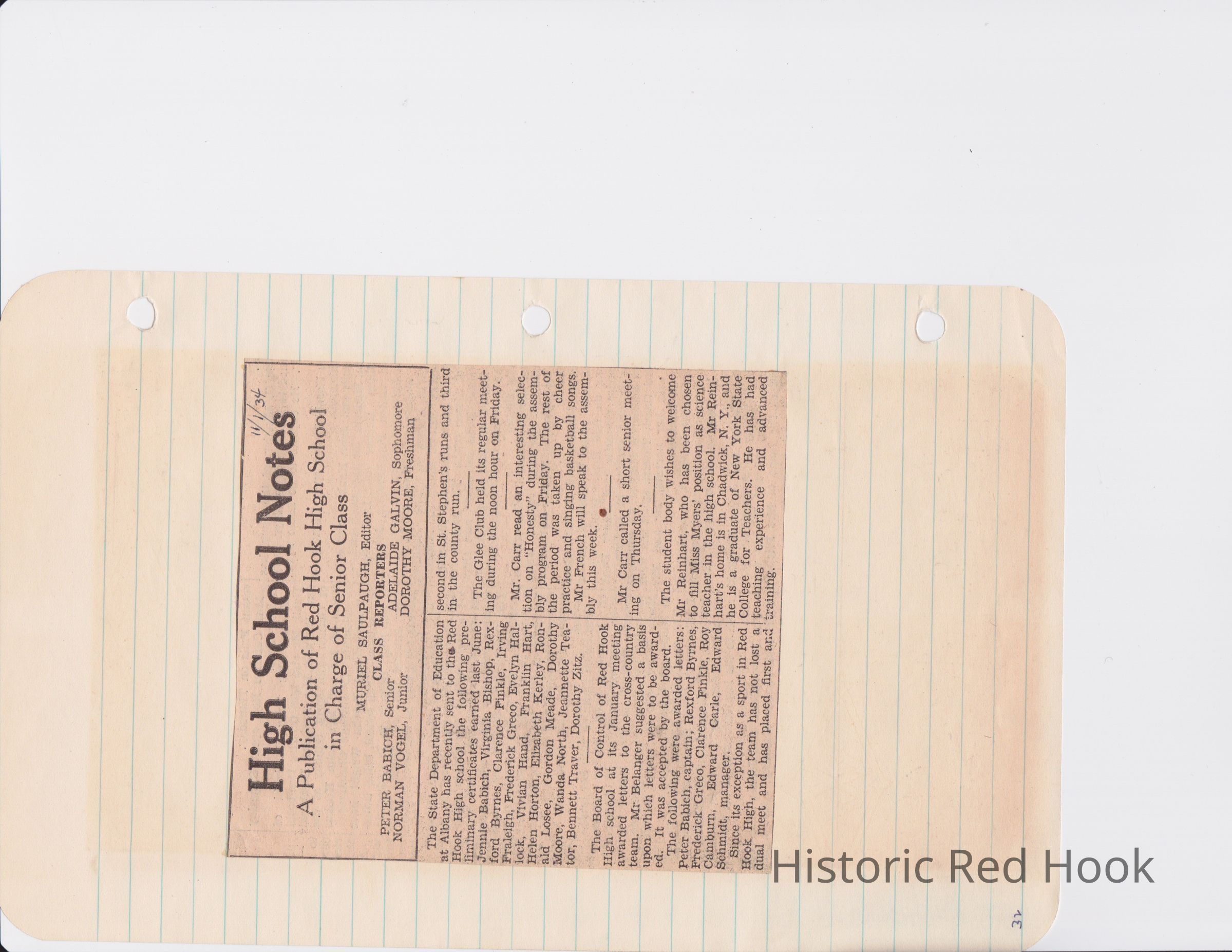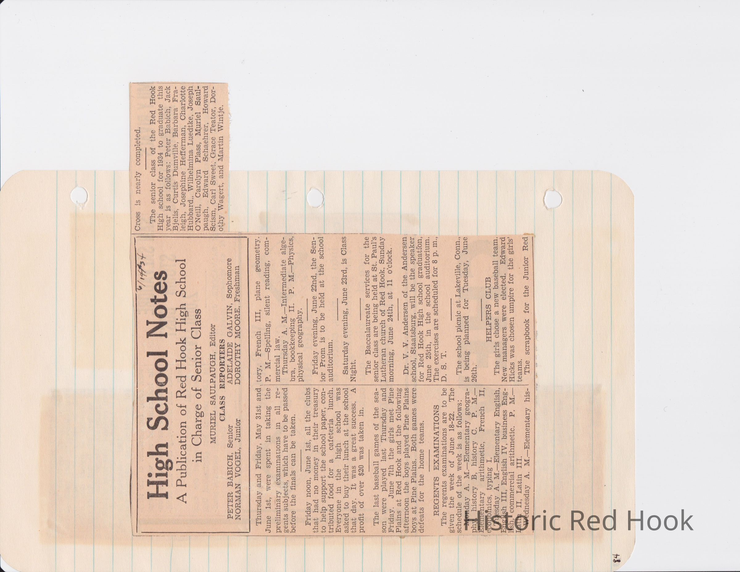Scrapbook put together by Norman Vogel. It contains newspaper clippings about school news and sports from Red Hook High School 1933-1934. It was given to Patsy Vogel by Norman's widow, Margaret Vogel.