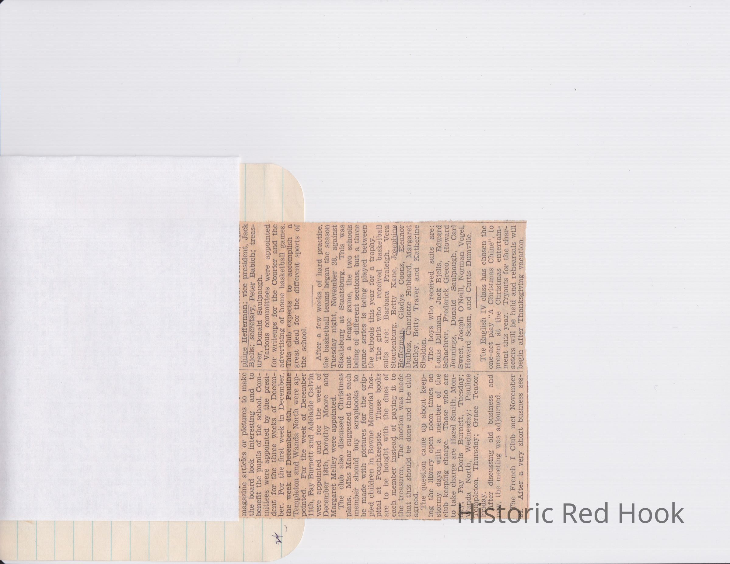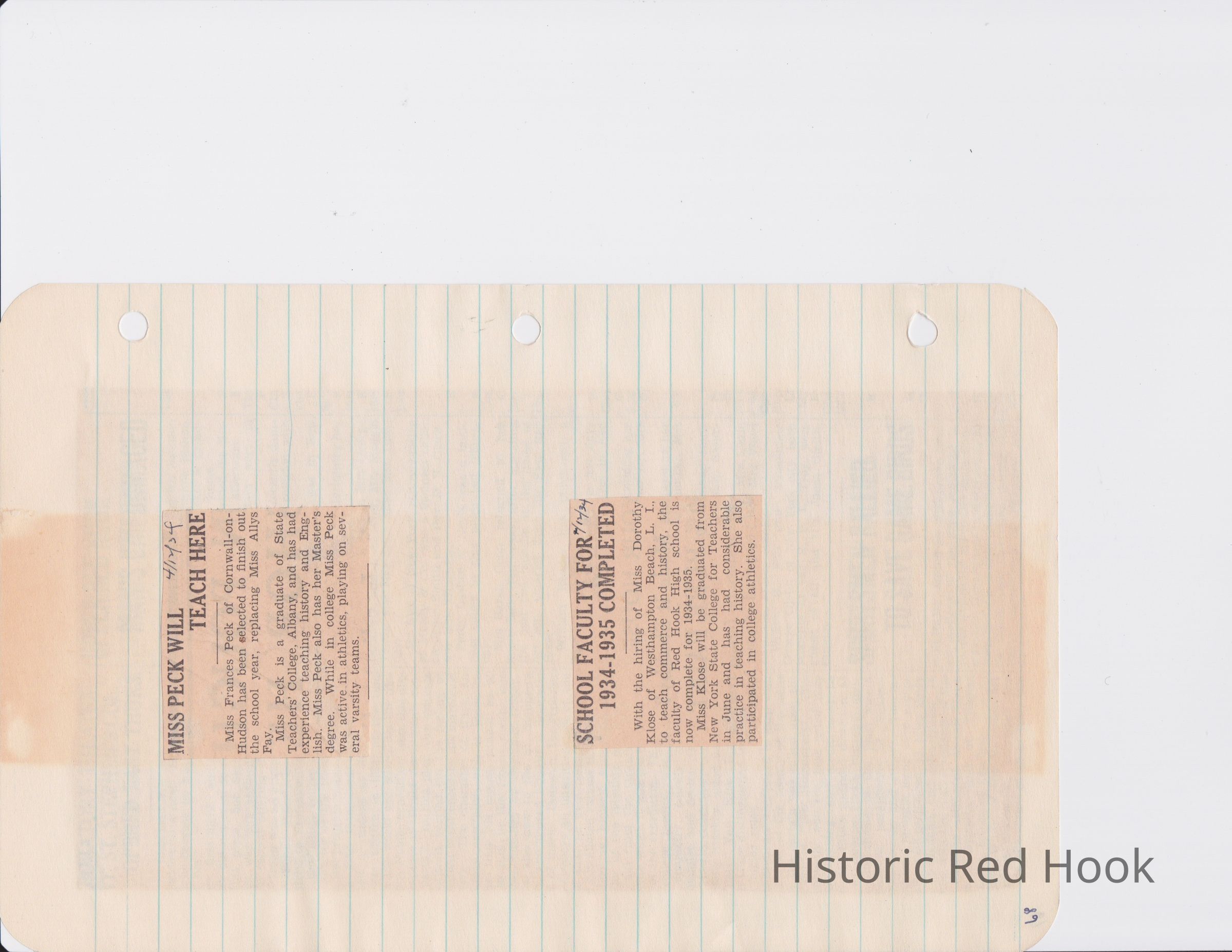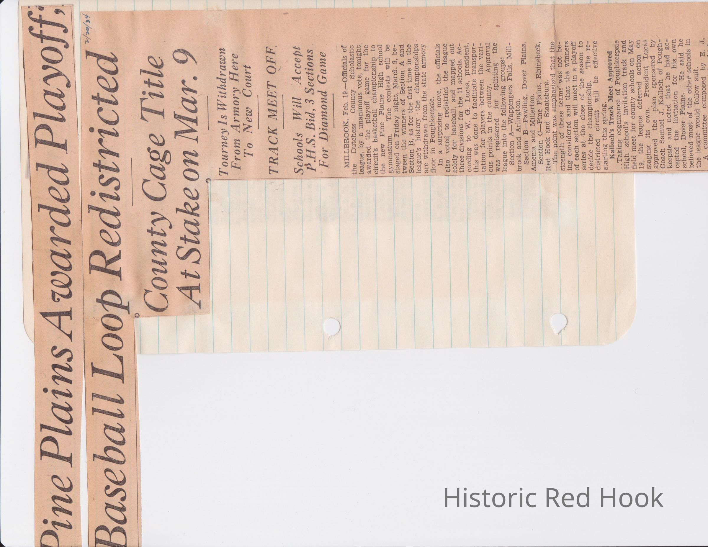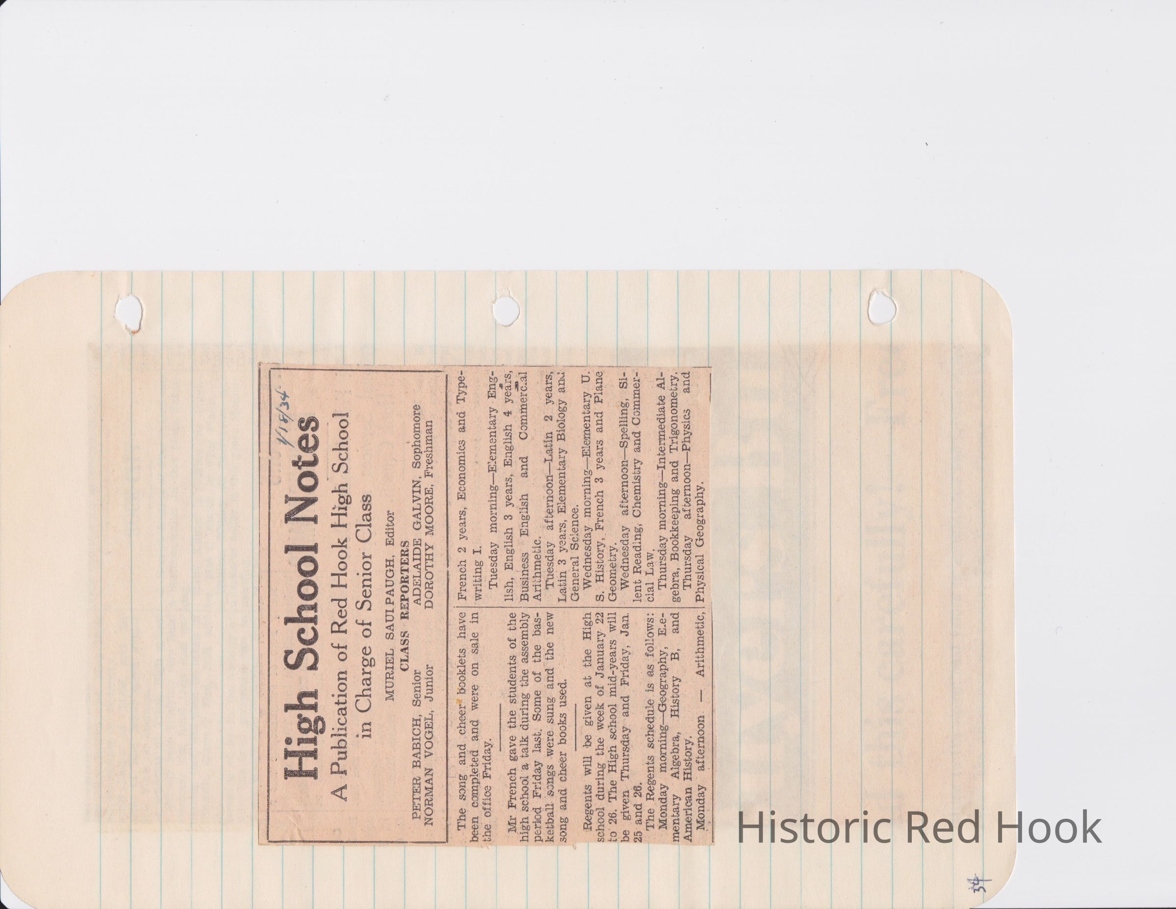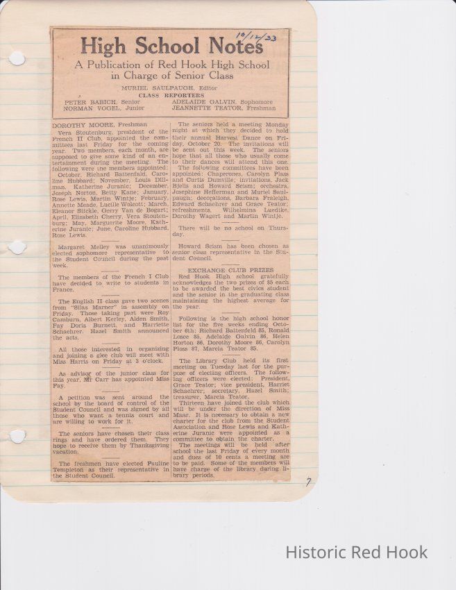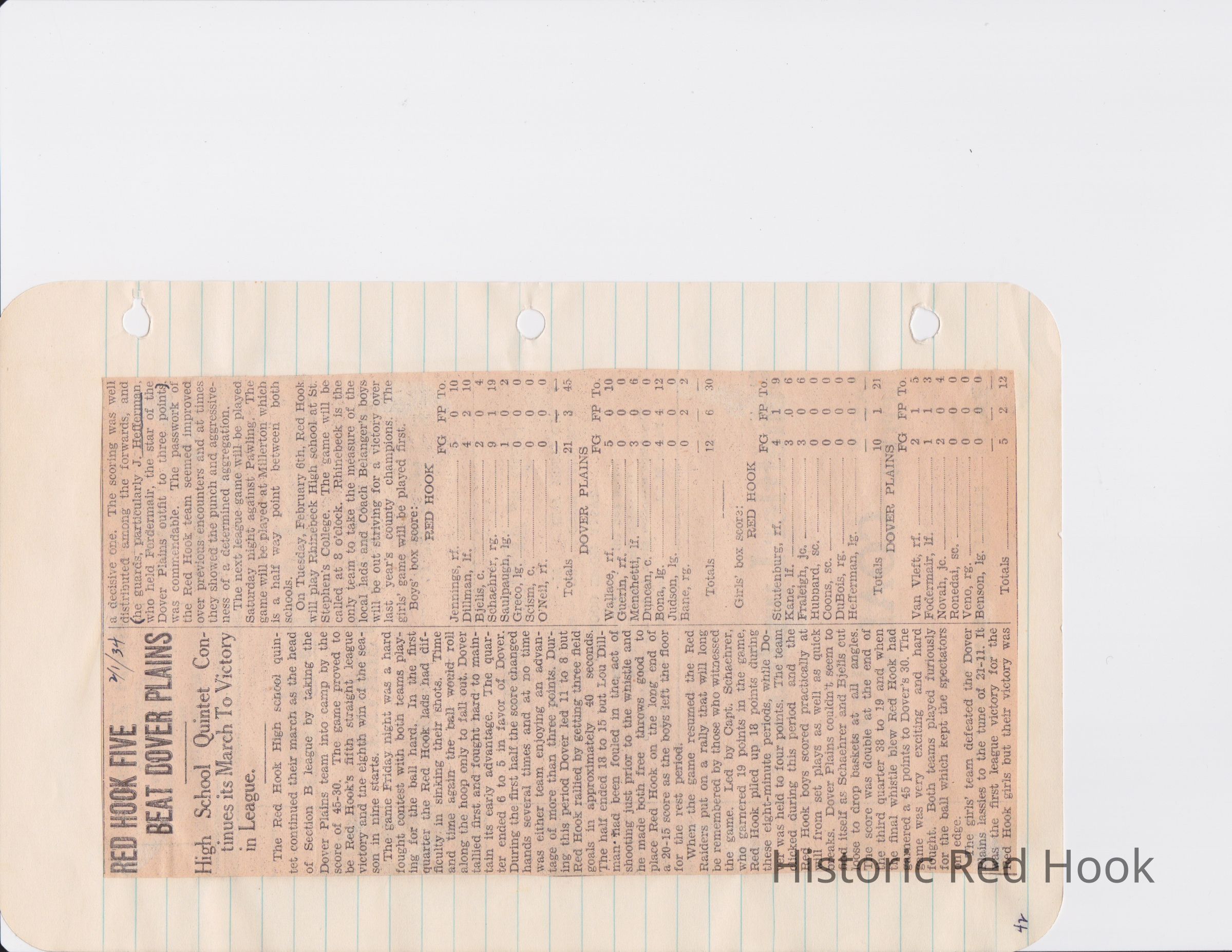 Scrapbook put together by Norman Vogel. It contains newspaper clippings about school news and sports from Red Hook High School 1933-1934. It was given to Patsy Vogel by Norman's widow, Margaret Vogel.
