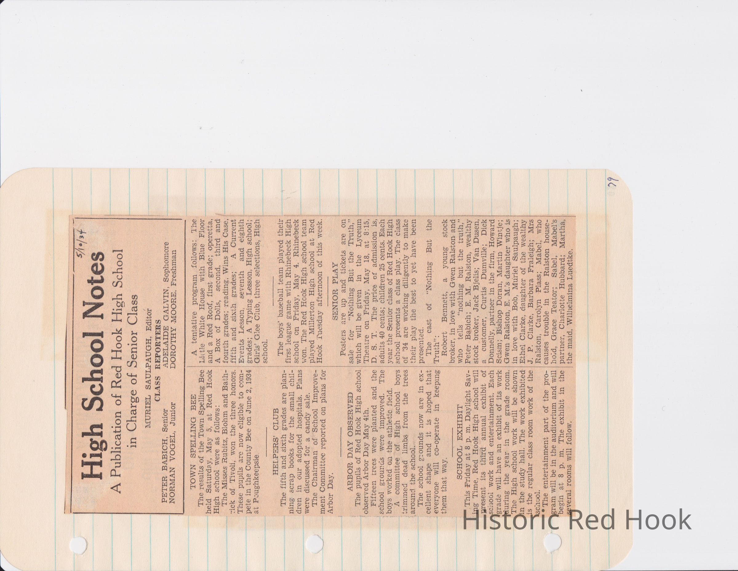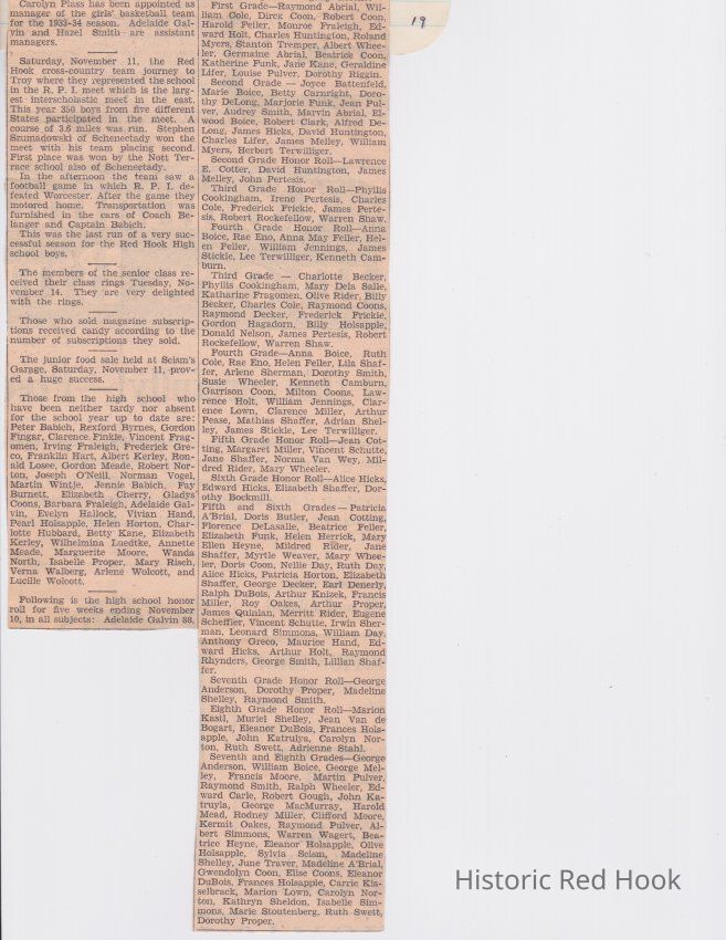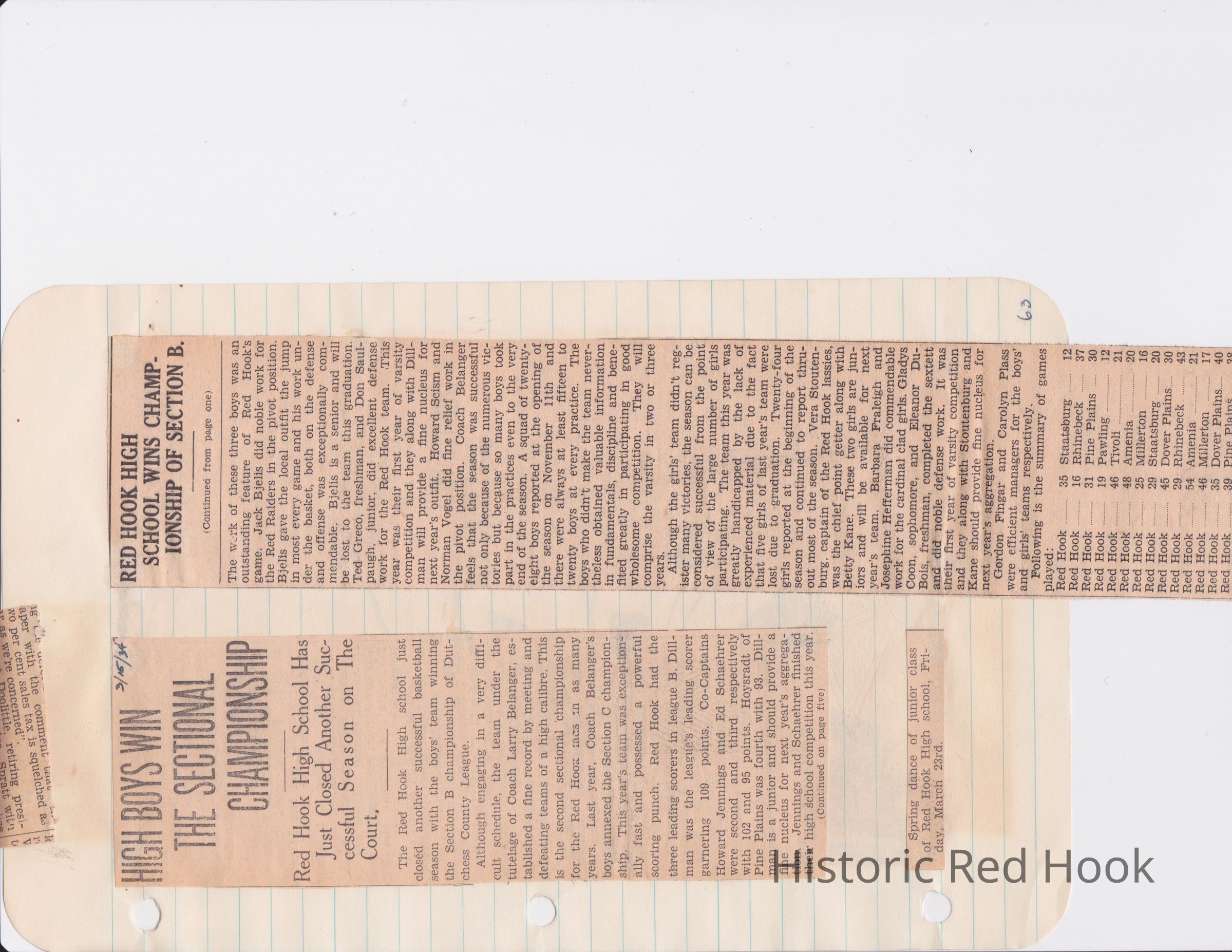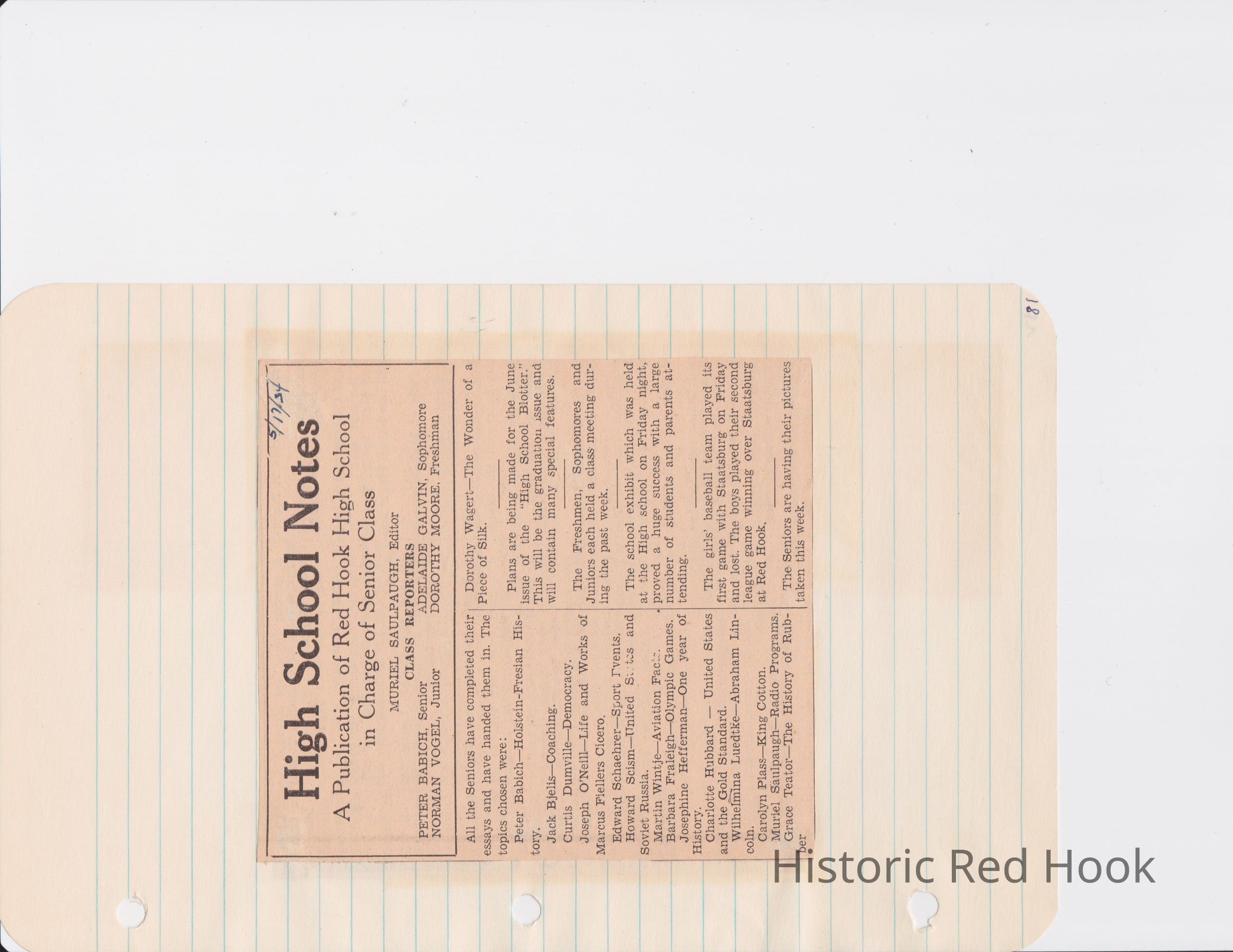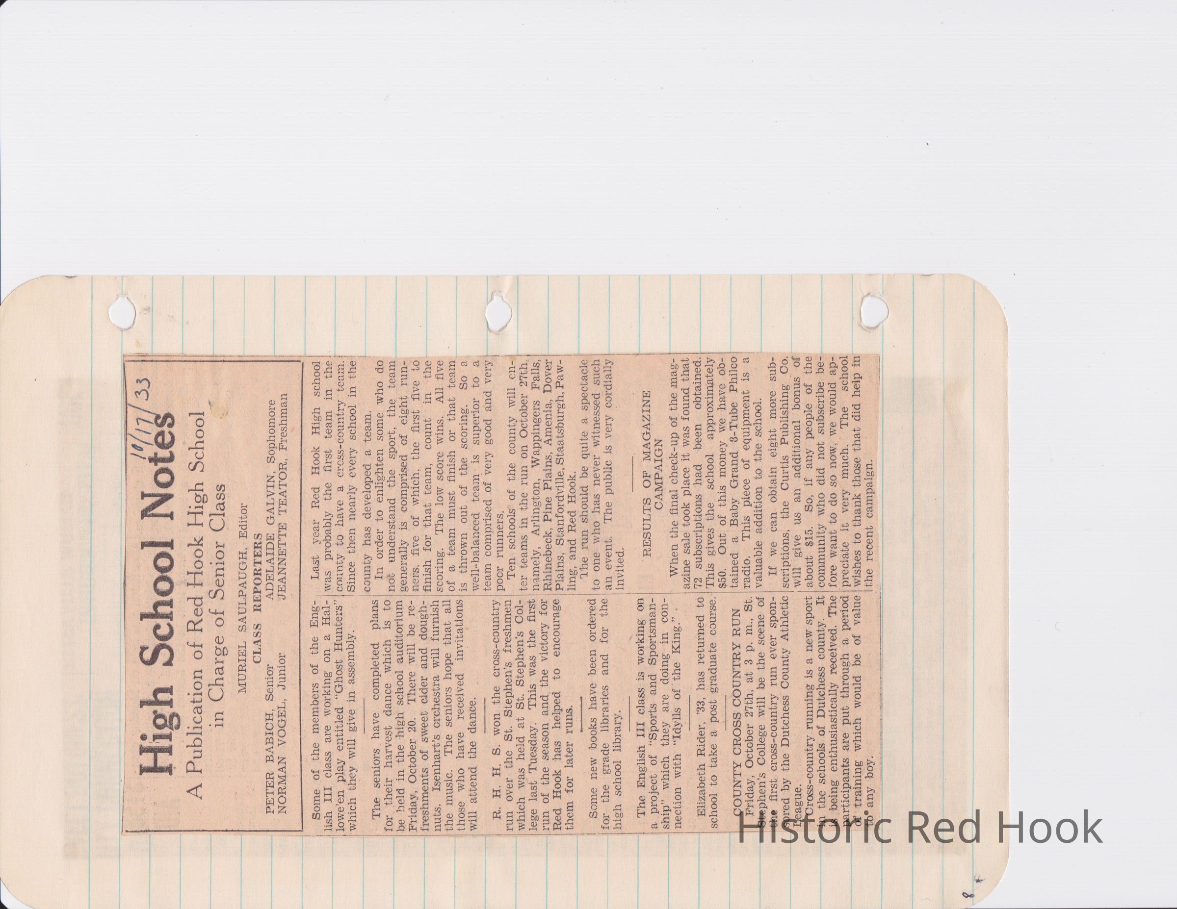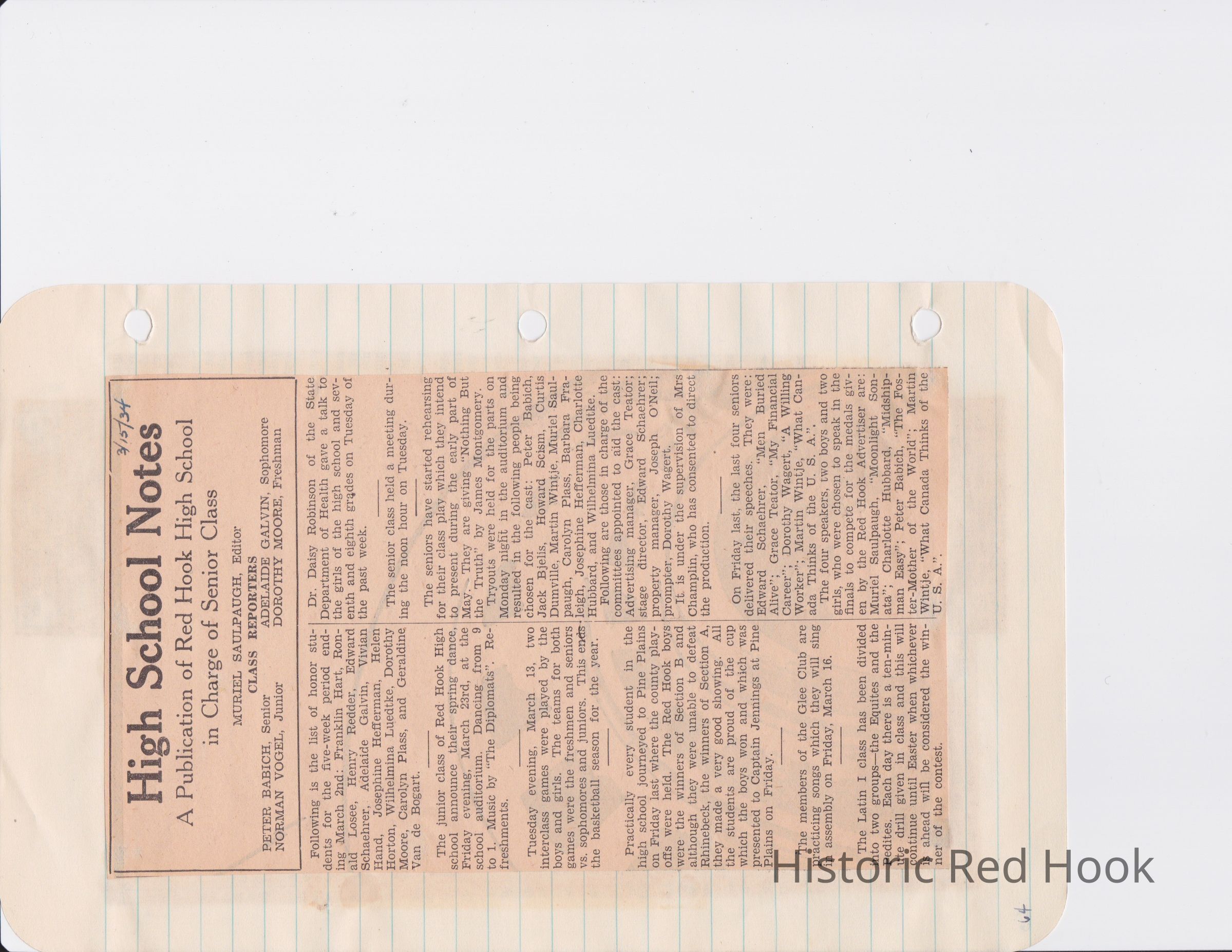 Scrapbook put together by Norman Vogel. It contains newspaper clippings about school news and sports from Red Hook High School 1933-1934. It was given to Patsy Vogel by Norman's widow, Margaret Vogel.