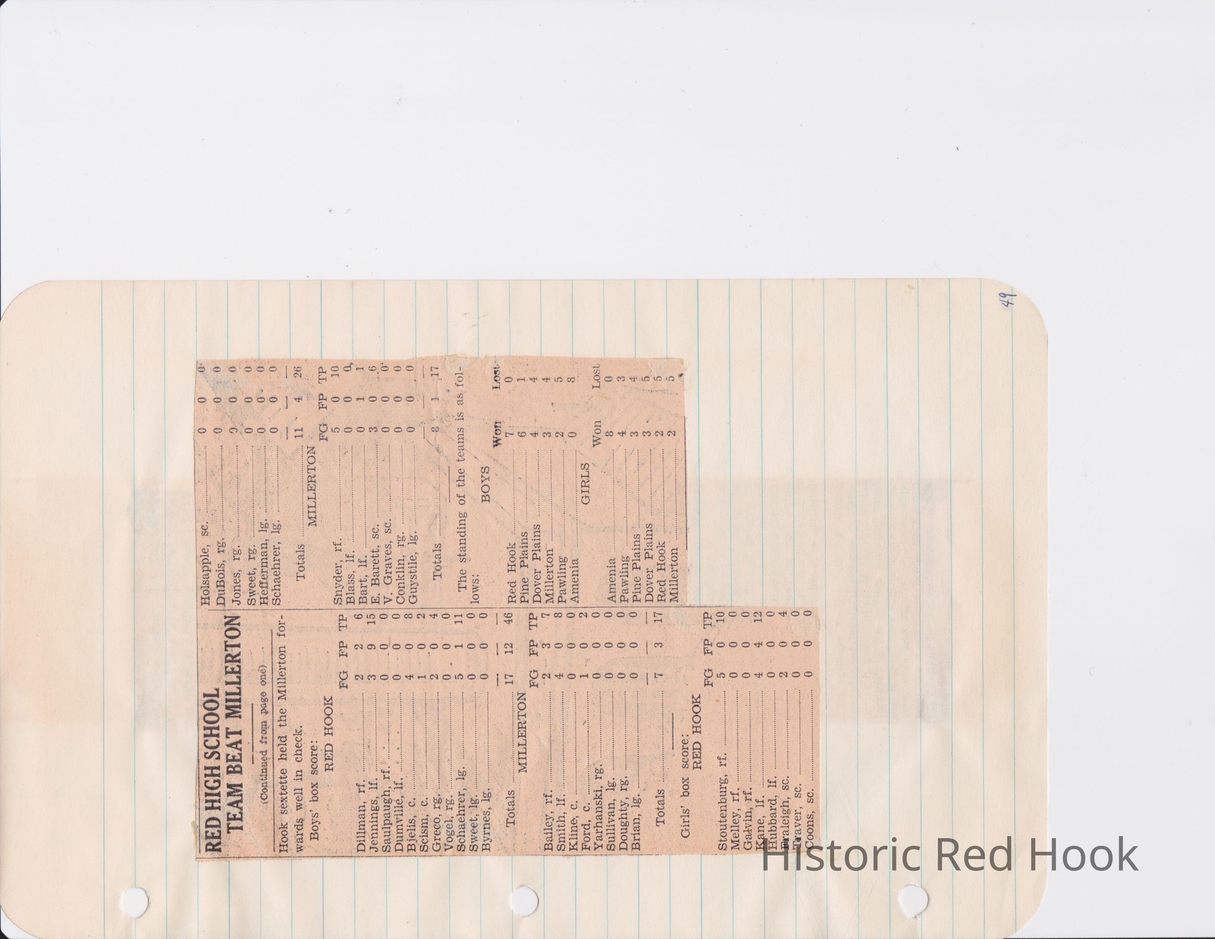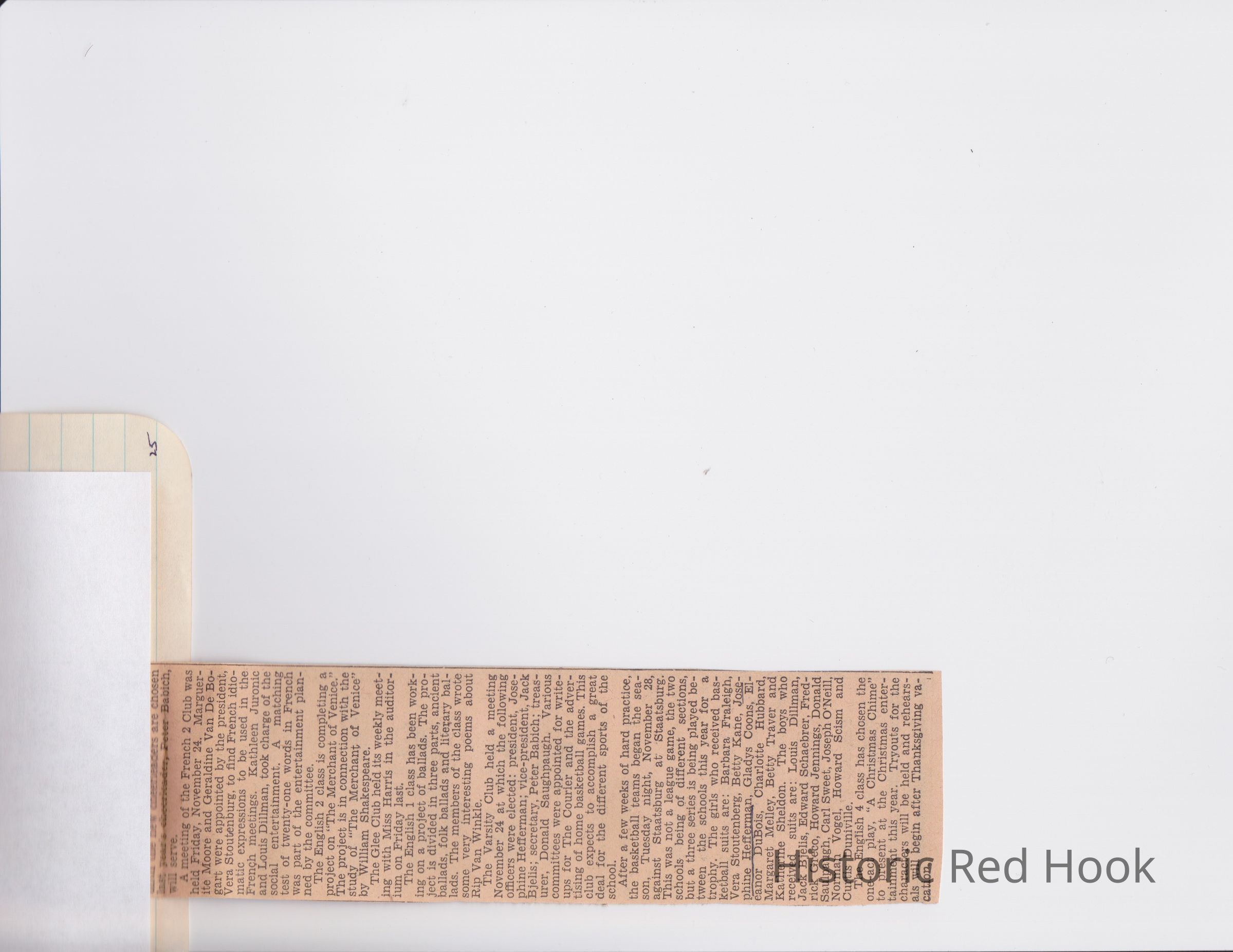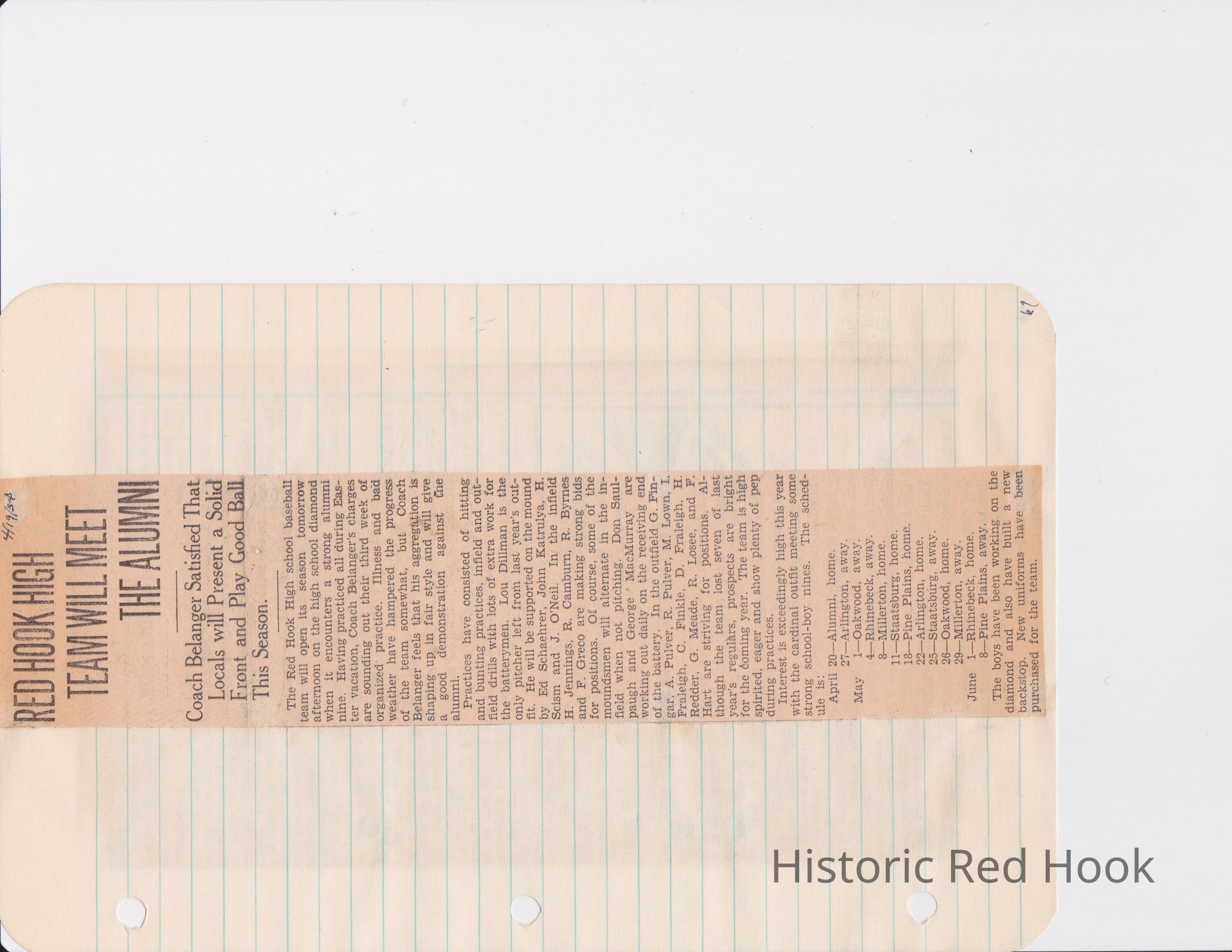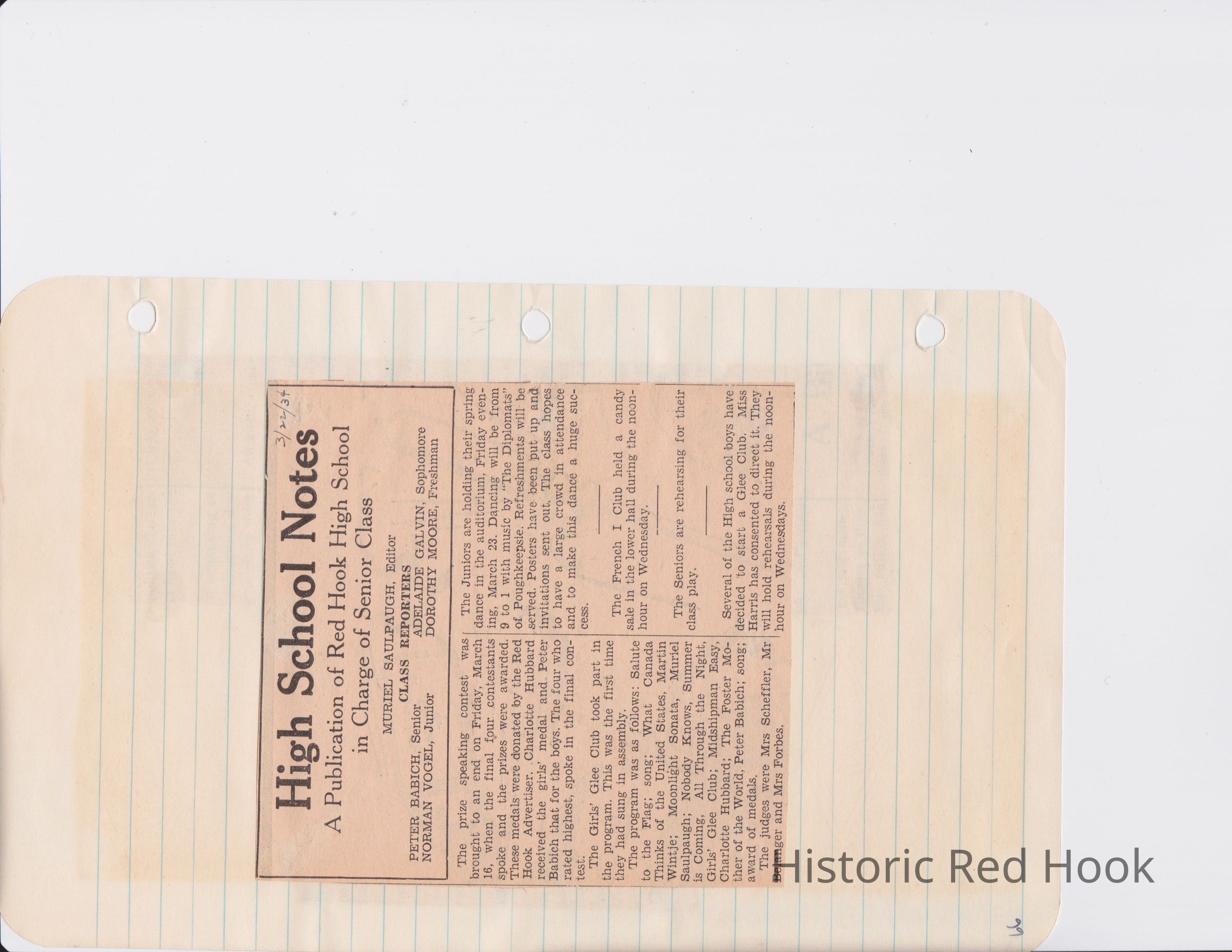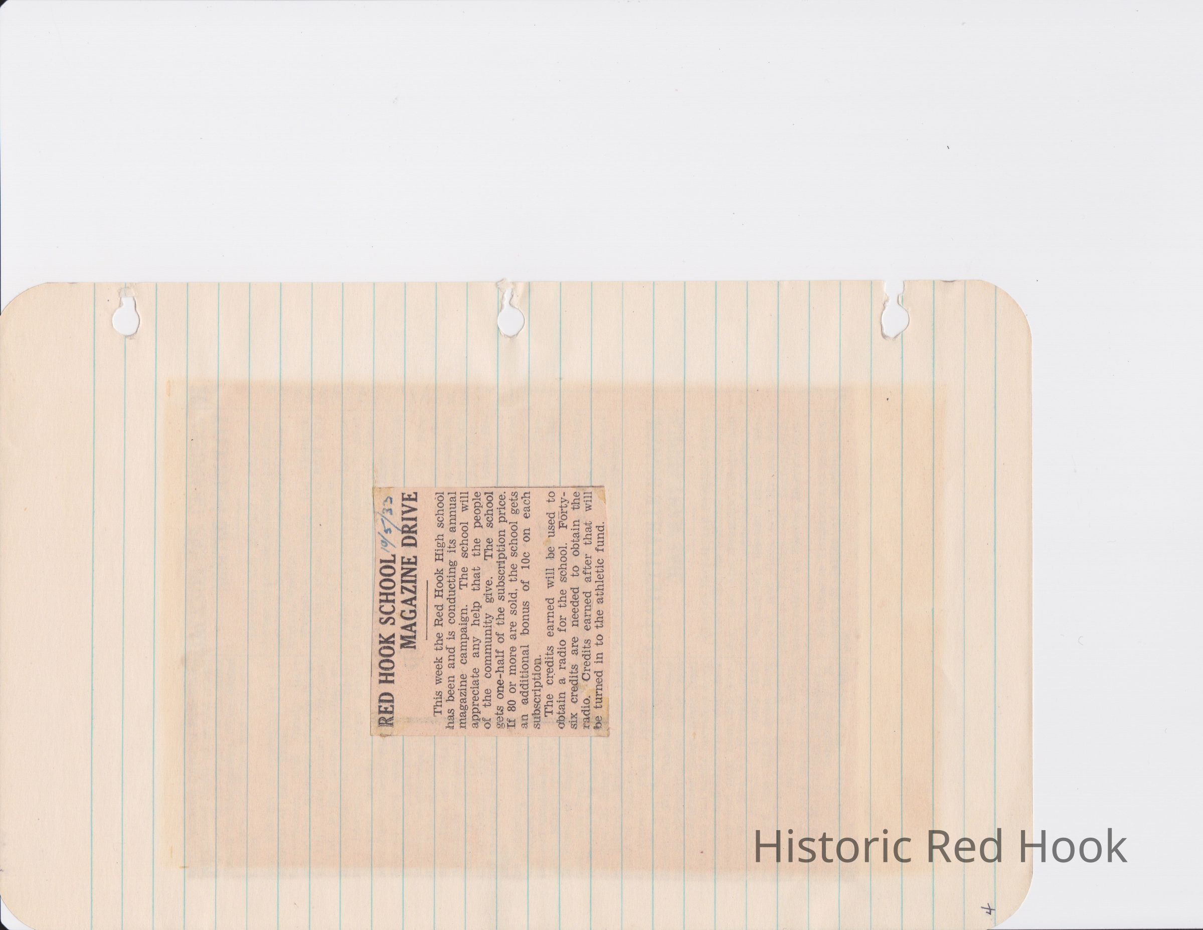Scrapbook put together by Norman Vogel. It contains newspaper clippings about school news and sports from Red Hook High School 1933-1934. It was given to Patsy Vogel by Norman's widow, Margaret Vogel.