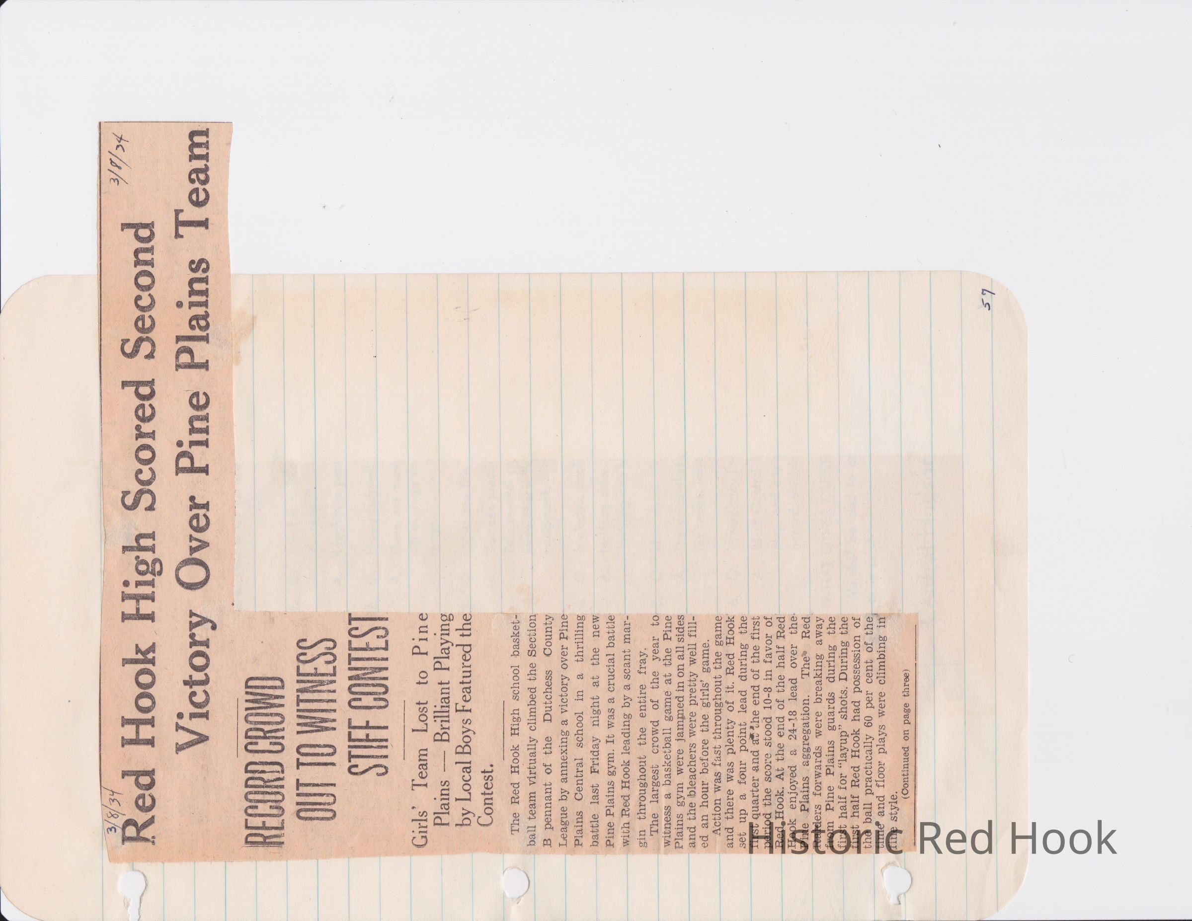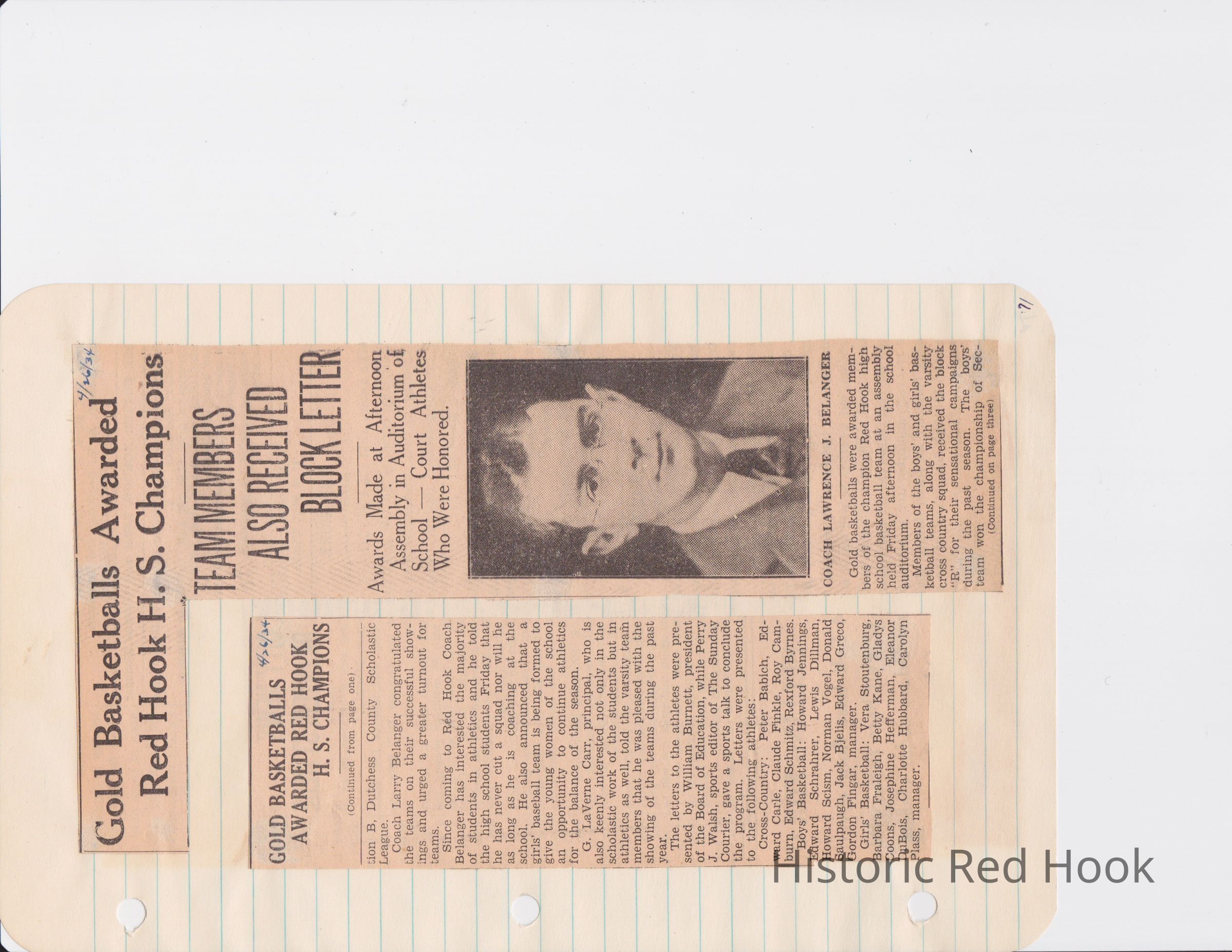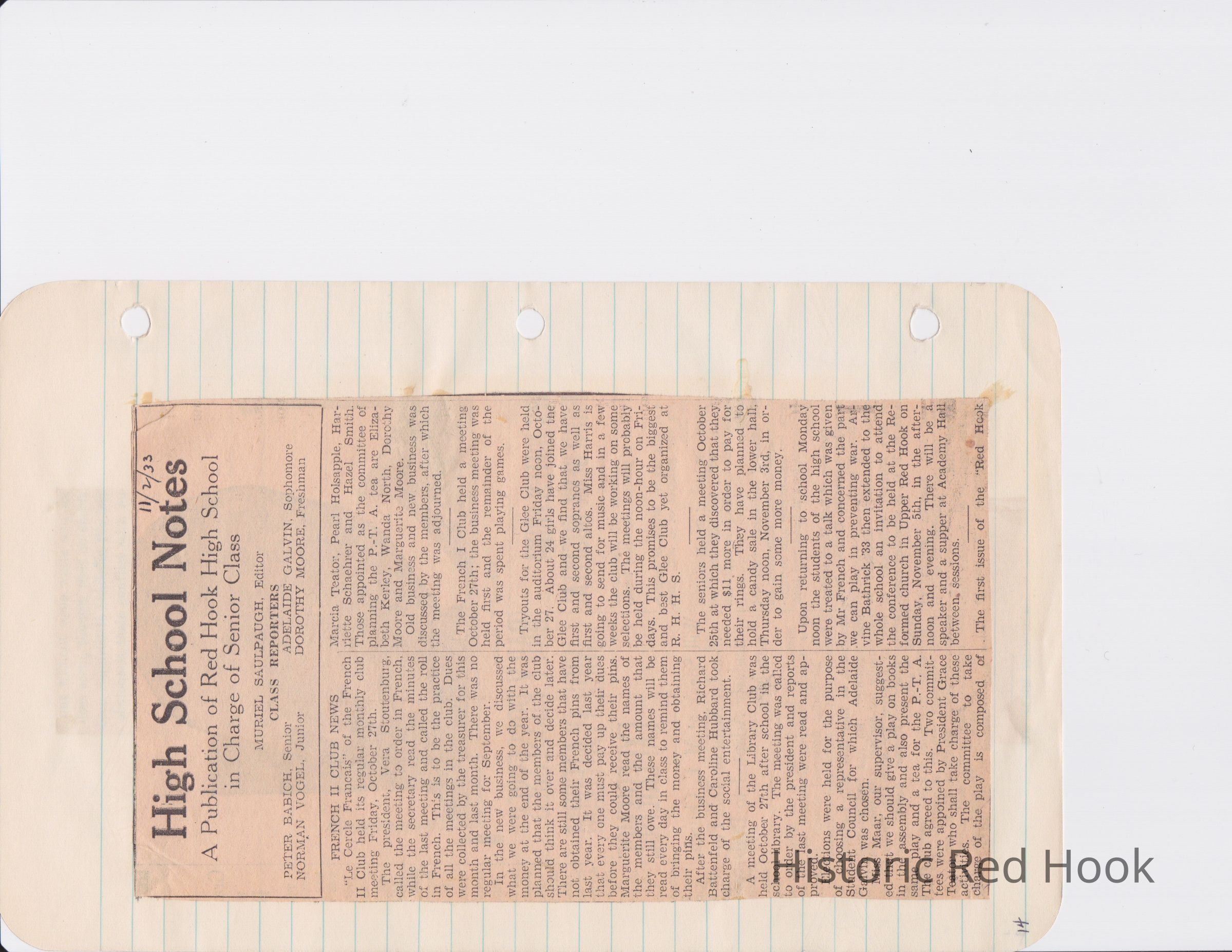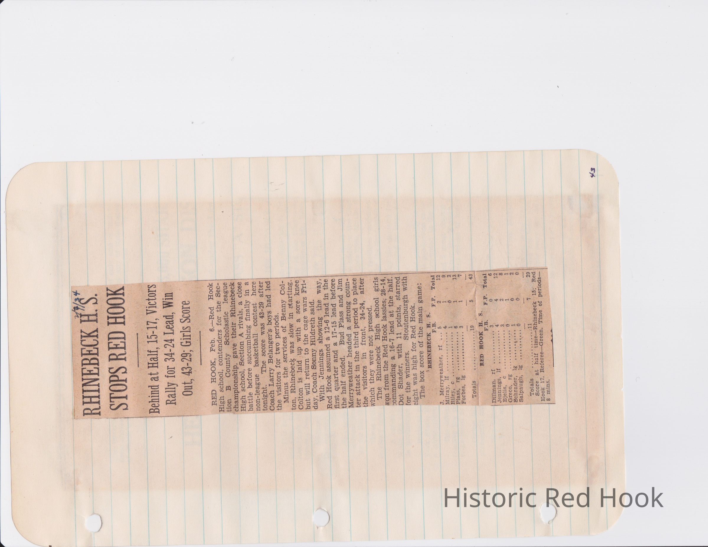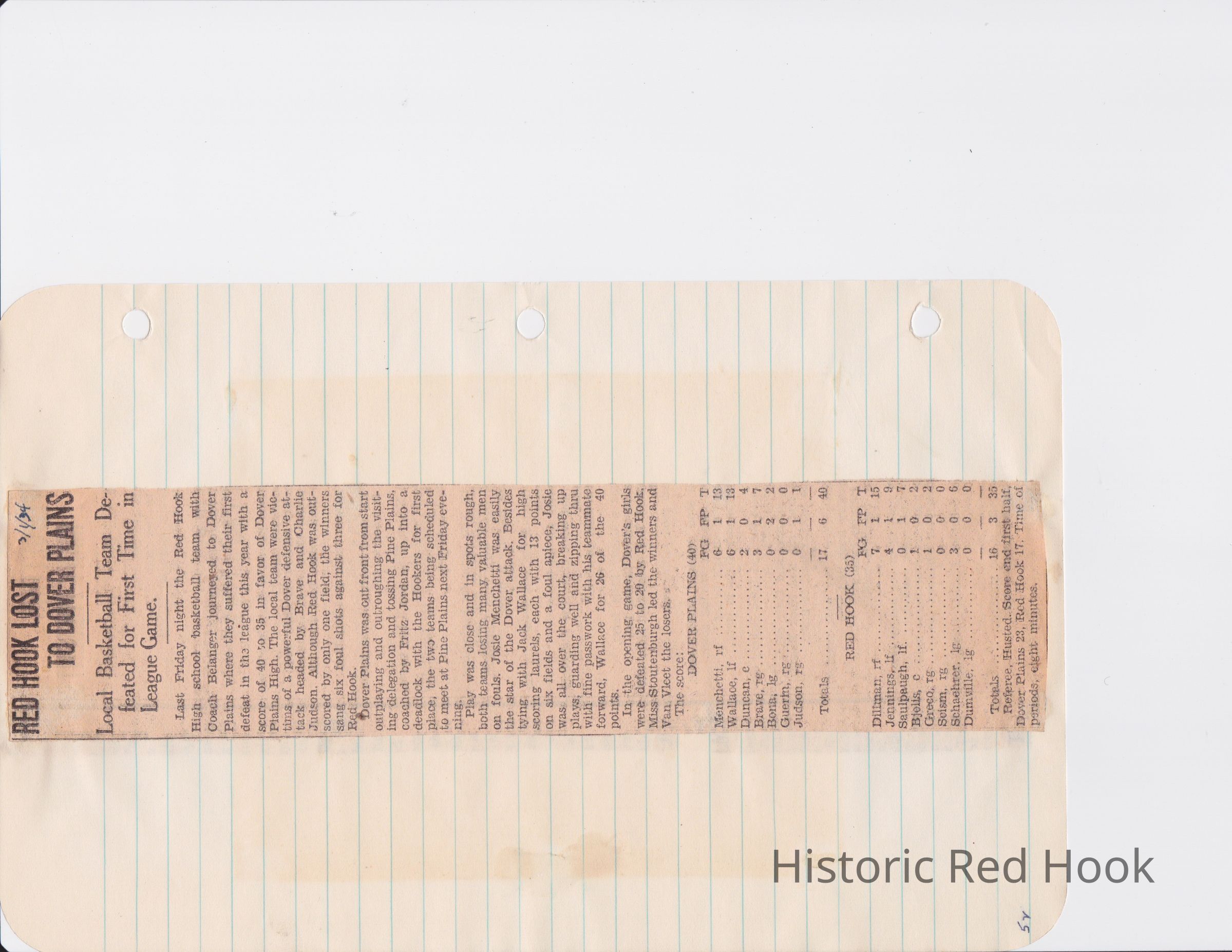 Scrapbook put together by Norman Vogel. It contains newspaper clippings about school news and sports from Red Hook High School 1933-1934. It was given to Patsy Vogel by Norman's widow, Margaret Vogel.