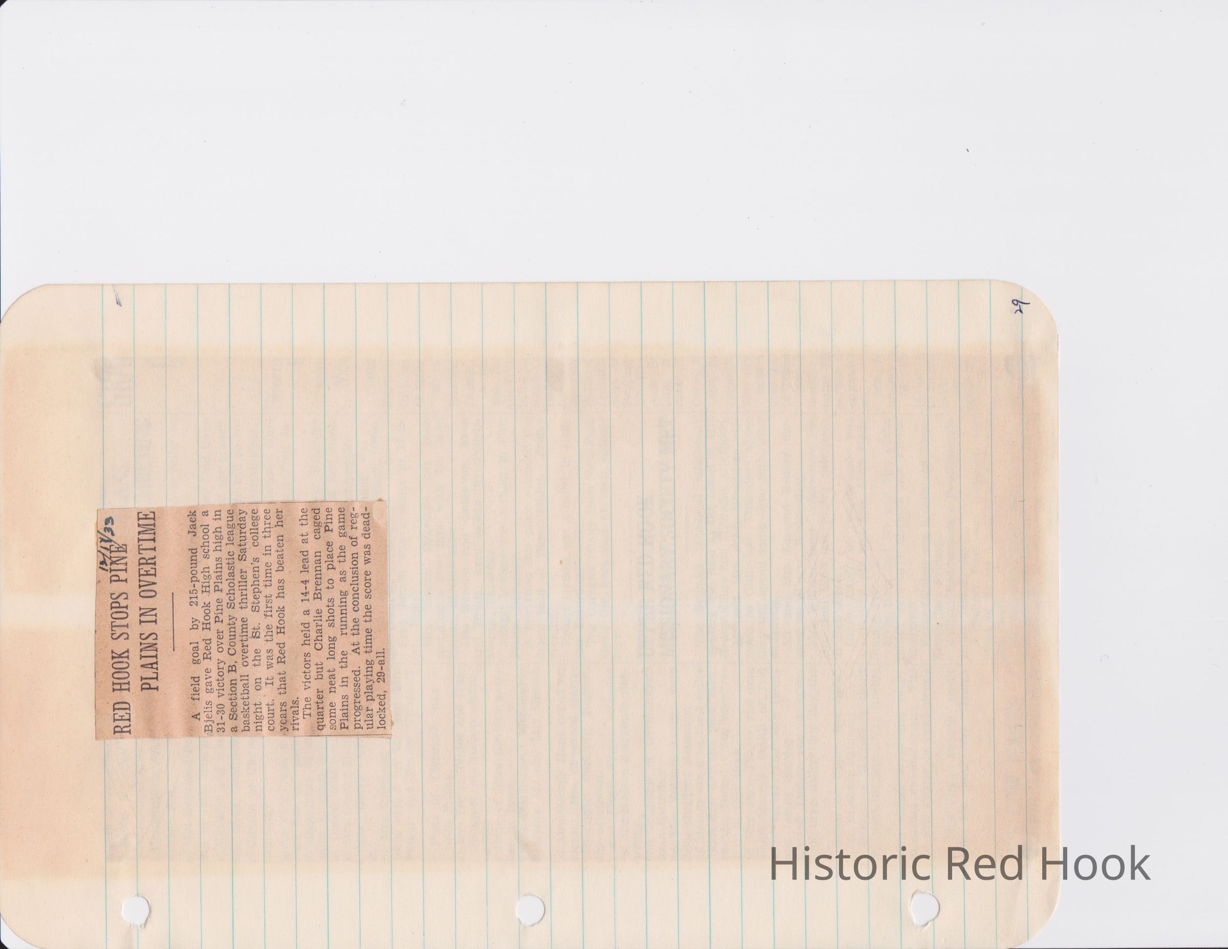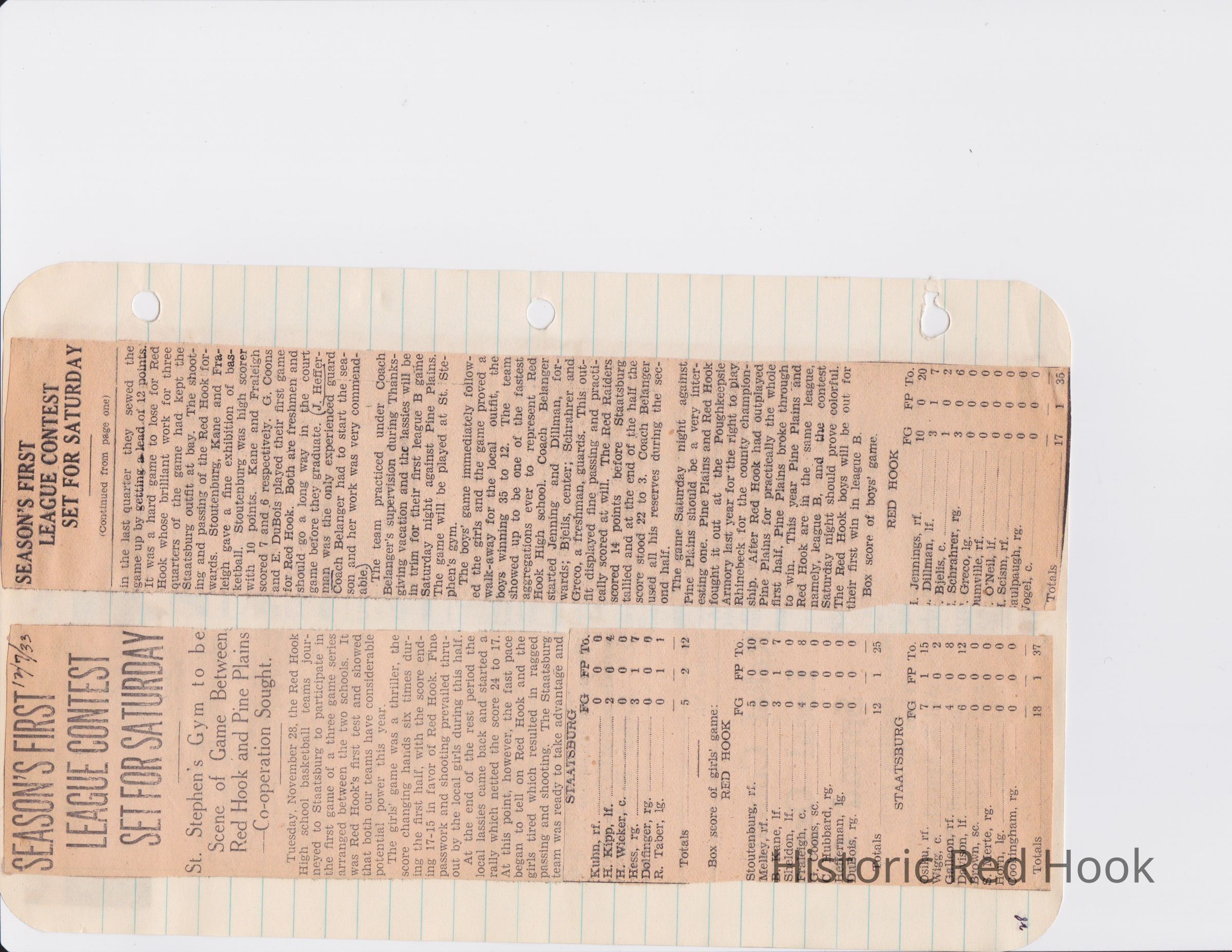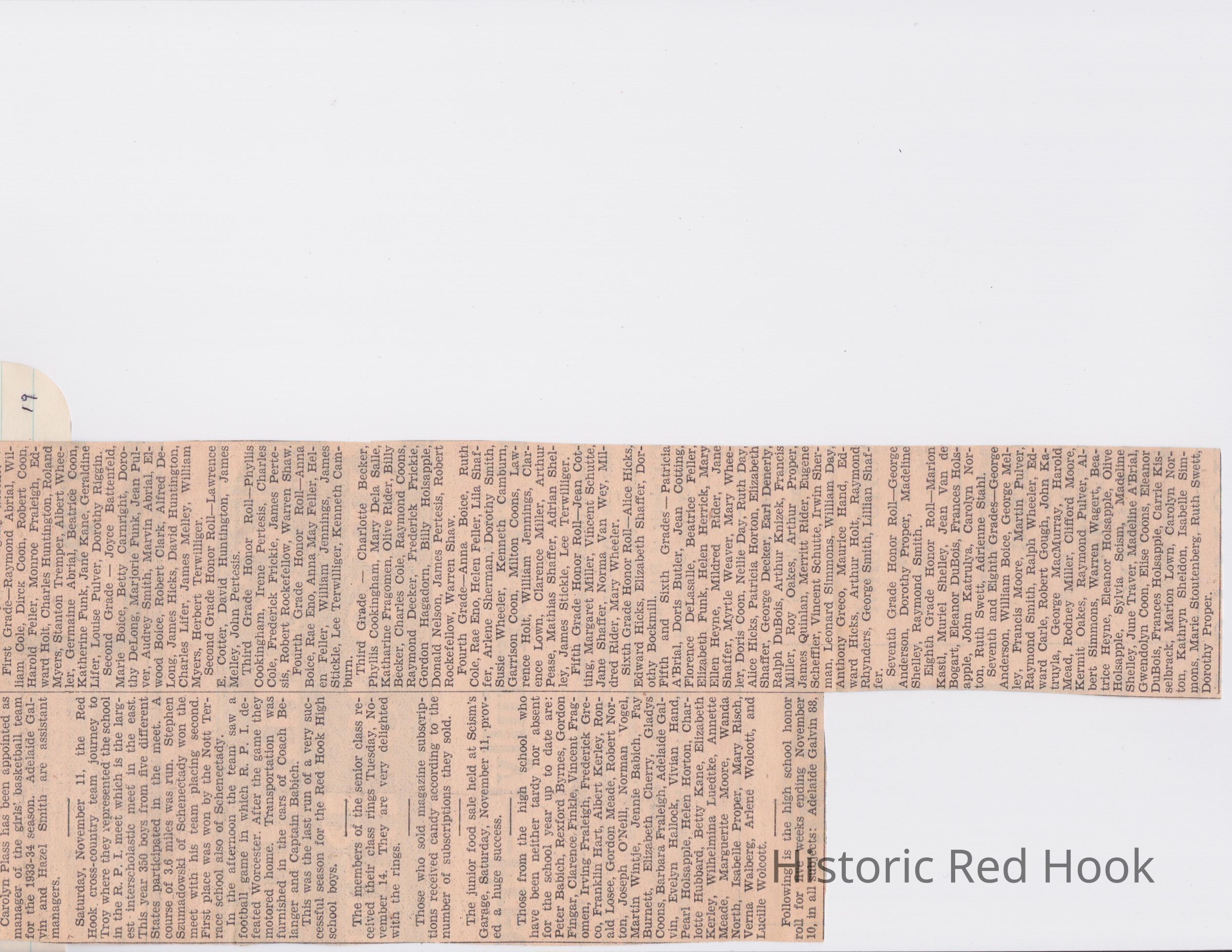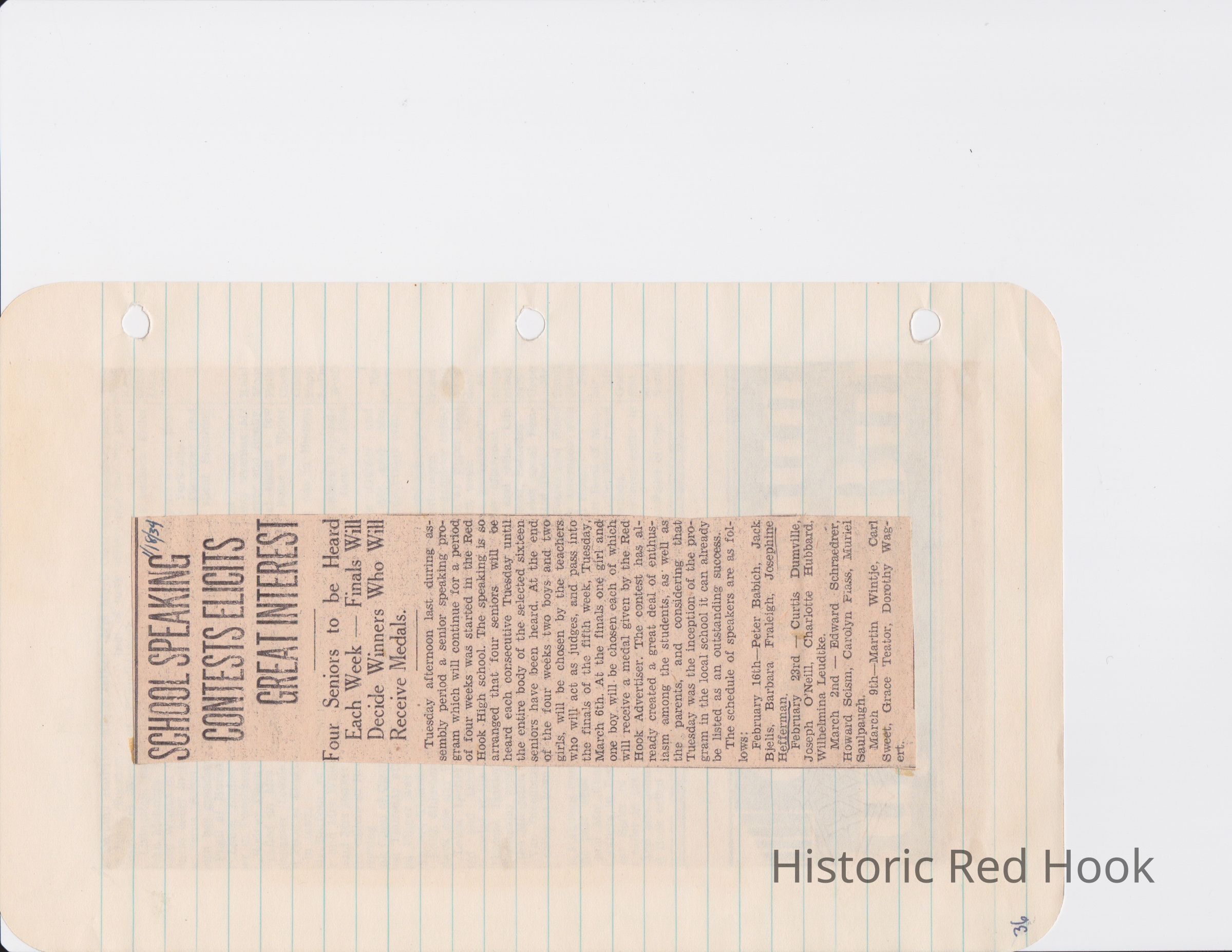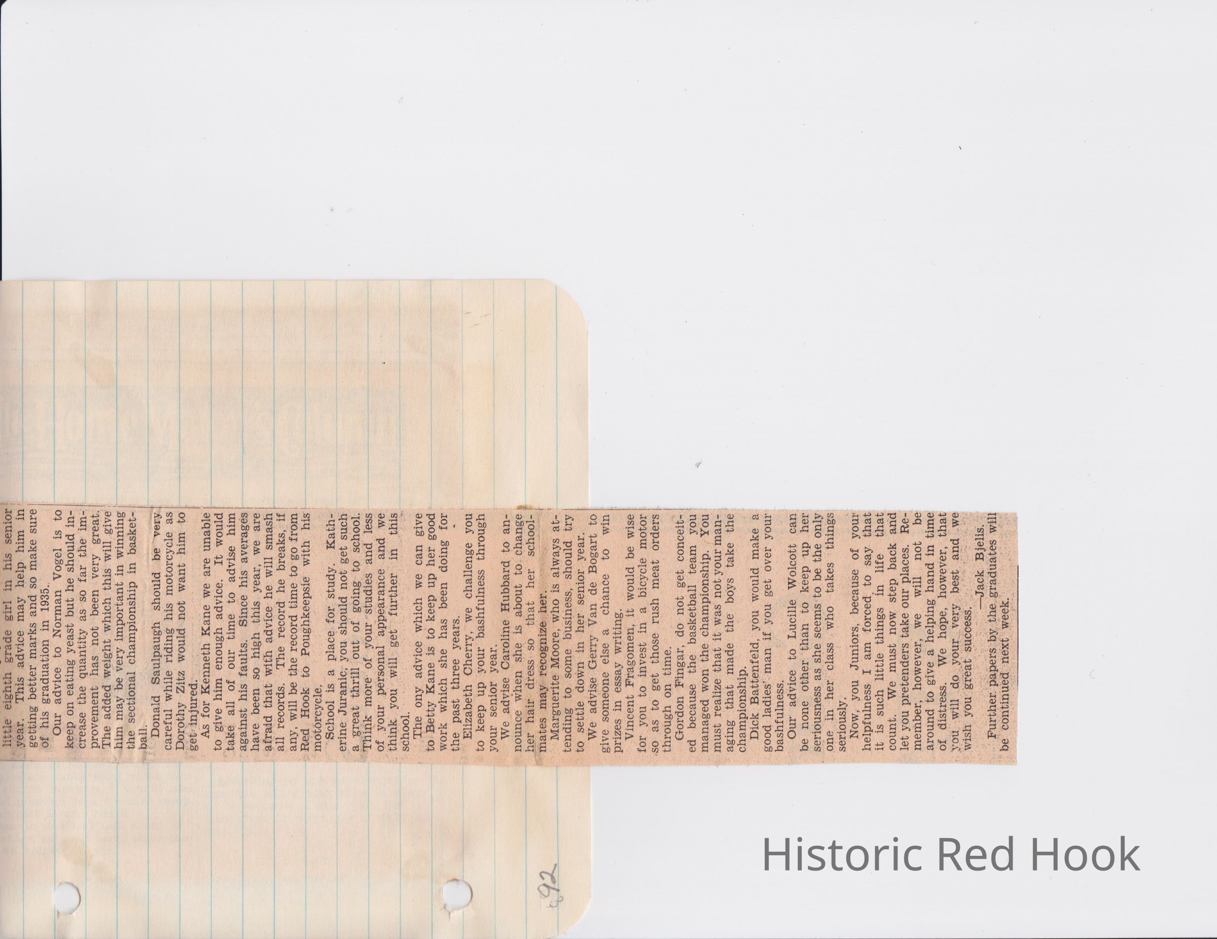 Scrapbook put together by Norman Vogel. It contains newspaper clippings about school news and sports from Red Hook High School 1933-1934. It was given to Patsy Vogel by Norman's widow, Margaret Vogel.